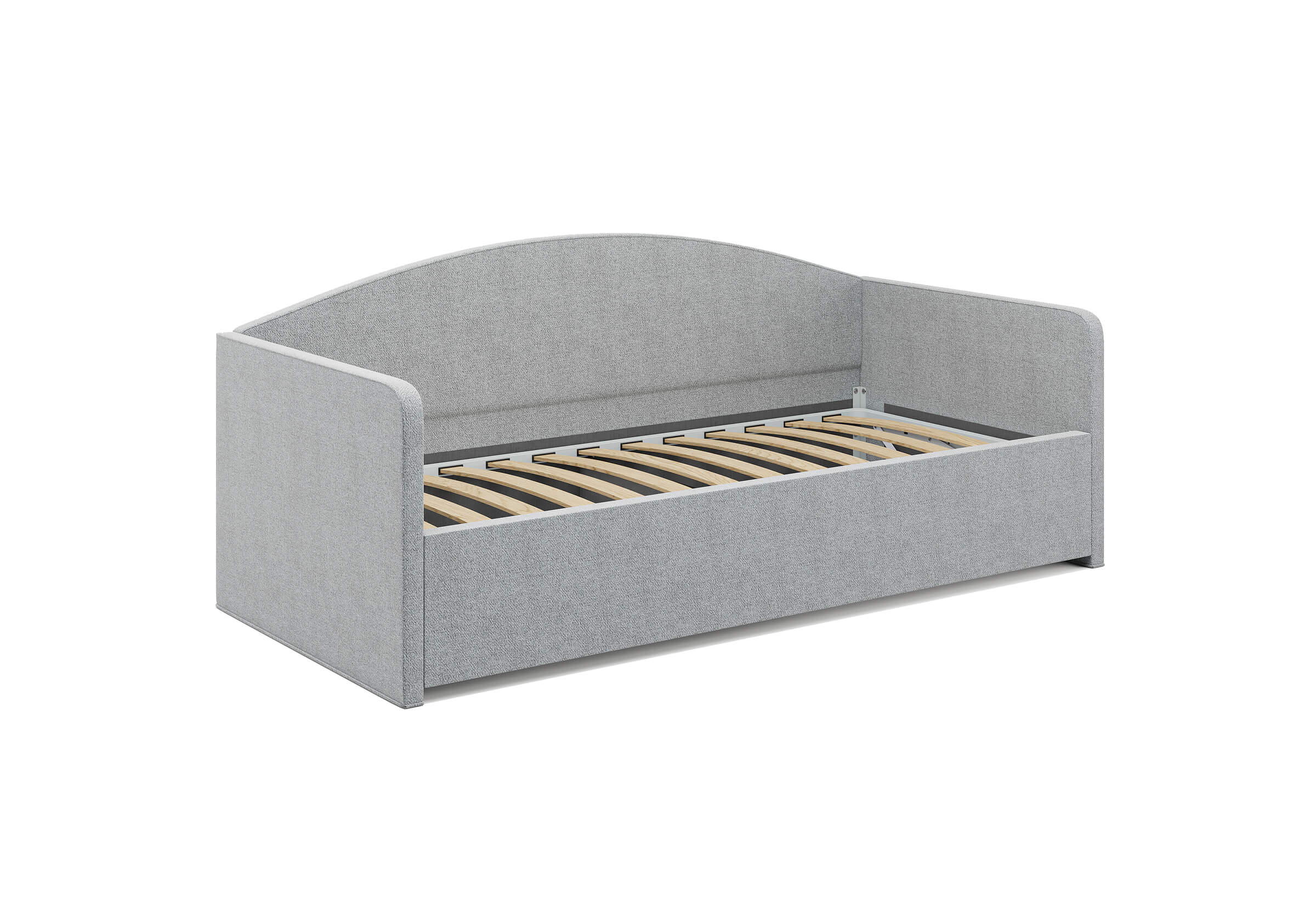 - Недорогая односпальная кровать для ребенка или подростка. Модель изготовлена из ДСП. При необходимости кровать может быть укомплектована разборным или неразборным металлическим основанием с ламелями, подъемным механизмом с бельевым ящиком.