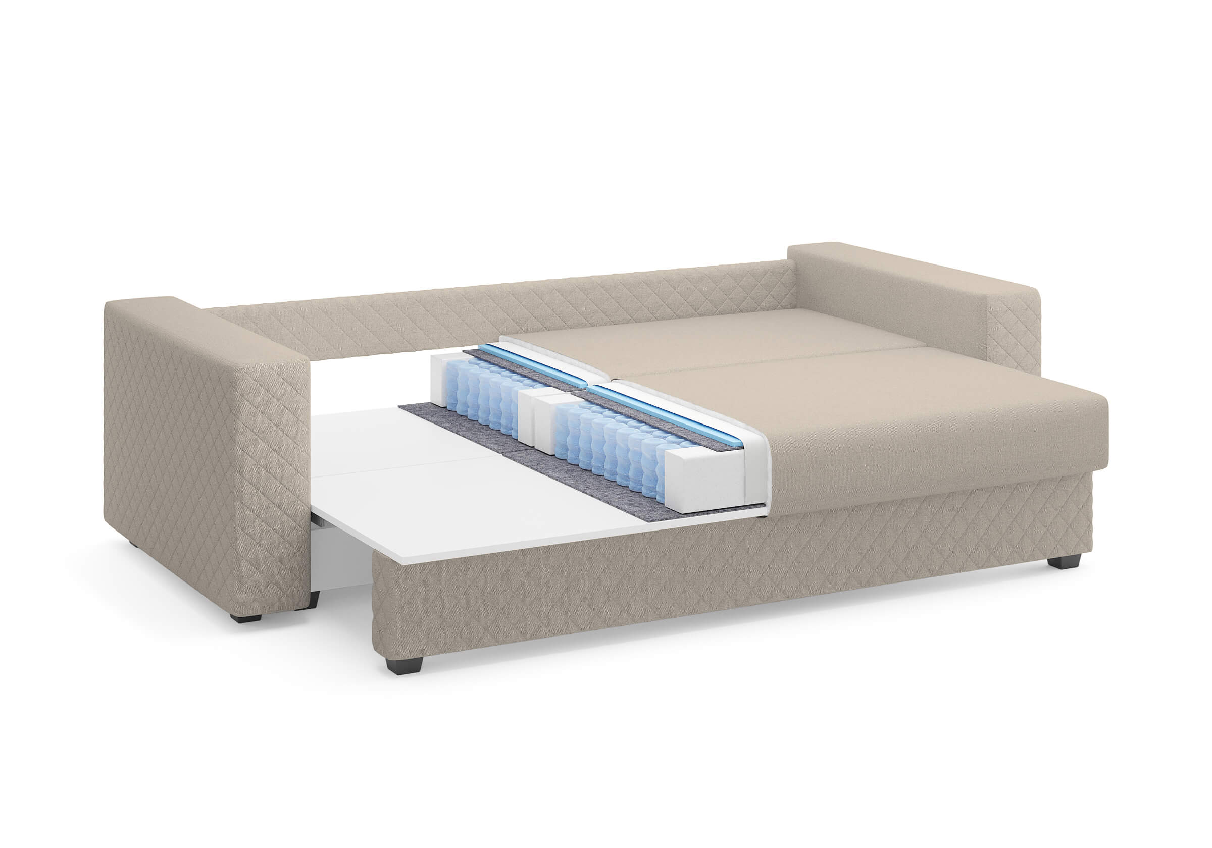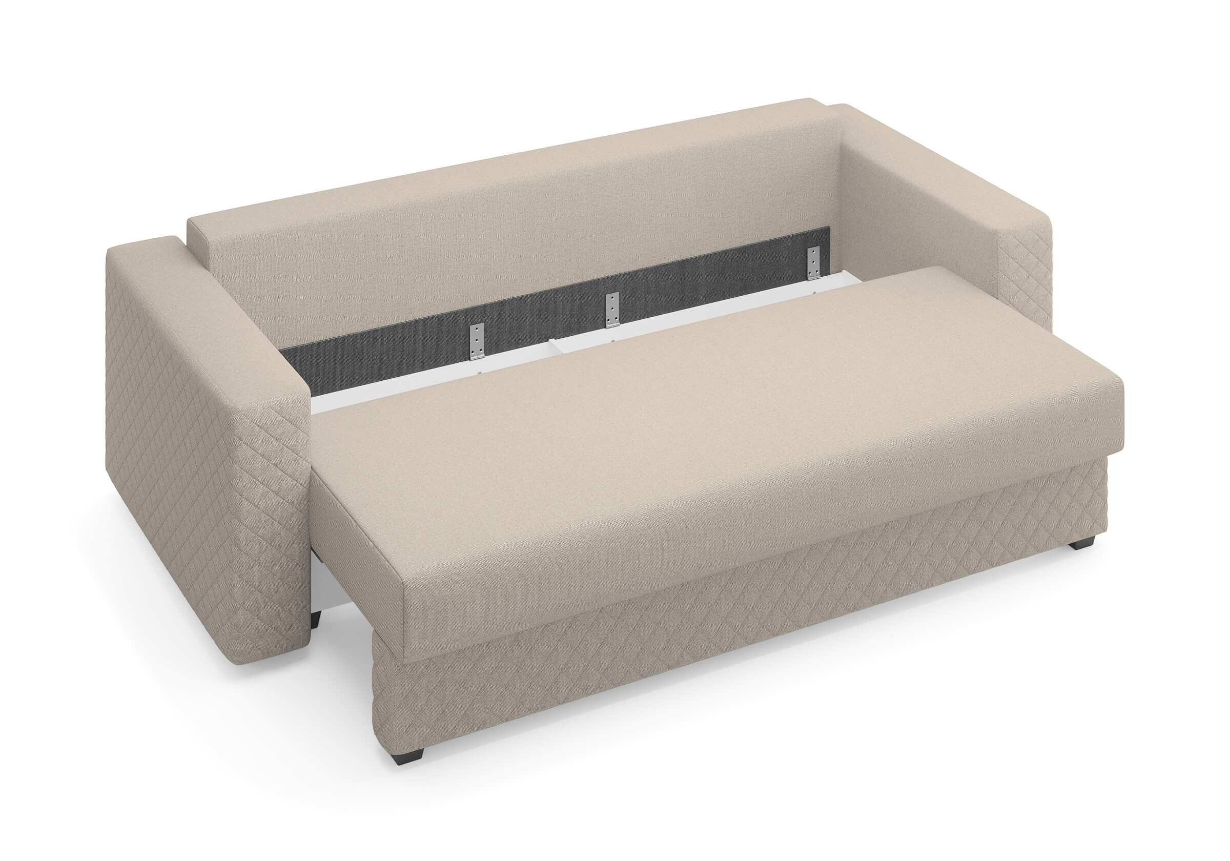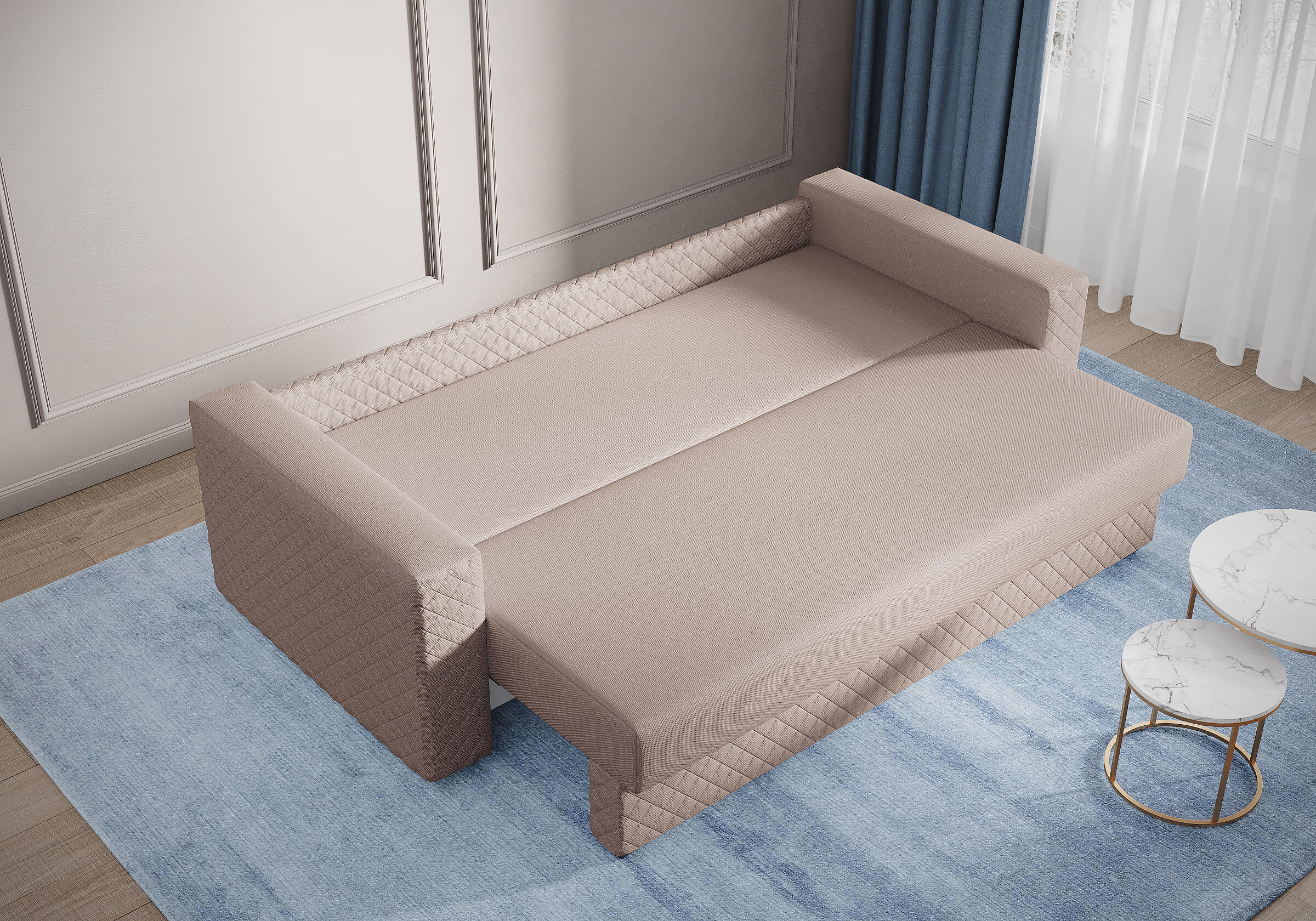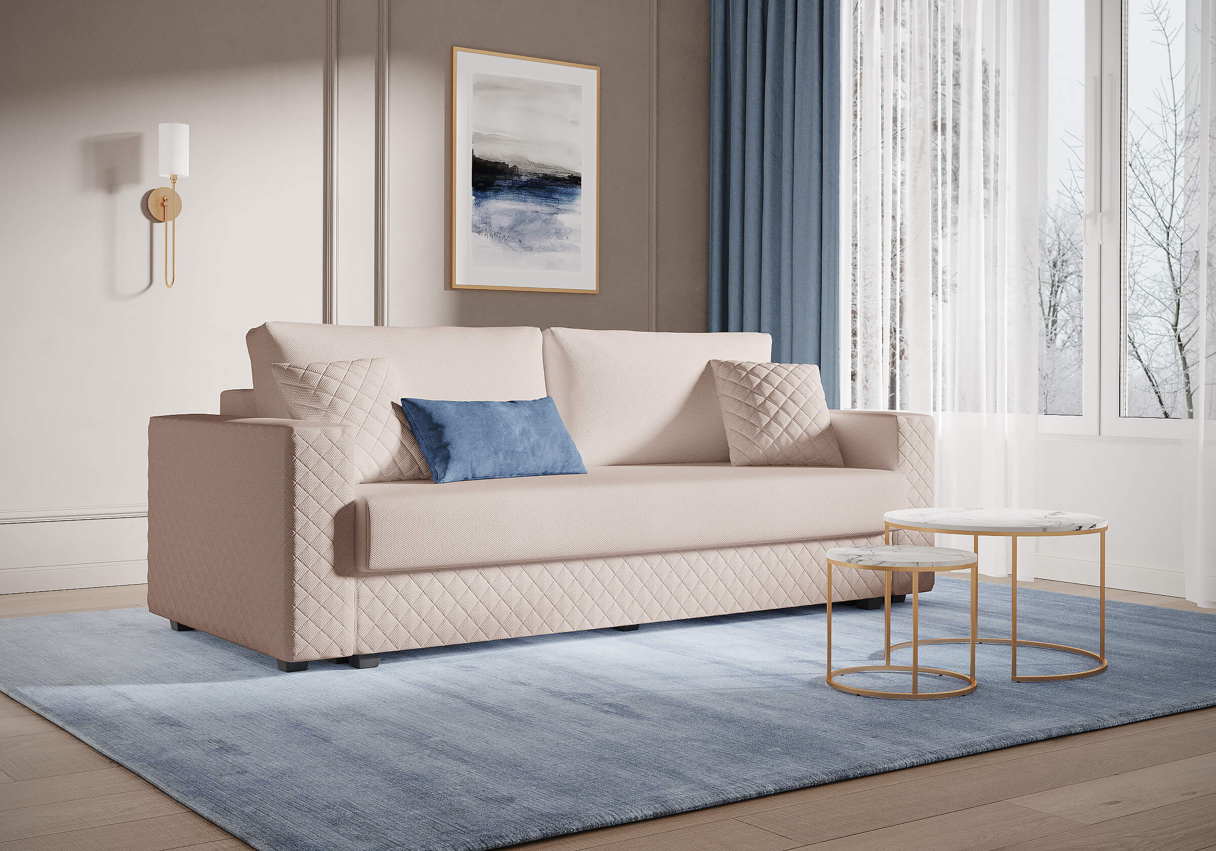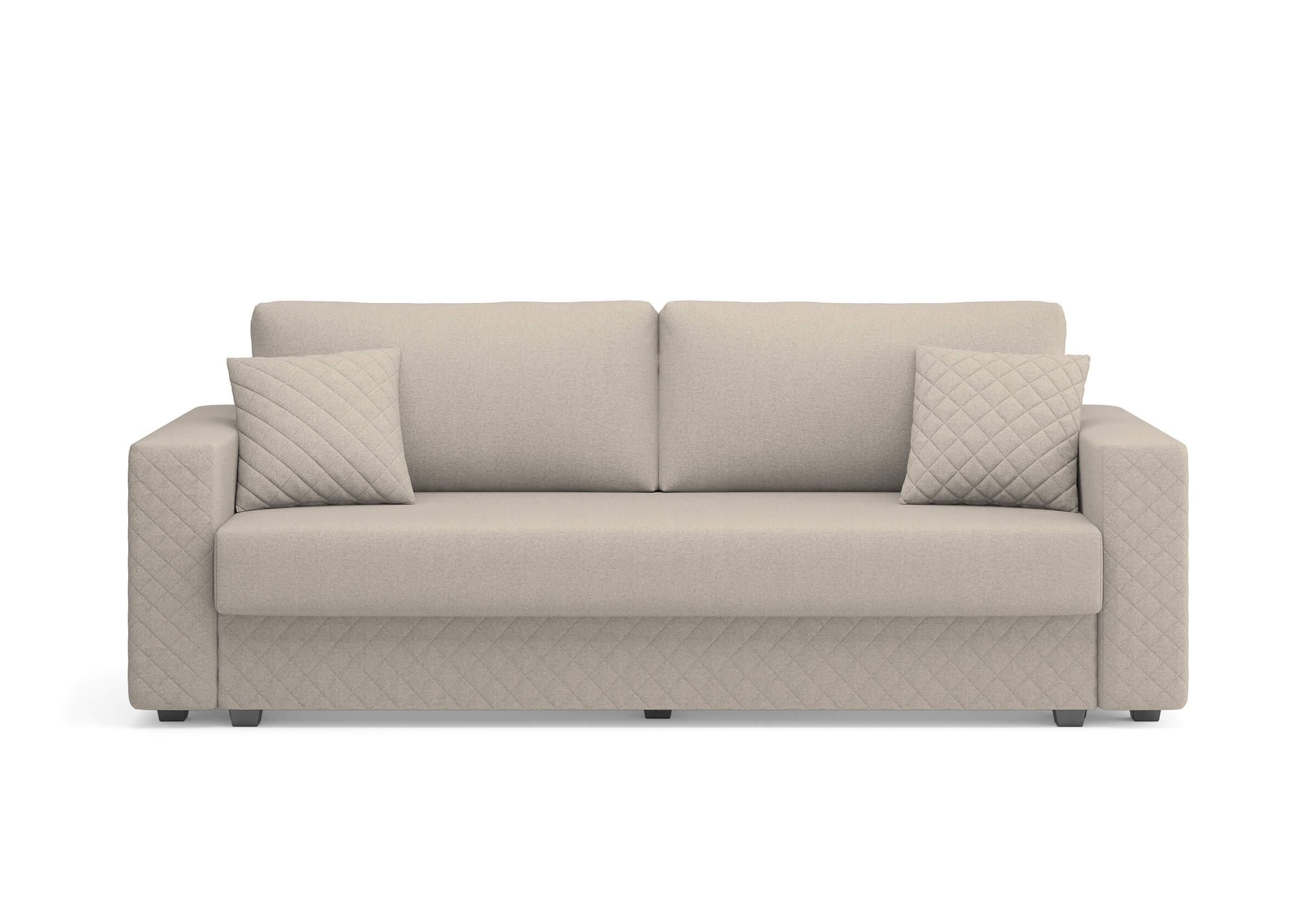 Диван сочетает в себе лаконичный и изысканный дизайн, который подчеркнут декоративной стёжкой на элементах. Универсальный стиль позволяет его легко вписать в любой интерьер. Для создания идеального решения для дома вы сможете подобрать материал и цвет, которые гармонично дополнят вашу обстановку и подчеркнут индивидуальность интерьера. Механизм трансформации «пантограф» позволяет легко и быстро превратить диван в просторное и удобное спальное место, что делает его идеальным выбором как для ежедневного использования, так и для размещения гостей. Диван оснащён матрасом, который обеспечивает правильную поддержку тела. В диване предусмотрен вместительный ящик для белья. Это удобное и практичное решение для хранения вещей. Задняя спинка дивана предотвращает от соприкосновения со стеной во время сна, защищая её от возможных повреждений и загрязнений. В комплект также входят две стёганные подушки, которые дополняют внешний вид дивана и обеспечивают дополнительный комфорт для отдыха.