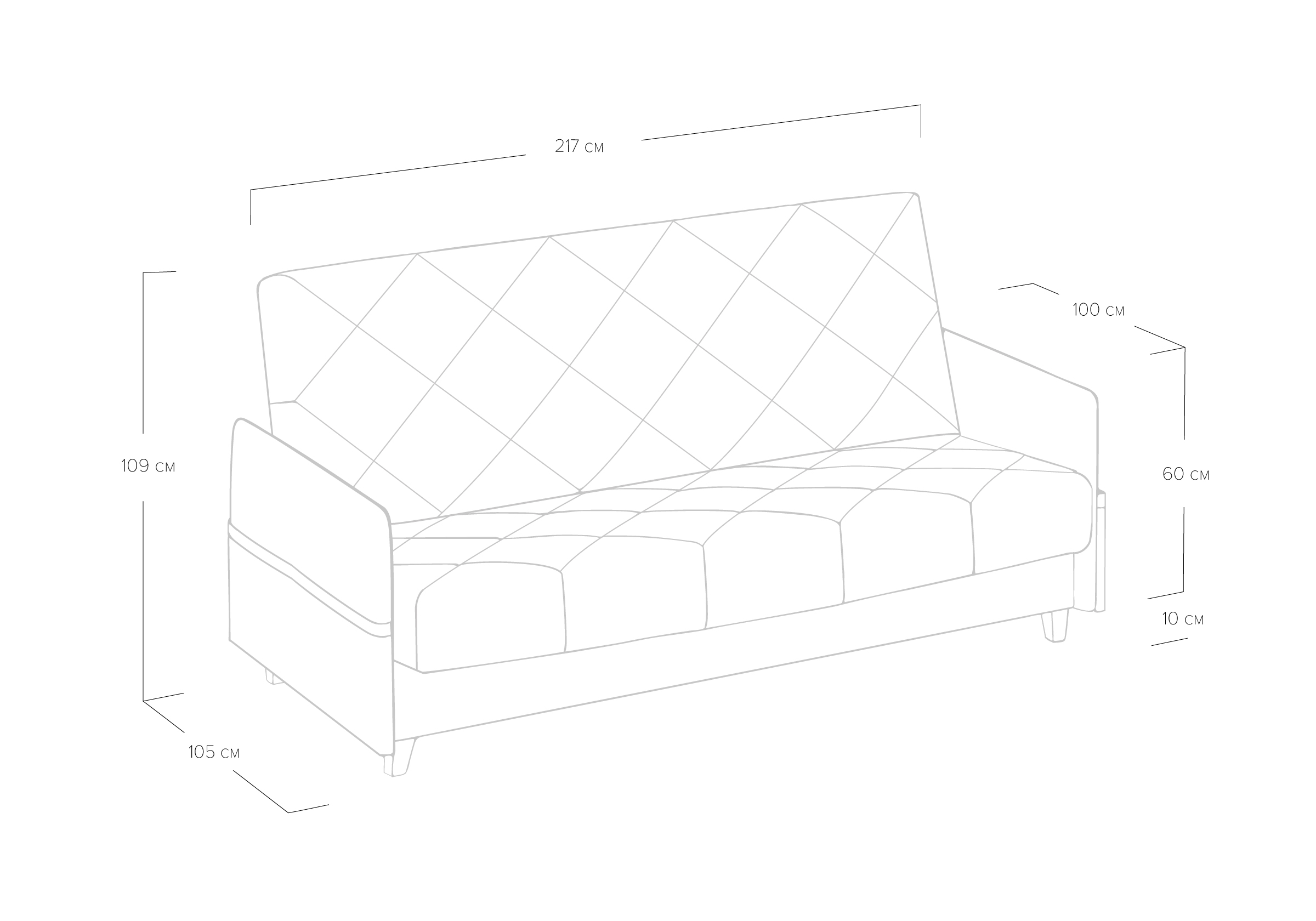 Габариты: в собранном положении 217х105х109(в) см, в полож. кровать 146х217 см