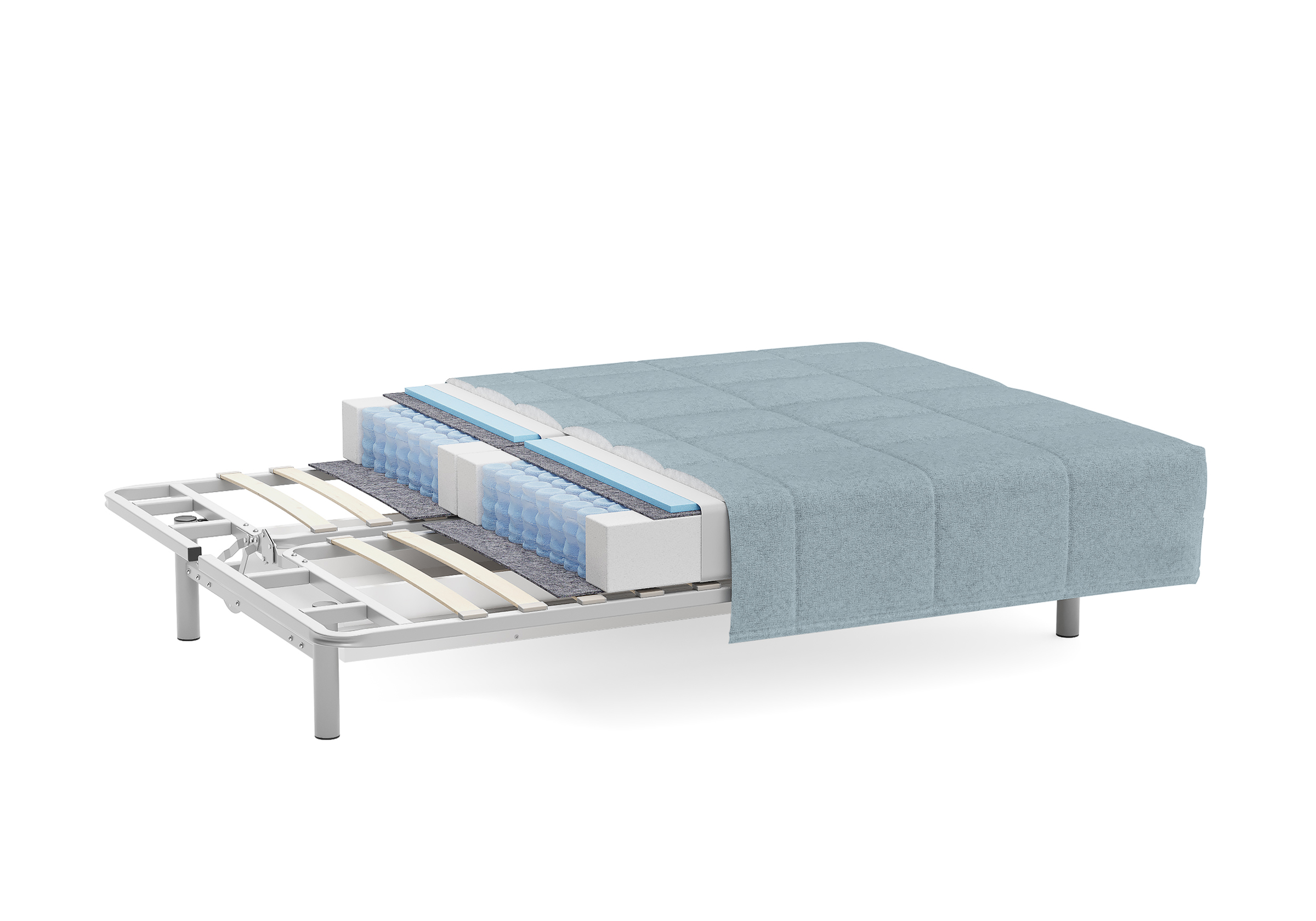 Диван Liberty box - подходит для полноценного сна. Основание для матраса – металлическая рама с ламелями. Анатомический матрас средней жесткости с независимым пружинным блоком и высокоэластичной пеной Foam обеспечивают возможность правильного положения и расслабления во сне. Высота матраса 20 см.