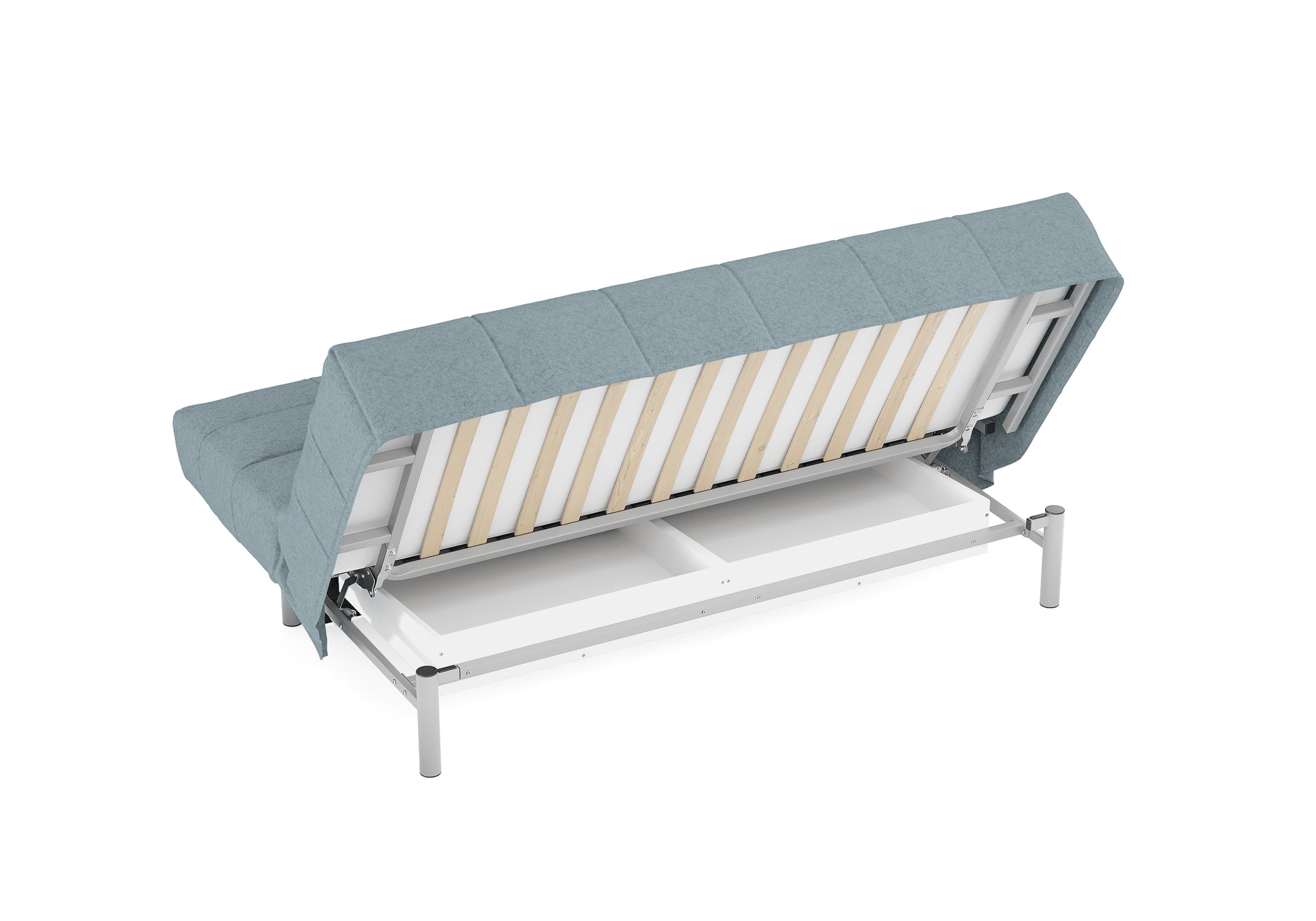 Диван Liberty box - недорогой функциональный диван-кровать для сна и отдыха в современном стиле с механизмом трансформации «клик-кляк» и коробом для хранения. Основа дивана - металлическое основание с ортопедическими ламелями и анатомический матрас с независимым пружинным блоком. Благодаря съемному чехлу с объемной стежкой в форме квадратов, диван органично впишется в современные интерьеры в стиле минимализм. Благодаря отсутствию подлокотников у дивана минимальные габариты как в сложенном, так и разложенном виде. Диван Liberty box оборудован вместительным коробом для хранения постельного белья или аксессуаров для сна. Опоры металлические высокие 27см, просвет над полом способствует легкой уборке под диваном, в том числе роботом-пылесосом. Короб для хранения из белого ЛДСП разделен на две секции. Глубина короба 13 см является достаточной для комфортного хранения аксессуаров для сна и прочих вещей.