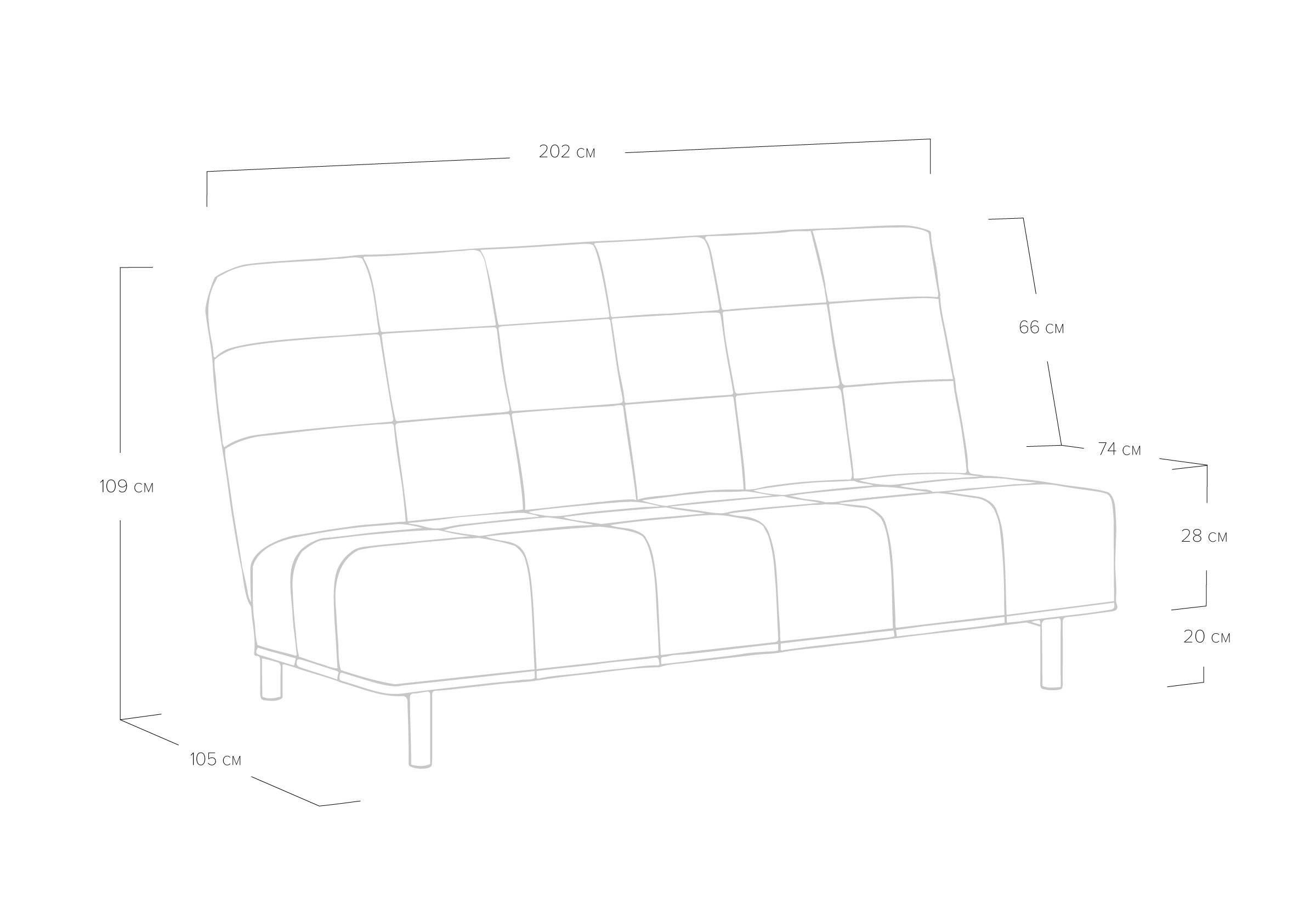 Диван Liberty - недорогой диван-кровать для сна и отдыха в современном стиле с механизмом трансформации «клик-кляк». Основа дивана - металлическое основание с ортопедическими ламелями и анатомическим матрасом с независимым пружинным блоком. Благодаря съемному чехлу с объемной стежкой в форме квадратов, диван органично впишется в современные интерьеры в стиле минимализм. Благодаря отсутствию подлокотников у дивана минимальные габариты как в сложенном, так и разложенном виде. Опоры металлические высокие 27см, просвет над полом способствует легкой уборке под диваном, в том числе роботом-пылесосом.