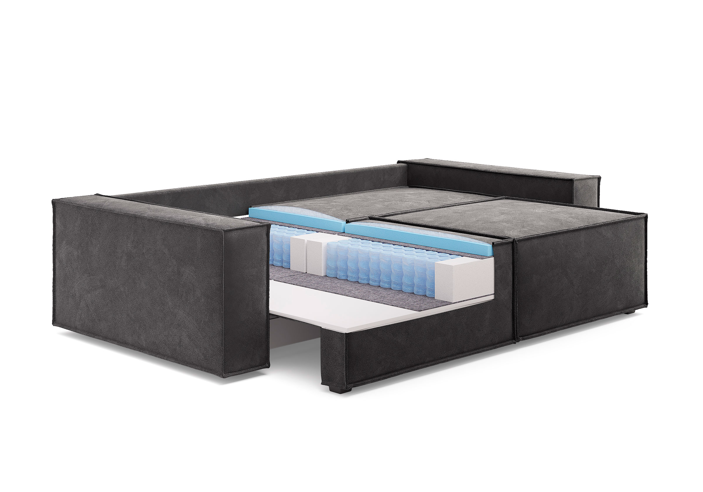 Диван Loft с механизмом трансформации «Пантограф». В основе дивана полноценный ортопедический матрас на независимом пружинном блоке, усиленном слоем натуральной латексированной кокосовой коры. Комфортная глубина и высота сиденья обеспечит ежедневный комфорт. Декоративный кант подчеркивает прямые и геометричные формы, придает строгость. Задняя спинка защищает от прикосновения со стеной во сне, а стену – от возможных повреждений и загрязнений. В основе мягких подушек – микс наполнителей: поролоновая крошка защищает от деформации, а синтетическое волокно добавляет мягкость и упругость – для бережной поддержки спины. Подушки убираются во вместительный бельевой ящик с вентиляционным отверстием в разложенном состоянии дивана.