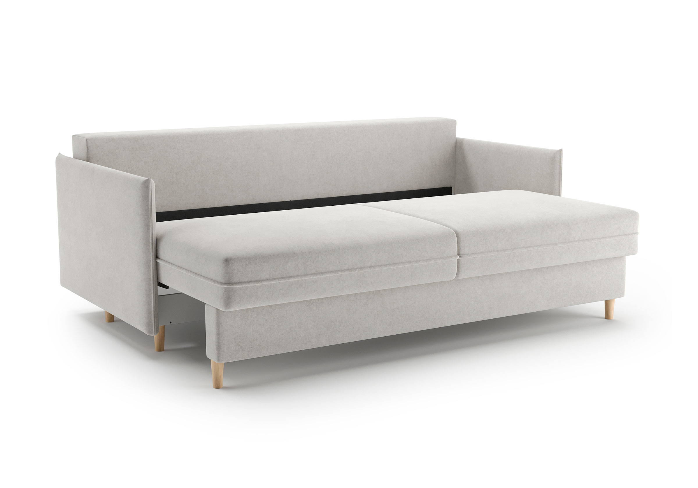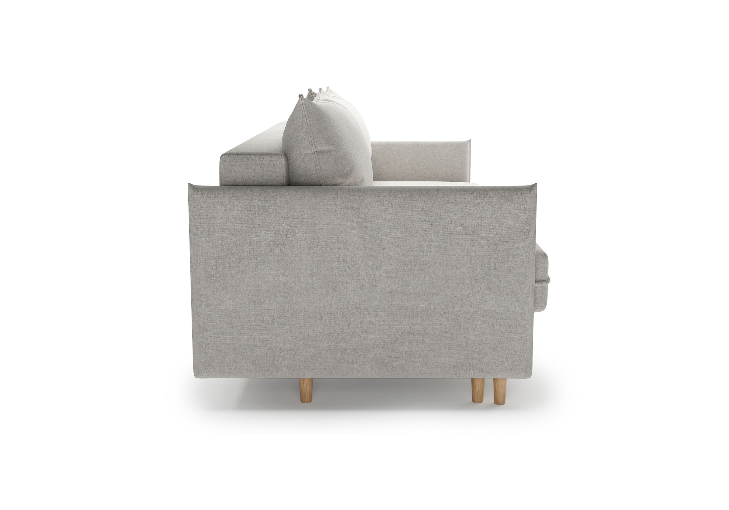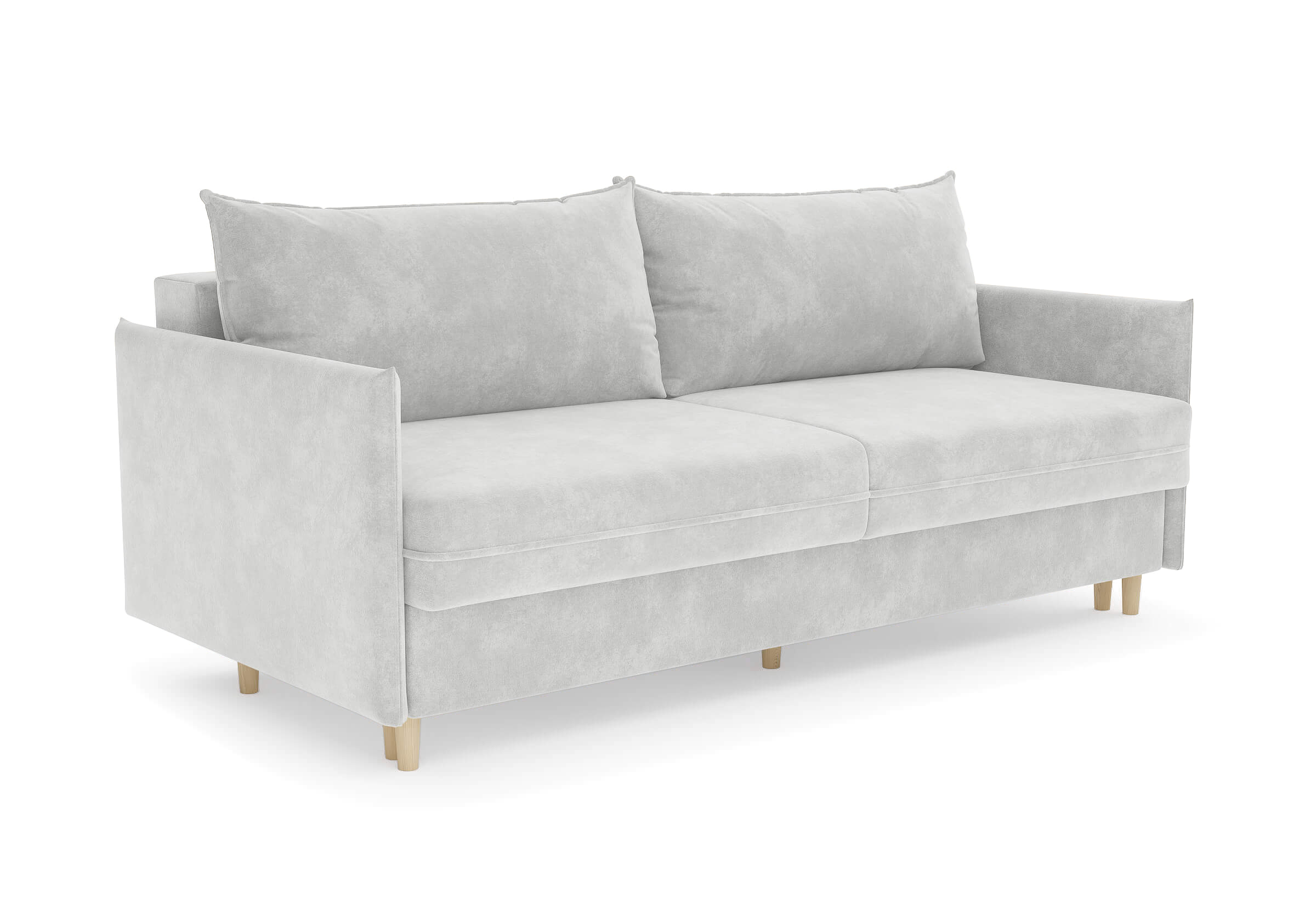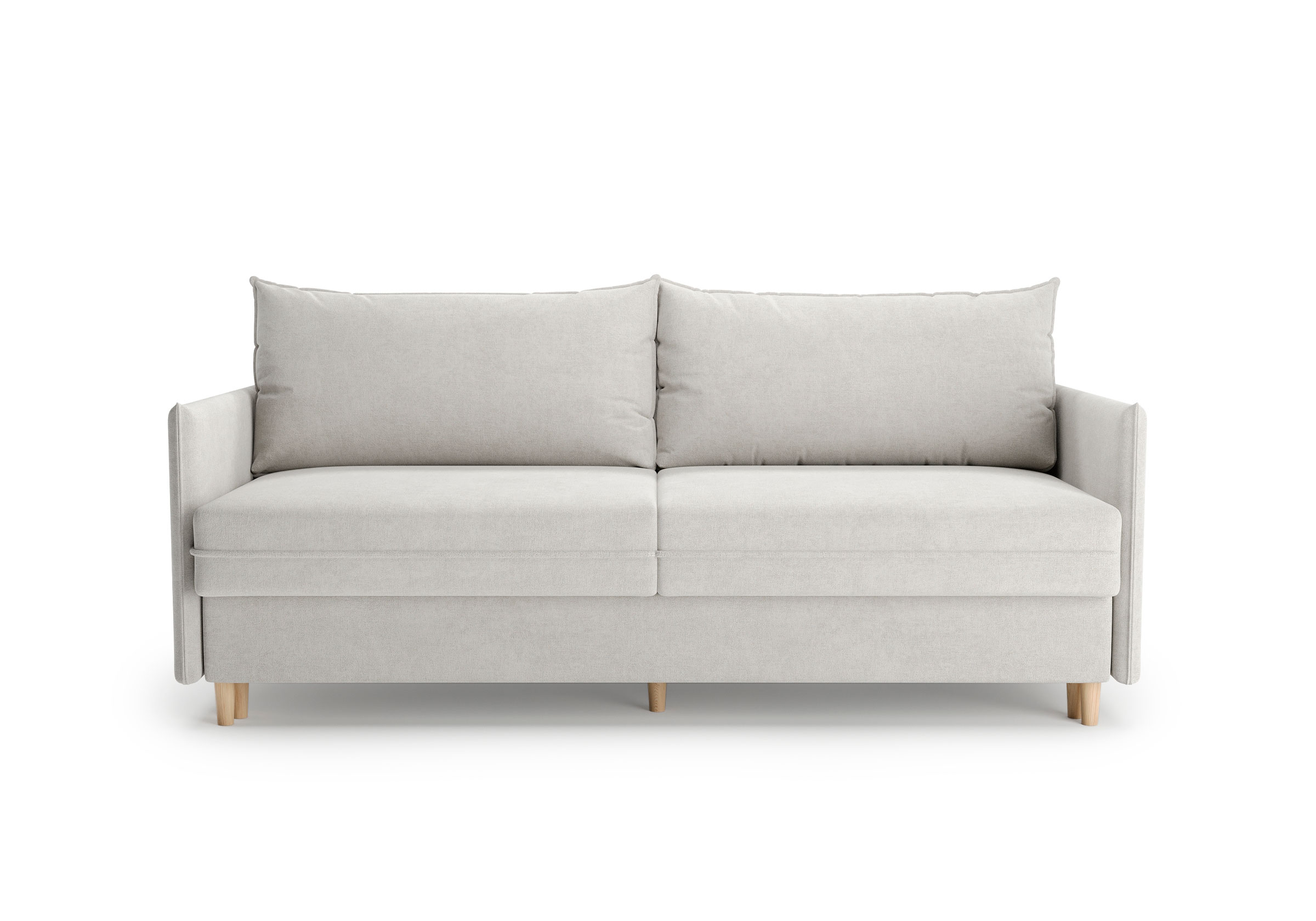 Диван для сна в скандинавском стиле с механизмом трансформации пантограф и коробом для хранения. Модель без броского декора, с прямыми линиями. Благодаря декоративному канту на сидении, подлокотниках и подушках, а также опорам из натурального массива Rain органично впишется в современные интерьеры в скандинавском стиле. У дивана анатомический матрас с блоком независимых пружин, жесткость средняя. Тонкие подлокотники делают диван негабаритным в длину. Комфортная глубина и высота сиденья обеспечит ежедневный комфорт. Задняя спинка предотвращает загрязнение и повреждение стены. В основе мягких подушек – микс наполнителей: поролоновая крошка не дает деформироваться, а синтетическое волокно добавляет комфорт. Опоры деревянные, два цвета на выбор. Просвет над полом способствует легкой уборке под диваном, в том числе роботом-пылесосом..