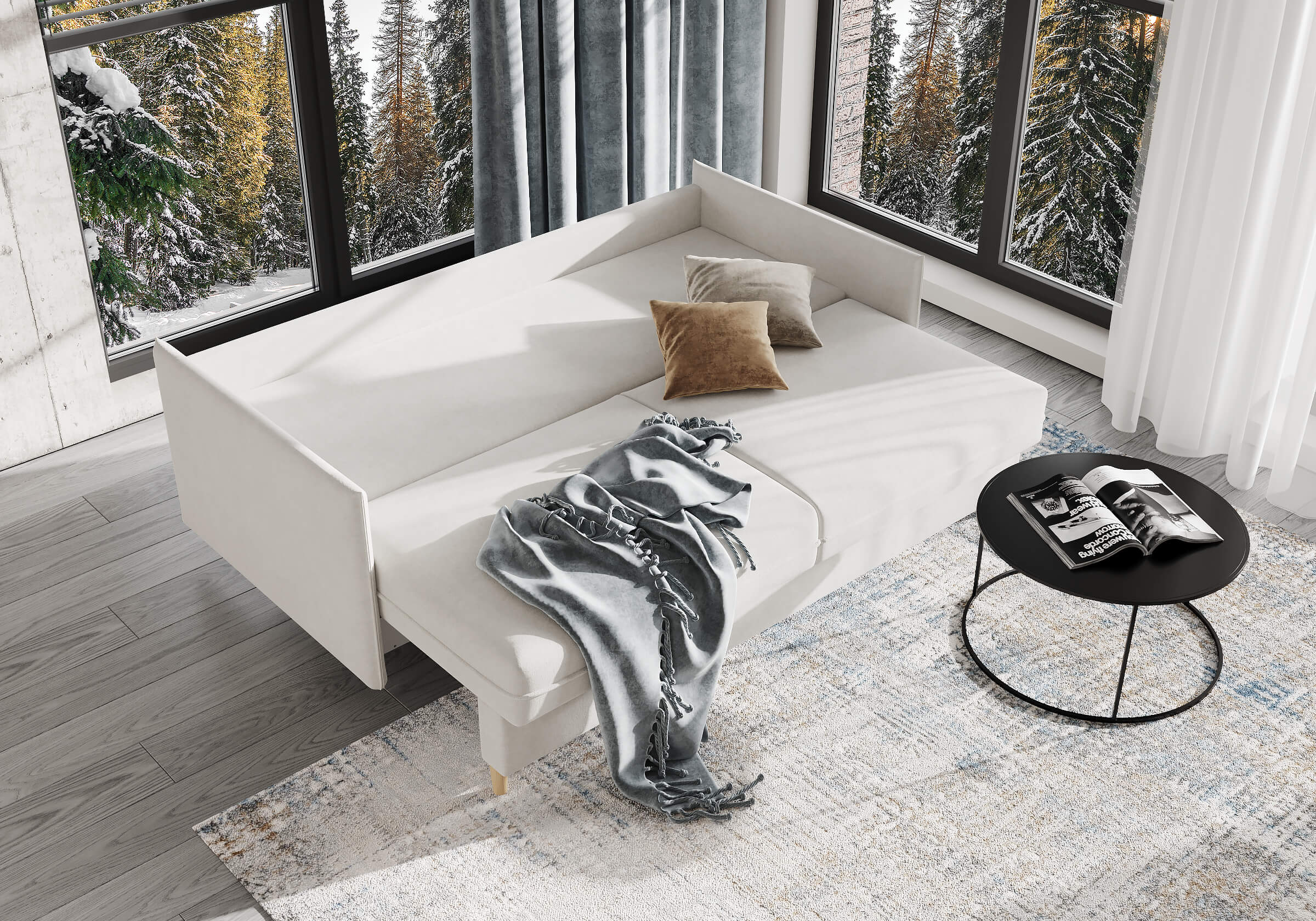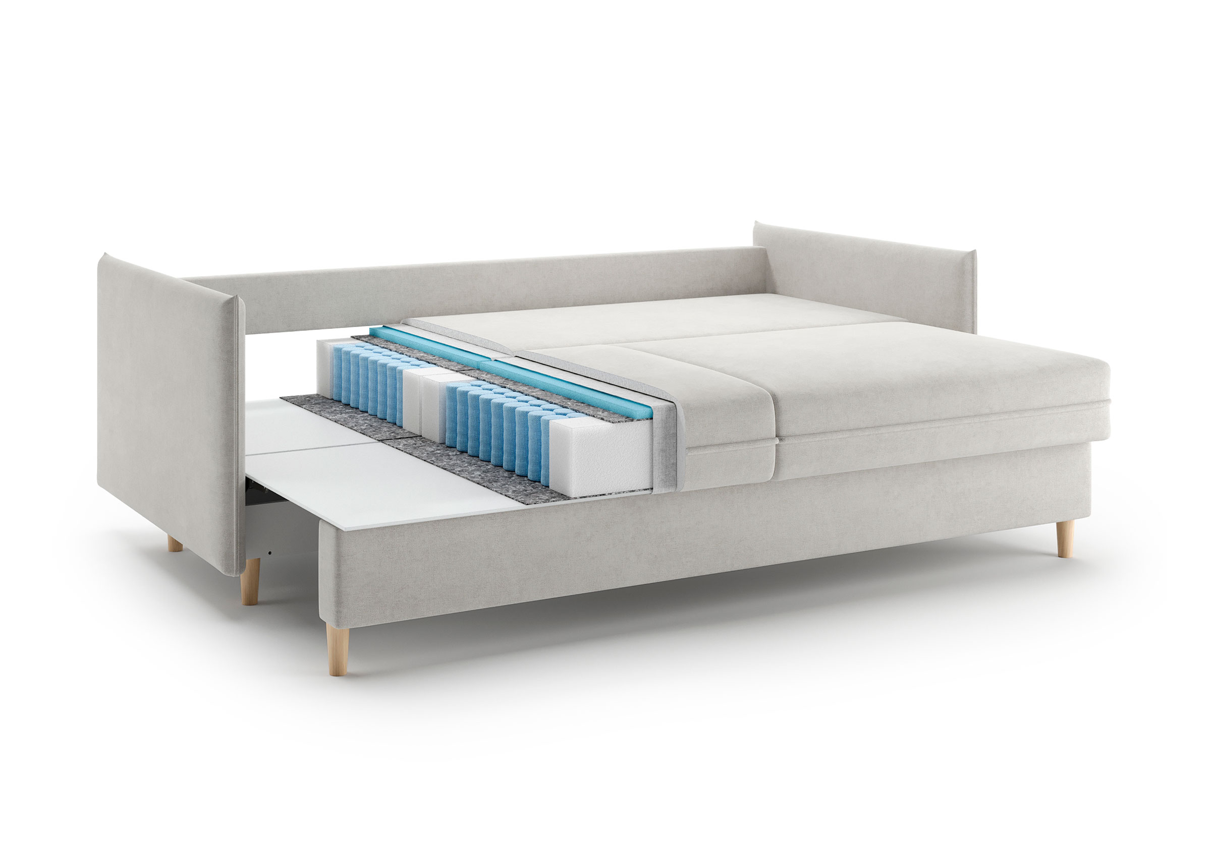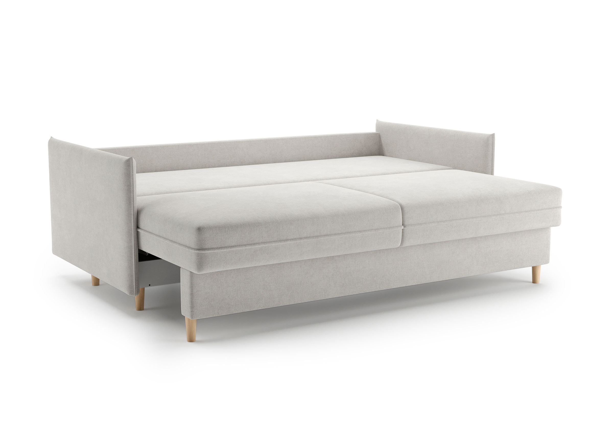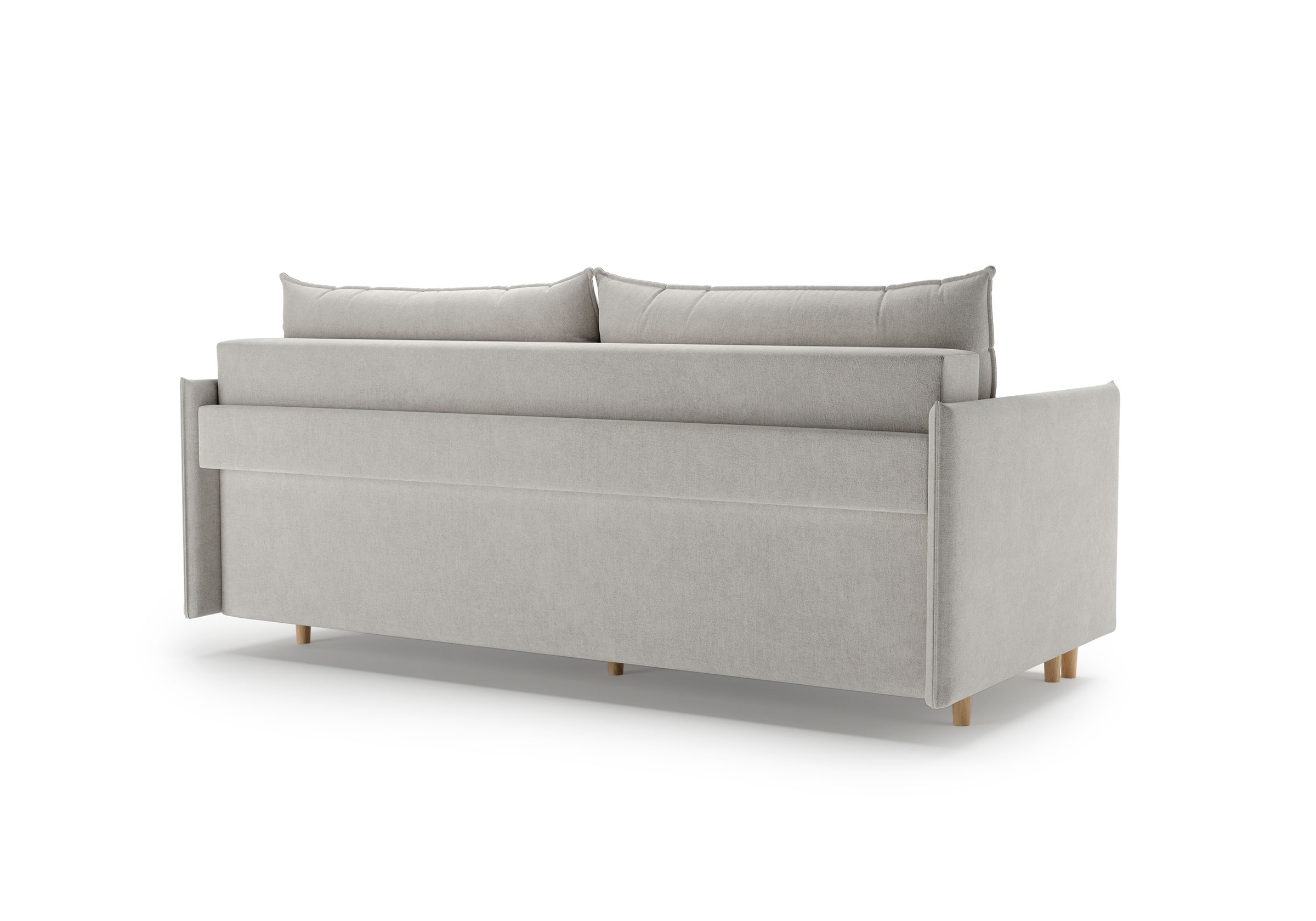 Диван для сна в скандинавском стиле с механизмом трансформации пантограф и коробом для хранения. Модель без броского декора, с прямыми линиями. Благодаря декоративному канту на сидении, подлокотниках и подушках, а также опорам из натурального массива Rain органично впишется в современные интерьеры в скандинавском стиле. У дивана анатомический матрас с блоком независимых пружин, жесткость средняя. Тонкие подлокотники делают диван негабаритным в длину. Комфортная глубина и высота сиденья обеспечит ежедневный комфорт. Задняя спинка предотвращает загрязнение и повреждение стены. В основе мягких подушек – микс наполнителей: поролоновая крошка не дает деформироваться, а синтетическое волокно добавляет комфорт. Опоры деревянные, два цвета на выбор. Просвет над полом способствует легкой уборке под диваном, в том числе роботом-пылесосом..