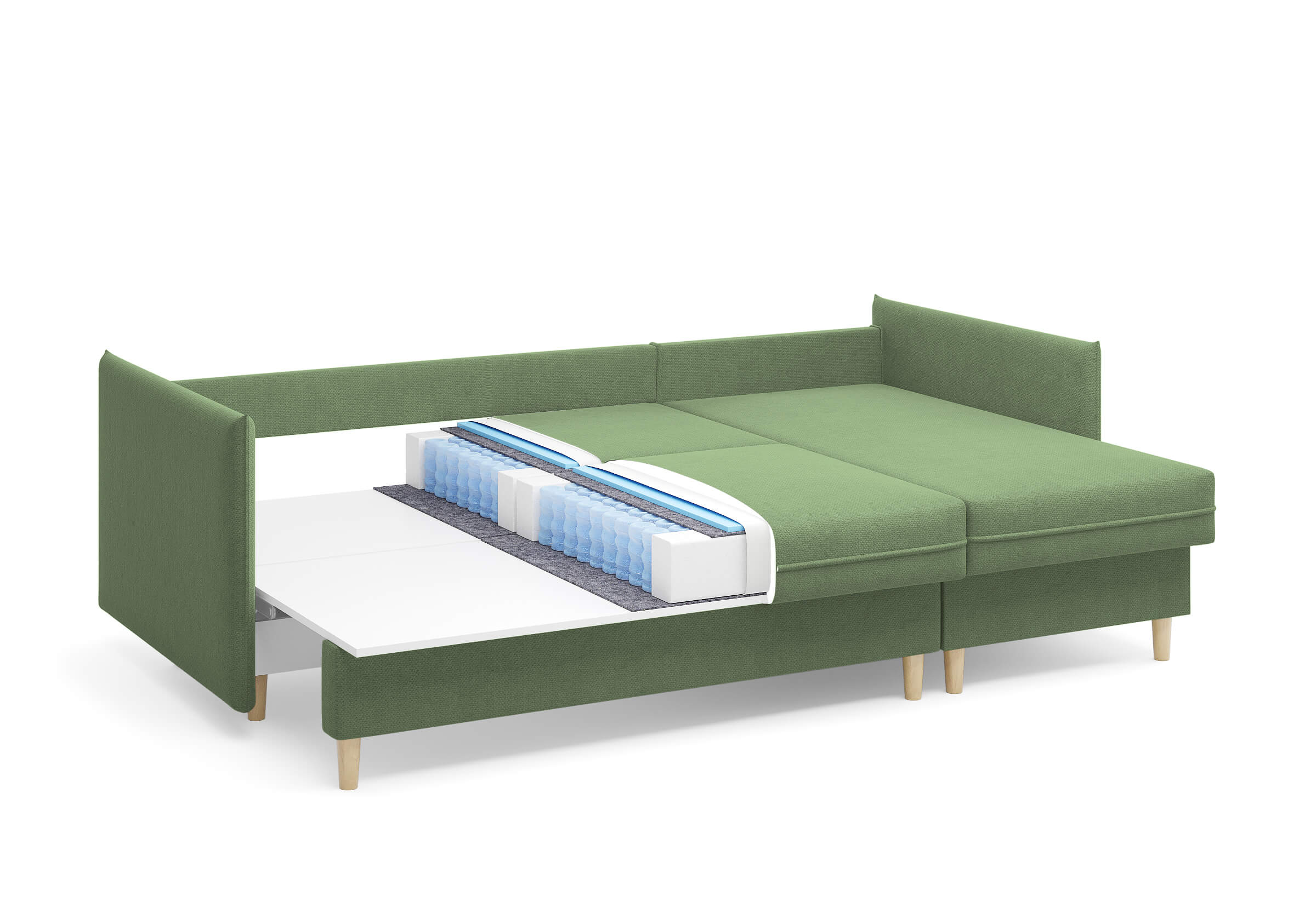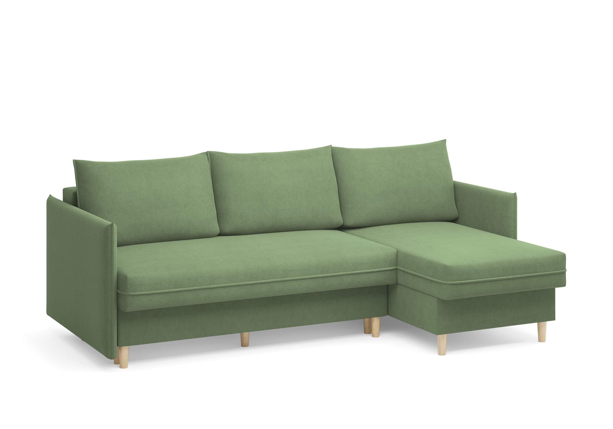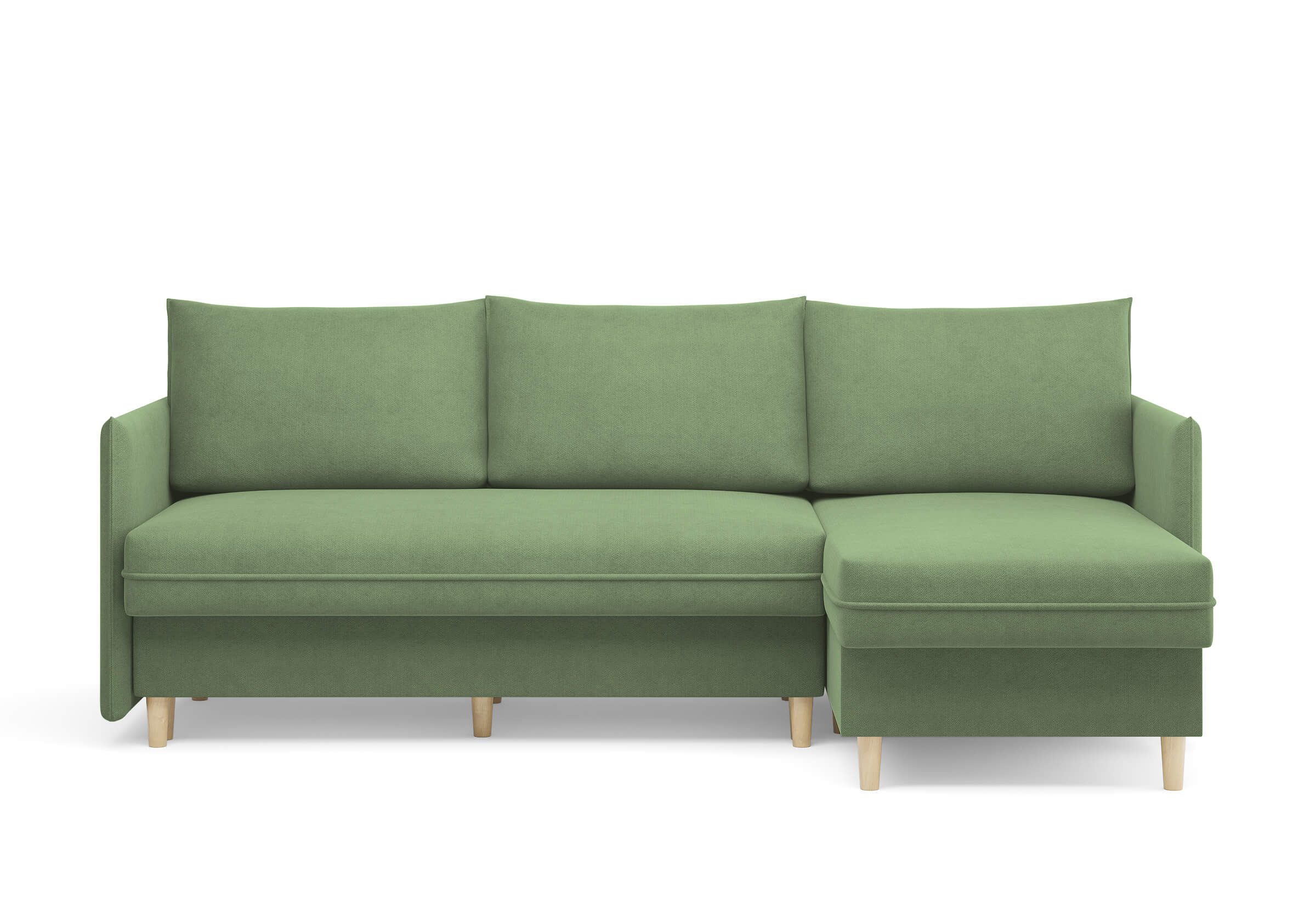 Угловой диван Rain — это идеальное сочетание лаконичного дизайна, продуманной эргономики и непревзойденного комфорта, воплощённое в сканди стиле. Четкие геометрические линии, минималистичные подлокотники и стильные деревянные опоры создают выразительный силуэт, который станет ключевым элементом вашей гостиной. Конструкция позволяет собрать конфигурацию под ваше пространство — левую или правую, — а встроенный бельевой короб обеспечивает удобное хранение постельного белья и подушек, не занимая лишнего места. Диван не только красив, но и практичен: независимый пружинный блок в сочетании с высокоэластичной пеной в составе матраса обеспечивает комфортное место для сна и отдыха. Практичная обивка и продуманная высота спинки защитят стены, сохраняя безупречный вид вашего интерьера. Кроме того, вы можете выбрать цвет и фактуру ткани из широкой палитры, чтобы диван идеально вписался в ваш интерьер.