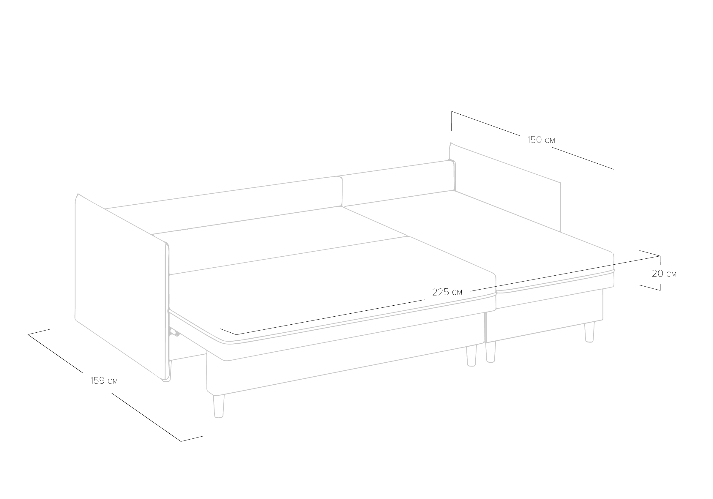 Размер спального места: 225х150 см