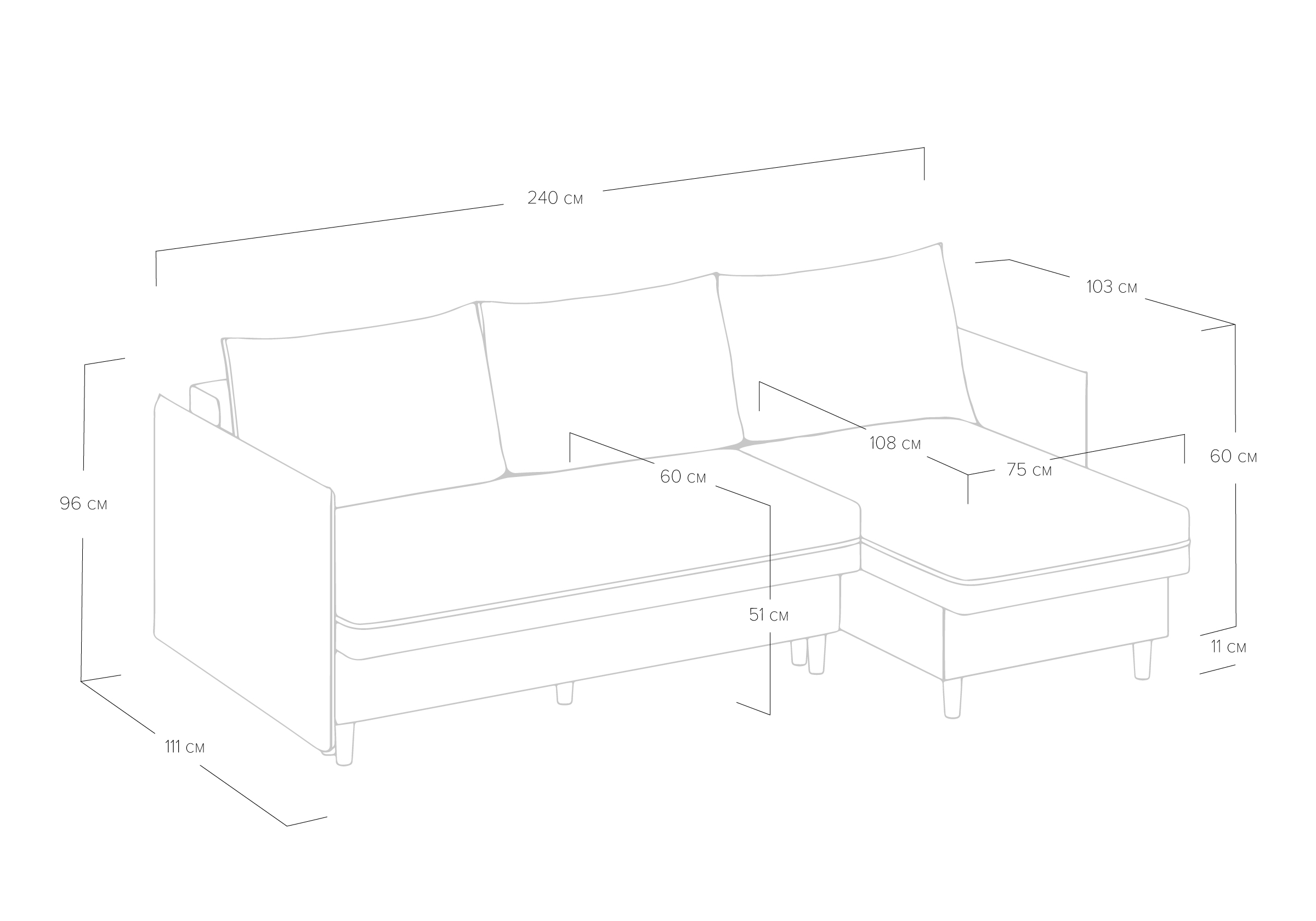 Высота спинки: 96 см