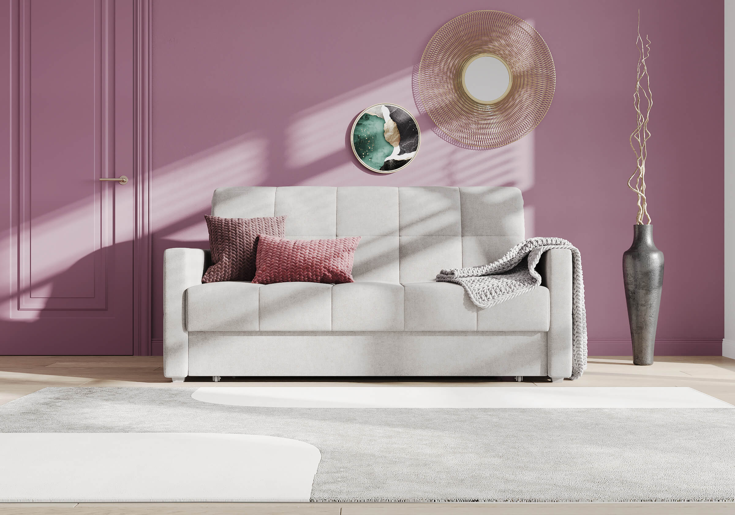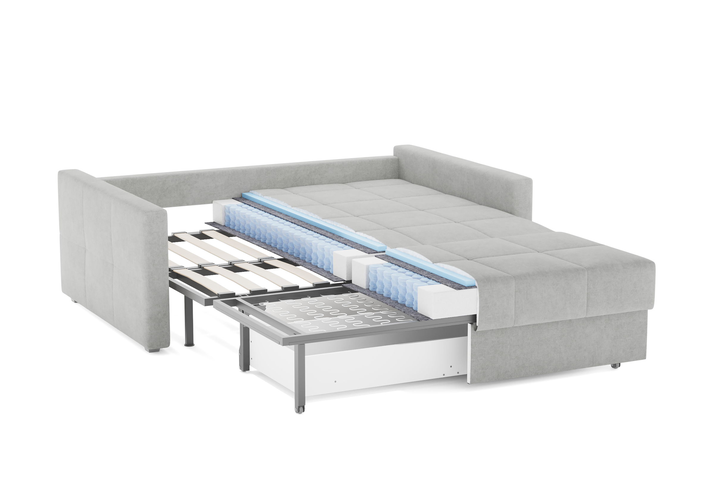 Диван-кровать Rest для сна в современном стиле, с механизмом трансформации аккордеон и коробом для хранения. Металлический каркас с деревянными ламелями обеспечивает ровную поверхность, как на кровати. Матрас анатомический с независимым пружинным блоком. Благодаря чехлу с объемной стежкой в форме квадратов, диван органично впишется в современные интерьеры и интерьеры в стиле минимализм. Лаконичные подлокотники и механизм разложения обеспечивают дивану минимальные габариты в ширину как в сложенном, так и разложенном виде. Диван Rest оборудован вместительным коробом для хранения постельного белья или аксессуаров для сна. Rest имеет 2 положения трансформации - диван с комфортной посадкой и кровать с полноценным анатомическим матрасом.