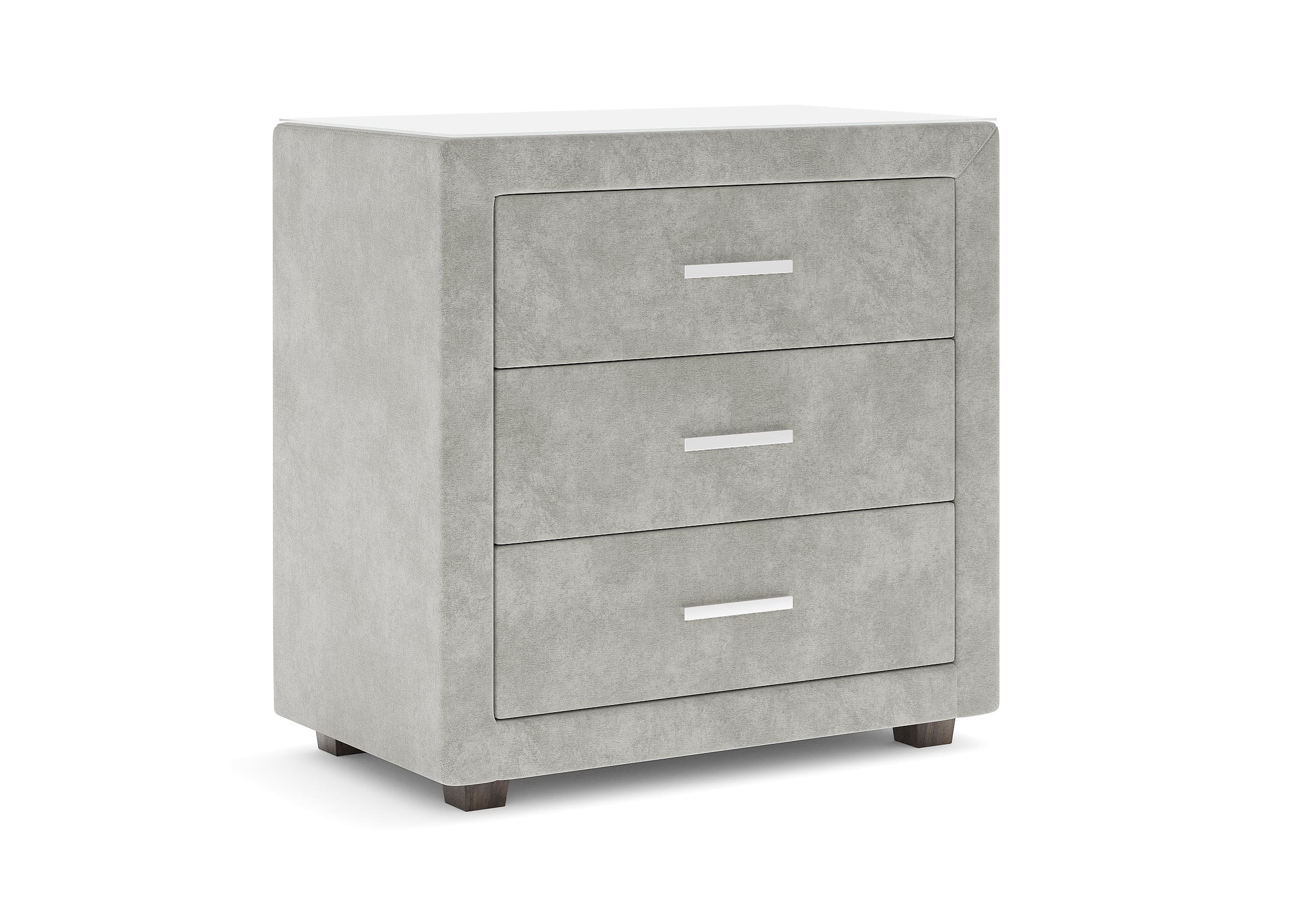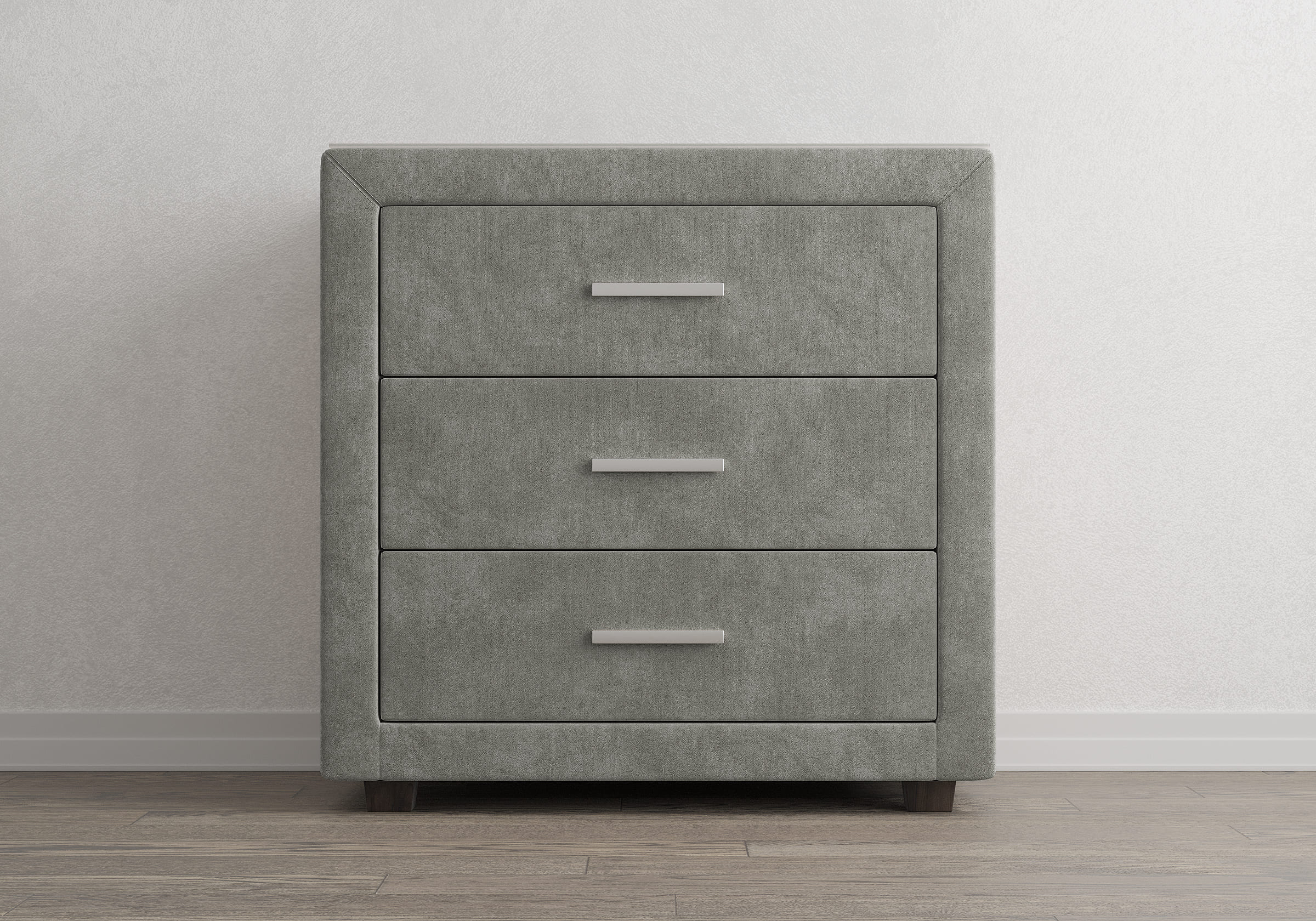 Элегантный комод отличается стильным дизайном и повышенным удобством. Три выдвижных ящика оснащены надёжными направляющими, обеспечивающими лёгкое открытие. Фасад ящиков и стенки комода покрыты обивочным материалом.