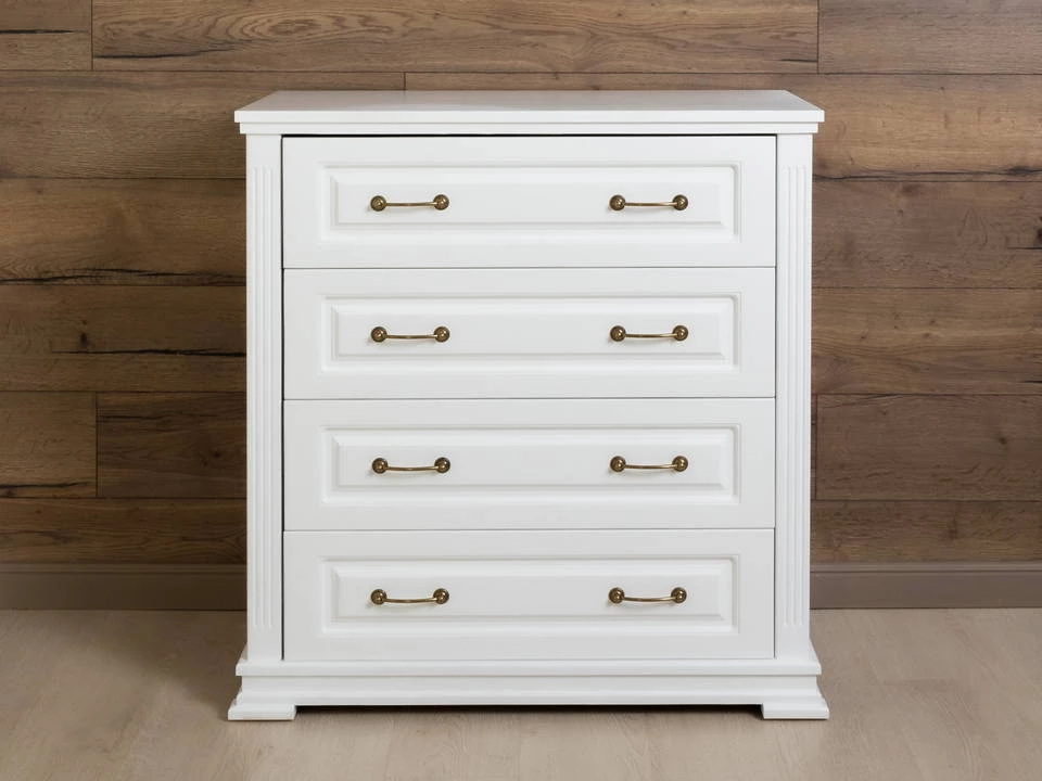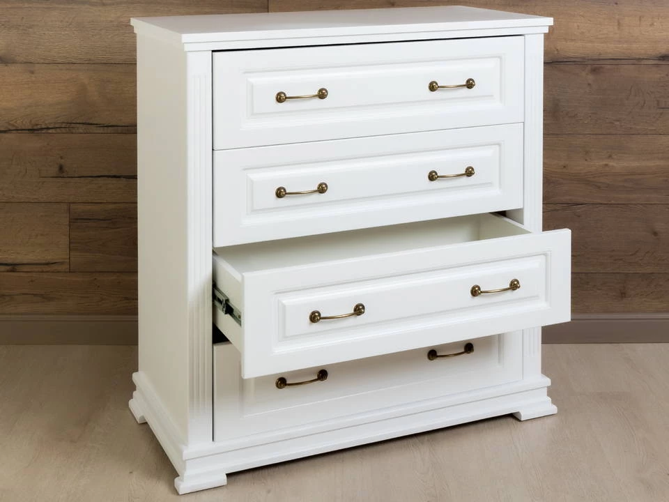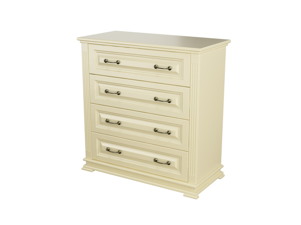 Комод имеет четыре больших ящика для хранения. Изделие прекрасно дополнит собой кровать и тумбу серии Венеция.