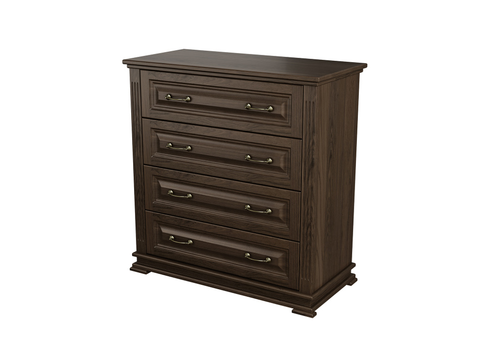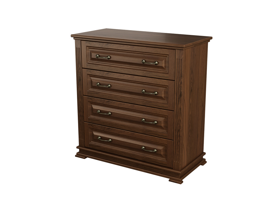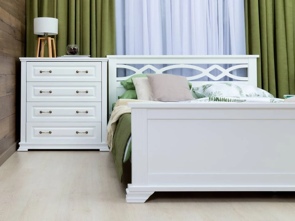 Каркас и фасад комода выполнен из массива карельской сосны. Данный материал легок в эксплуатации и долговечен. Вы можете быть уверены в том, что комод прослужит вам долго.