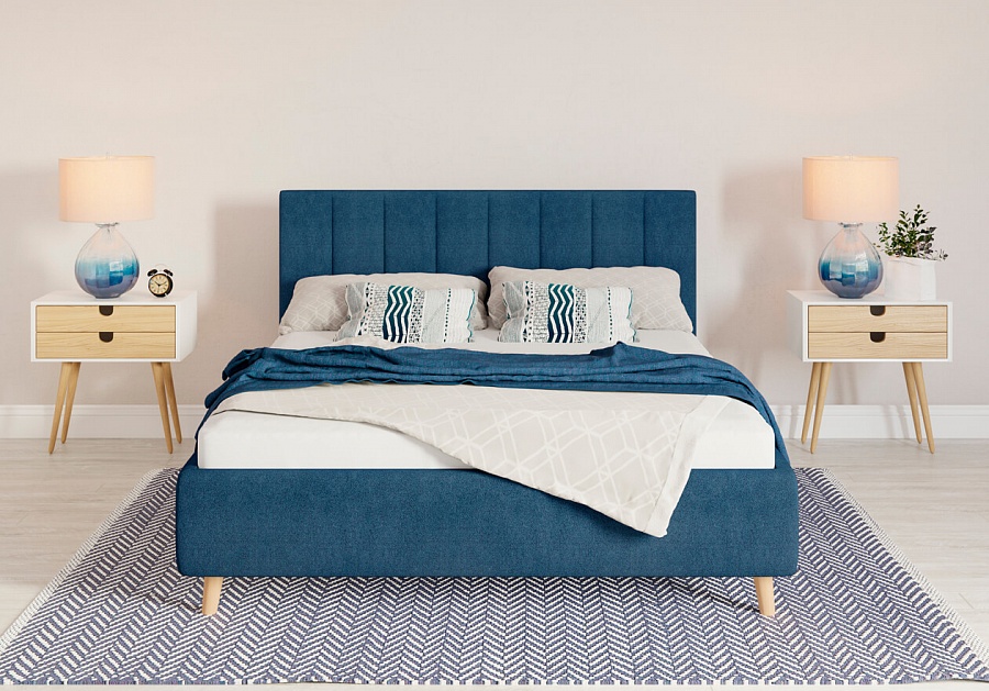 - Модель изготовлена из ДСП и бруса березы в изголовье. Обивка кровати имеет более 60 вариантов цветового исполнения: из эко-кожи, глазго, велюра и вельвета, микровелюра, шинила, энигмы. Обратная сторона изголовья обита спандбондом, но при желании, её можно выполнить из основного обивочного материала.