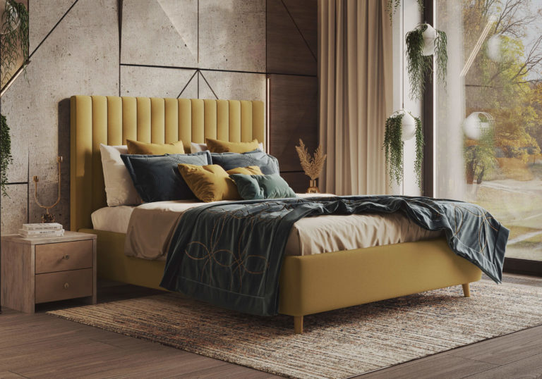- Модель изготовлена из ДСП и бруса березы в изголовье. Обивка кровати имеет более 60 вариантов цветового исполнения: из эко-кожи, глазго, велюра и вельвета, микровелюра, шинила, энигмы. Обратная сторона изголовья обита спандбондом, но при желании, её можно выполнить из основного обивочного материала.