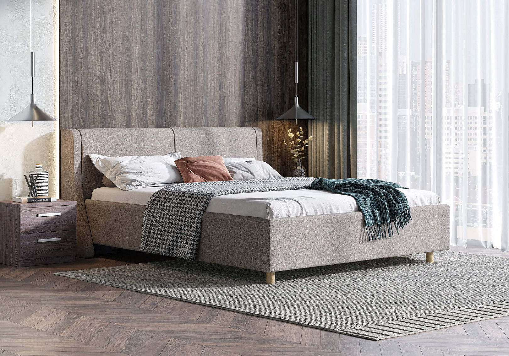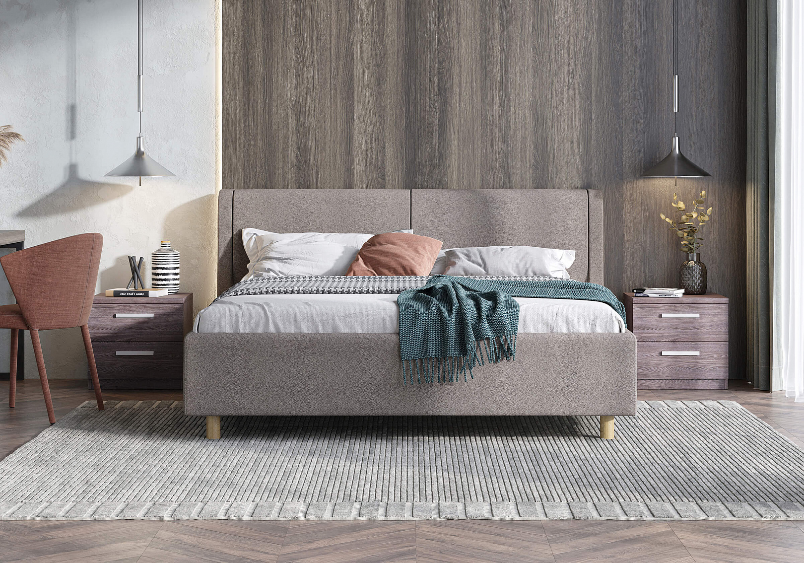 Кровать Barcelona подойдет для современных интерьеров спален, а благодаря деревянным ножкам впишется в стиль ретро, скандинавский или минимализм.