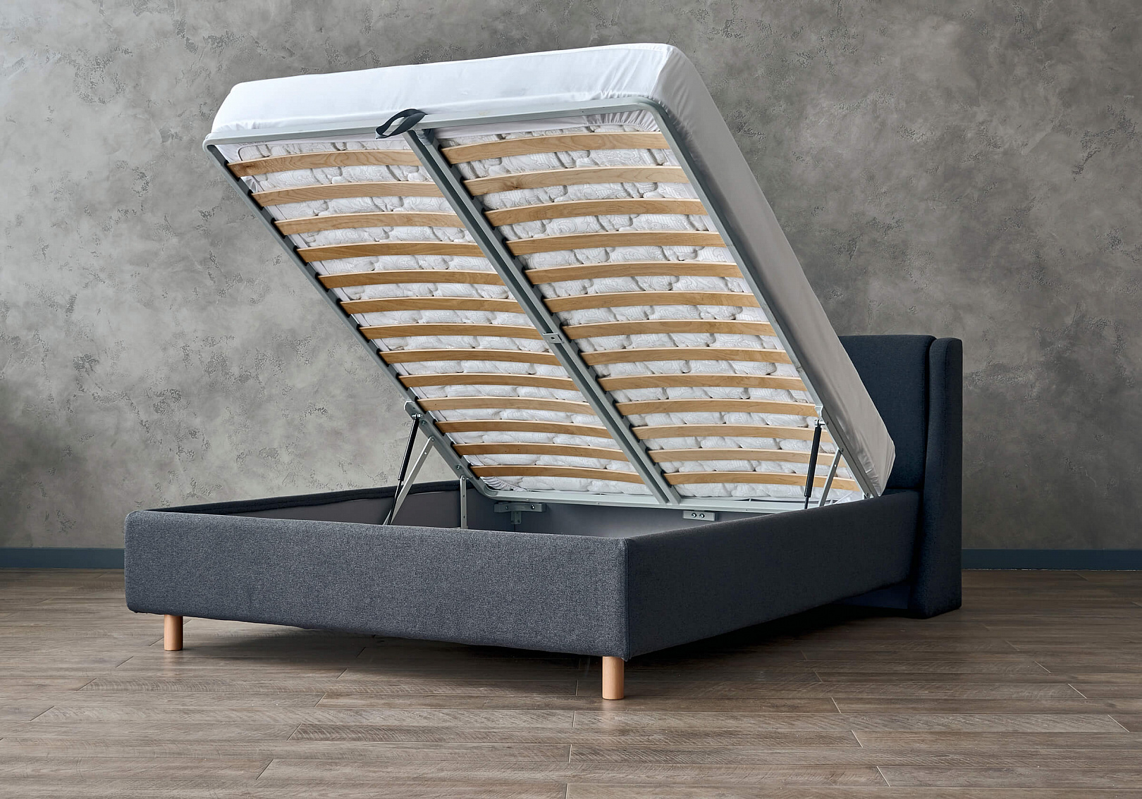 • В комплект кровати входит кроватное основание. Каркас основания выполнен из металла, ламели – из берёзы. При необходимости мы изготовим вам кровать с подъемным механизмом и бельевым ящиком.