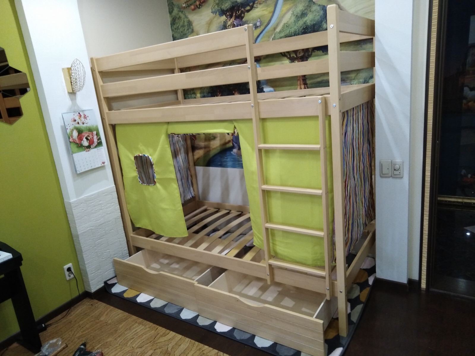 Так же для нижнего яруса предусмотрен съемный бортик, что исключает падение малыша во время сна. При необходимости его можно снять.