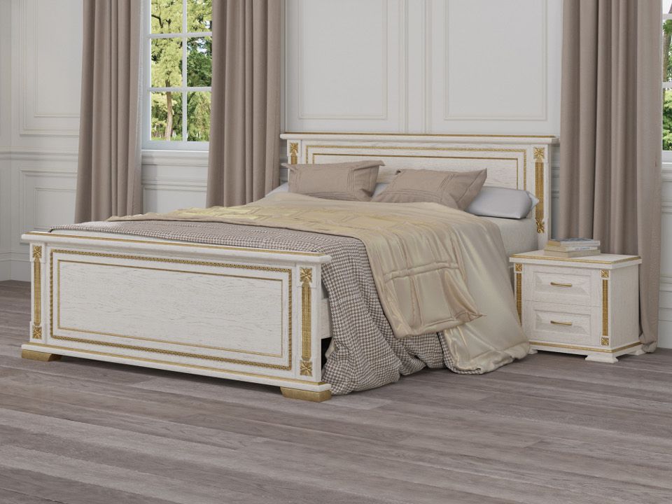 Данная модель кровати станет приятным приобретением для тех, кто ценит и любит прямые формы и резные узоры. Кровать Берта из дуба представляет собой царское ложе из натурального благородного дерева – дуба, выполненная в классическом стиле с красивым золоченым орнаментом в изножье и изголовье, которое прекрасно подчеркивает массив дуба. Благодаря чему, кровать прекрасно украсит и дополнит интерьер спальни.