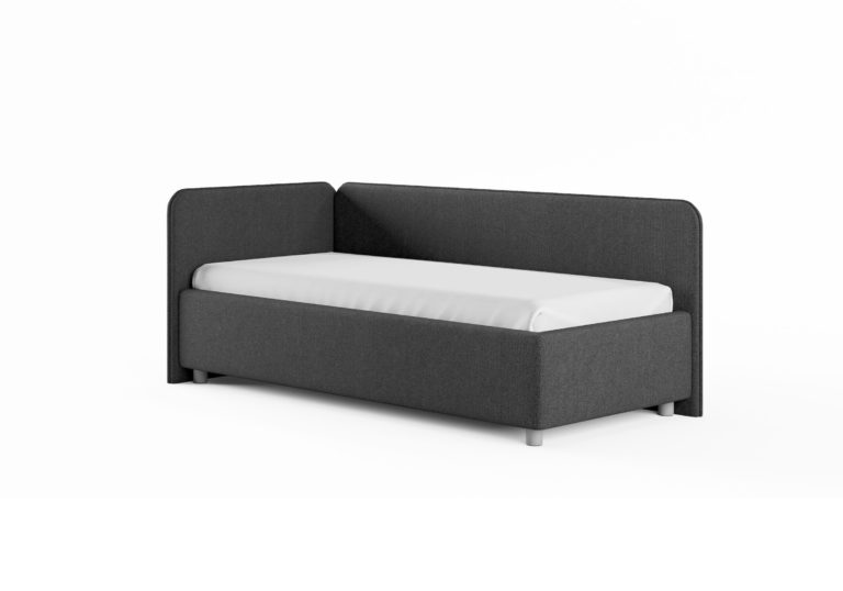 Односпальная кровать в современном стиле. Кровать-софа с одной боковой спинкой. Идеально подходит для квартир с небольшой площадью, детских и подростковых спален, гостевых комнат. Боковую спинку кровати можно изготовить на выбор на правую или левую сторону. Модель изготовлена из бруса березы и МДФ. В комплект кровати входит кроватное основание. Каркас основания выполнен из металла, а ламели — из берёзы. При необходимости, кровать можно укомплектовать подъемным механизмом с бельевым ящиком.