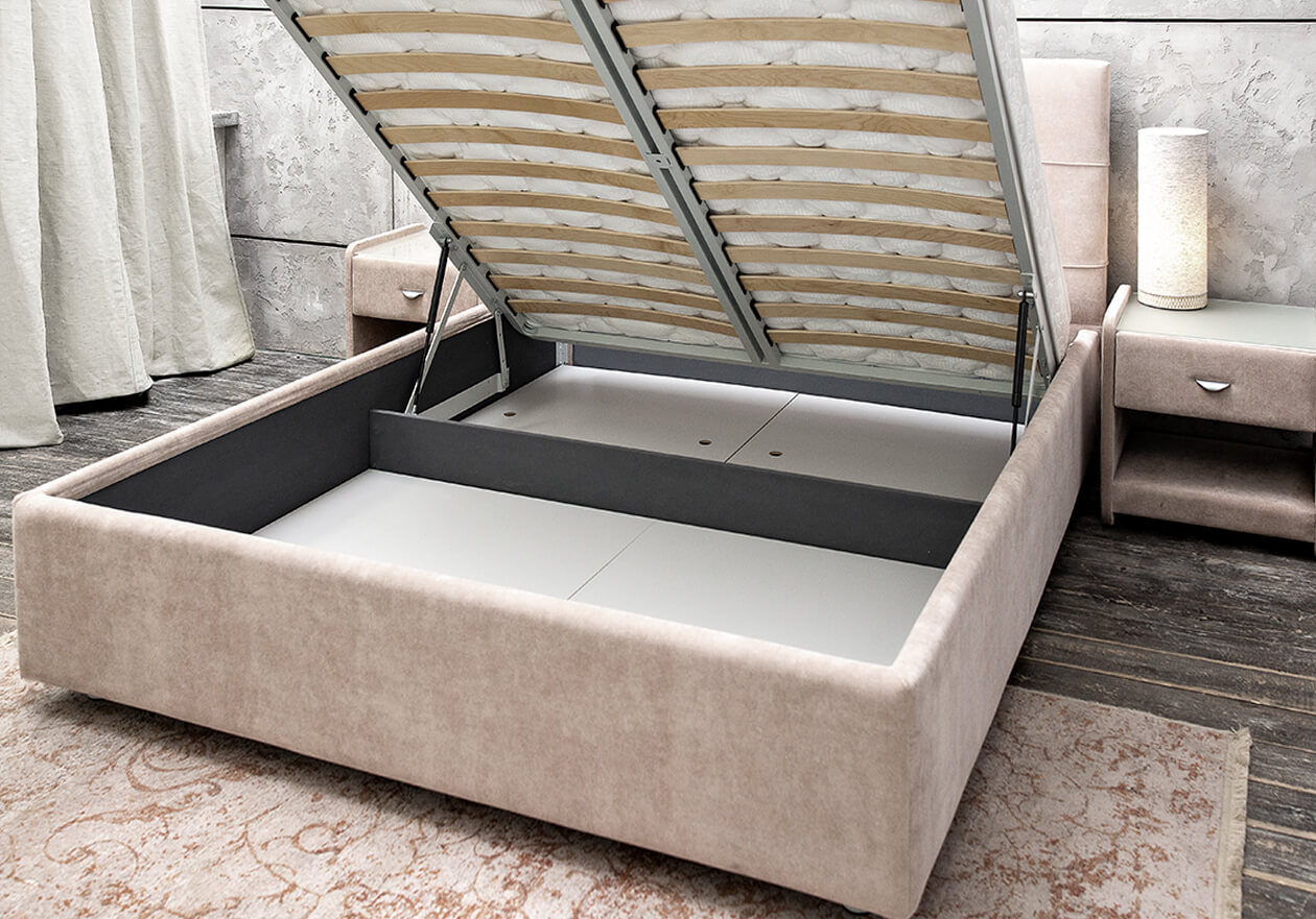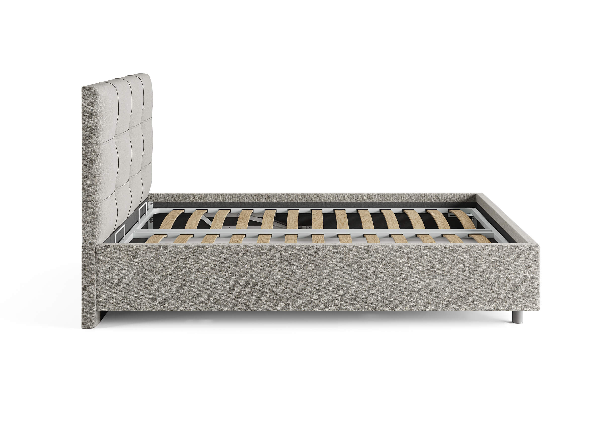 - В комплект кровати входит кроватное основание. Каркас основания выполнен из металла, ламели — из берёзы. При необходимости мы изготовим вам кровать с подъемным механизмом и бельевым ящиком.