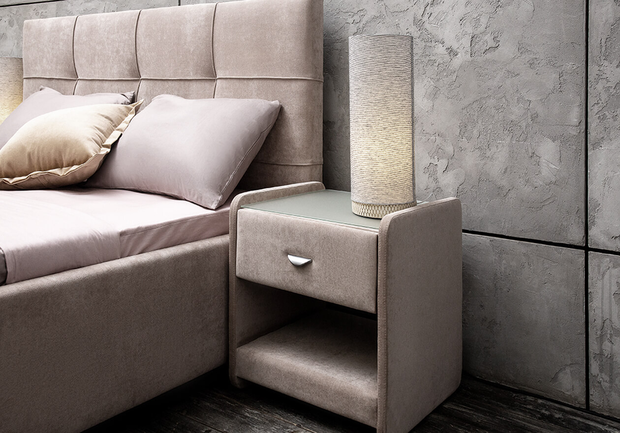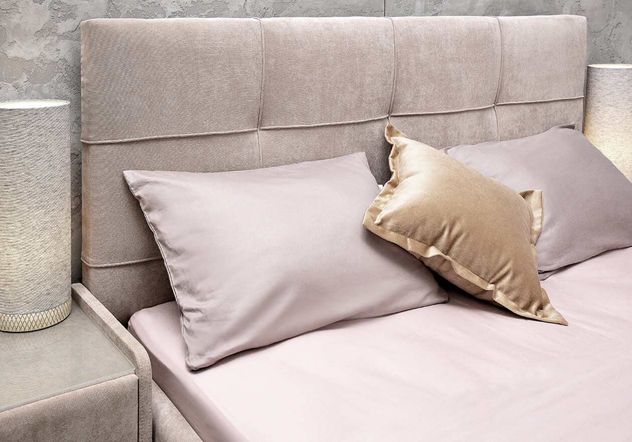 - Модель изготовлена из ДСП и бруса березы в изголовье. Обивка кровати имеет более 100 вариантов цветового исполнения: из эко-кожи, глазго, велюра и вельвета, микровелюра, шинила, энигмы. Обратная сторона изголовья обита спандбондом, но при желании, её можно выполнить из основного обивочного материала.