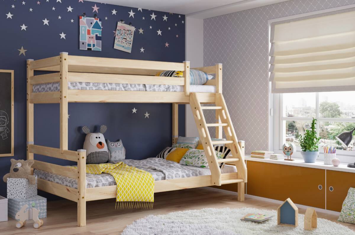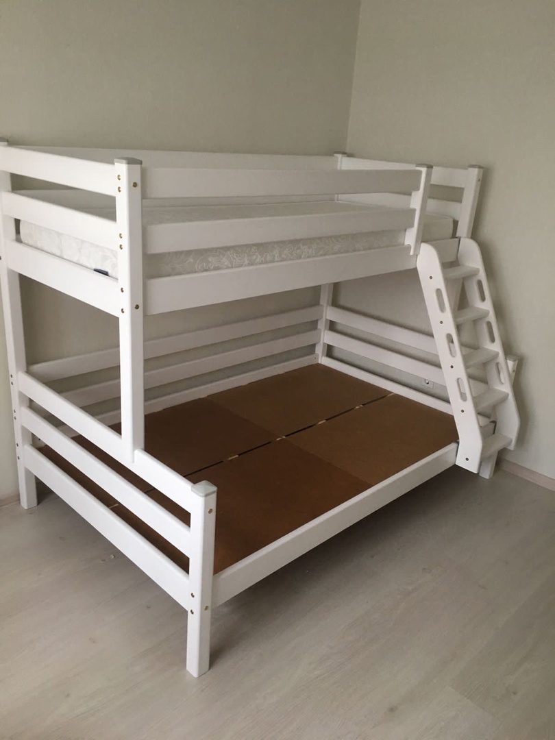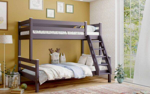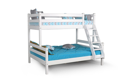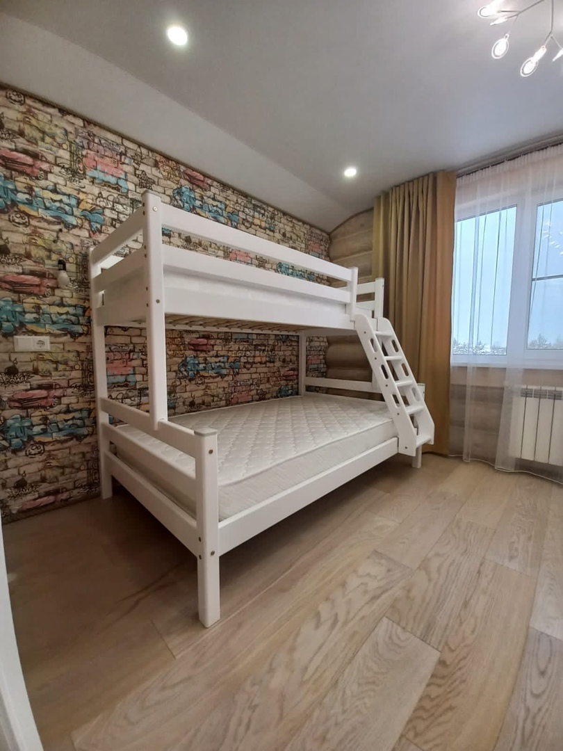 Комплектация детской кроватки Адель. В комплект входит каркас 2 кроватей, набор ламелей для основания верхнего яруса и деревянные усиленные рейки нижнего яруса, защита от падения по периметру, опоры и наклонная лестница. Каркас выполнен из сосны, а ламели из березы. Главным преимуществом кровати Адель является массив сосны. Эта древесина является долговечной, надежной и безопасной для здоровья ребенка.
