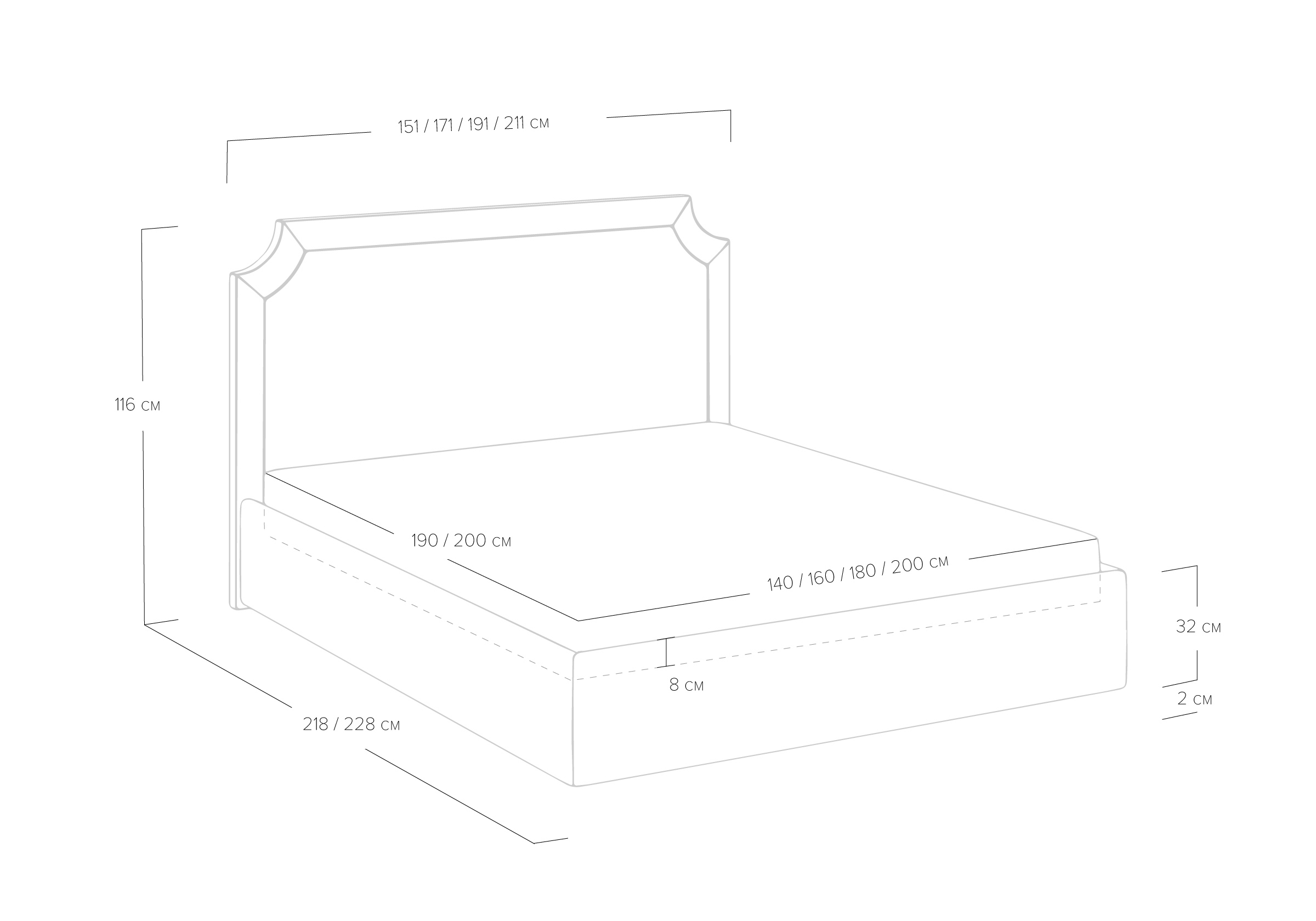 Кровать с высоким, элегантным изголовьем и декоративной рамкой. Такое решение придает кровати визуальную выразительность и делает ее центральным элементом спальни. Стоит обратить внимание на декоративный кант, который добавляет изысканности и завершенности облику. Кровать Eliot имеет минимальные опоры, царги опущены до пола. Также можно встроить зону хранения — это идеальное решение для экономии пространства в спальне.
