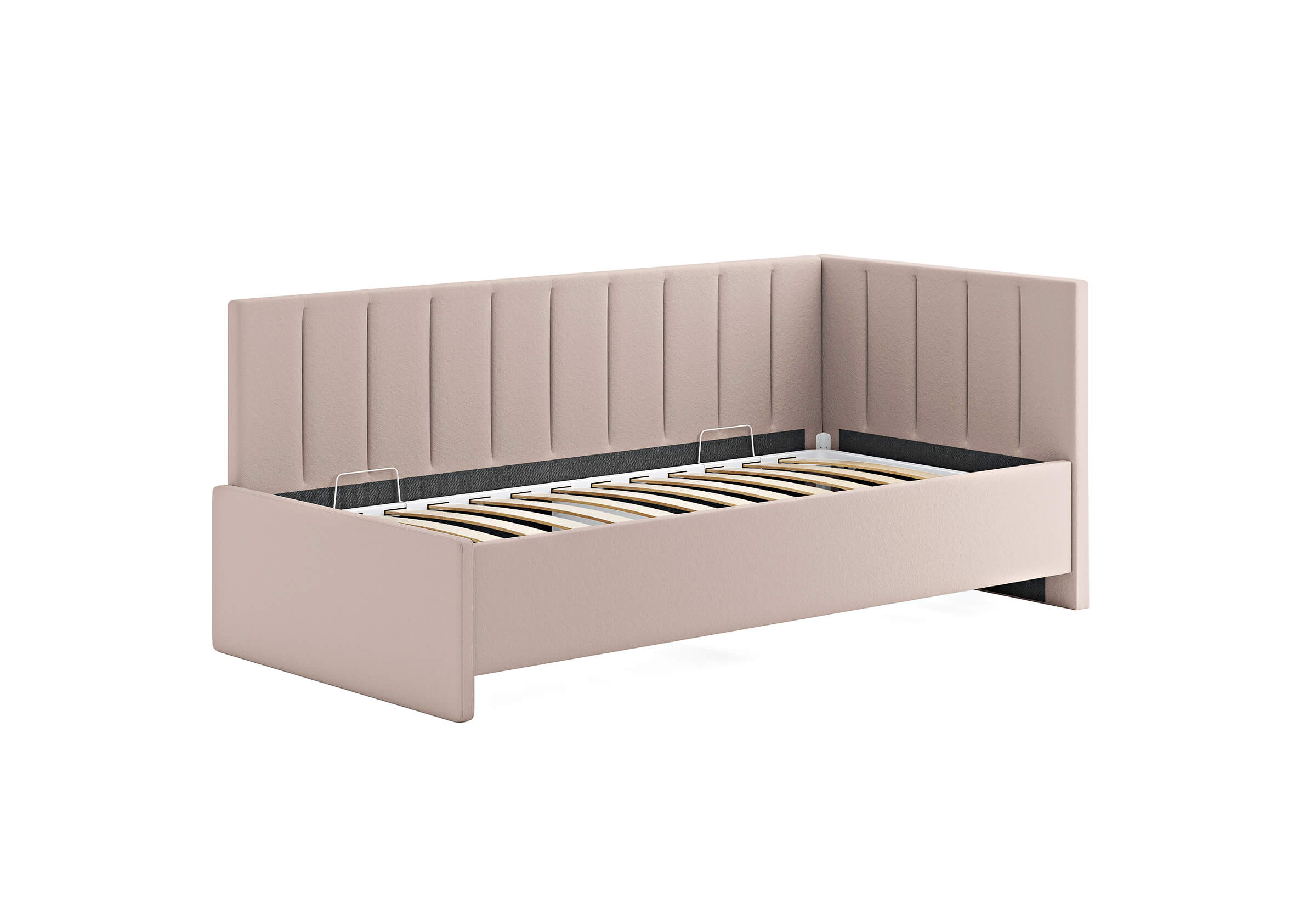 Односпальная кровать с боковой спинкой для современных интерьеров. Модель занимает минимальное пространство в спальне. Подходит для квартир с небольшой площадью, детских и подростковых спален, гостевых комнат. Мягкие элементы спинки, создают атмосферу уюта, а благодаря размерному ряду, защитному бортику и множеству цветов и фактур кровать подойдет как малышам, так и подросткам. Защитный бортик приобретается дополнительно, его легко установить на левую или правую сторону кровати. Боковую спинку кровати можно установить при сборке на правую или левую сторону, что делает модель универсальной. Модель укомплектована ортопедическим основанием, при желании в нее можно установить подъемный механизм с бельевым коробом. Расстояние от пола до царг способствует легкой уборке под кроватью, в том числе роботом – пылесосом.