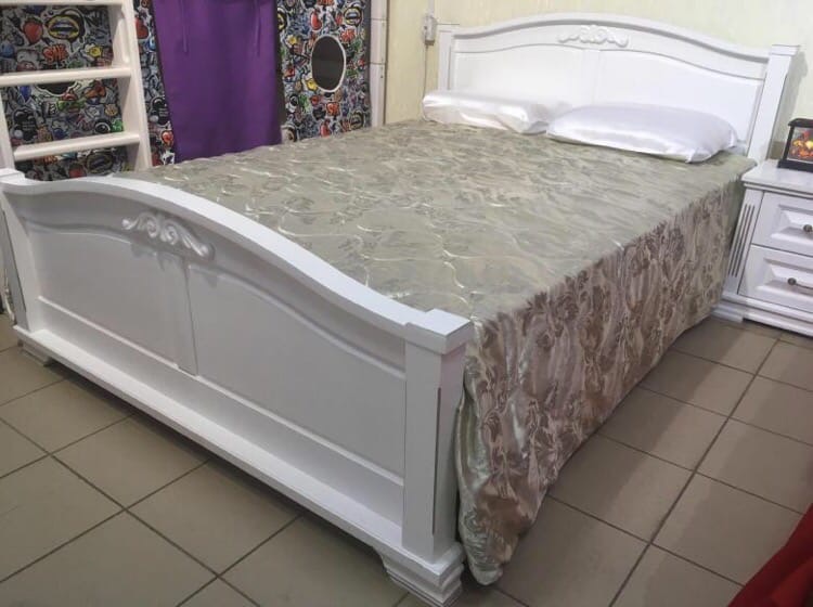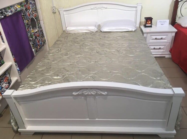 Современная кровать с декоративным изголовьем, украшенным резкой в классическом стиле.