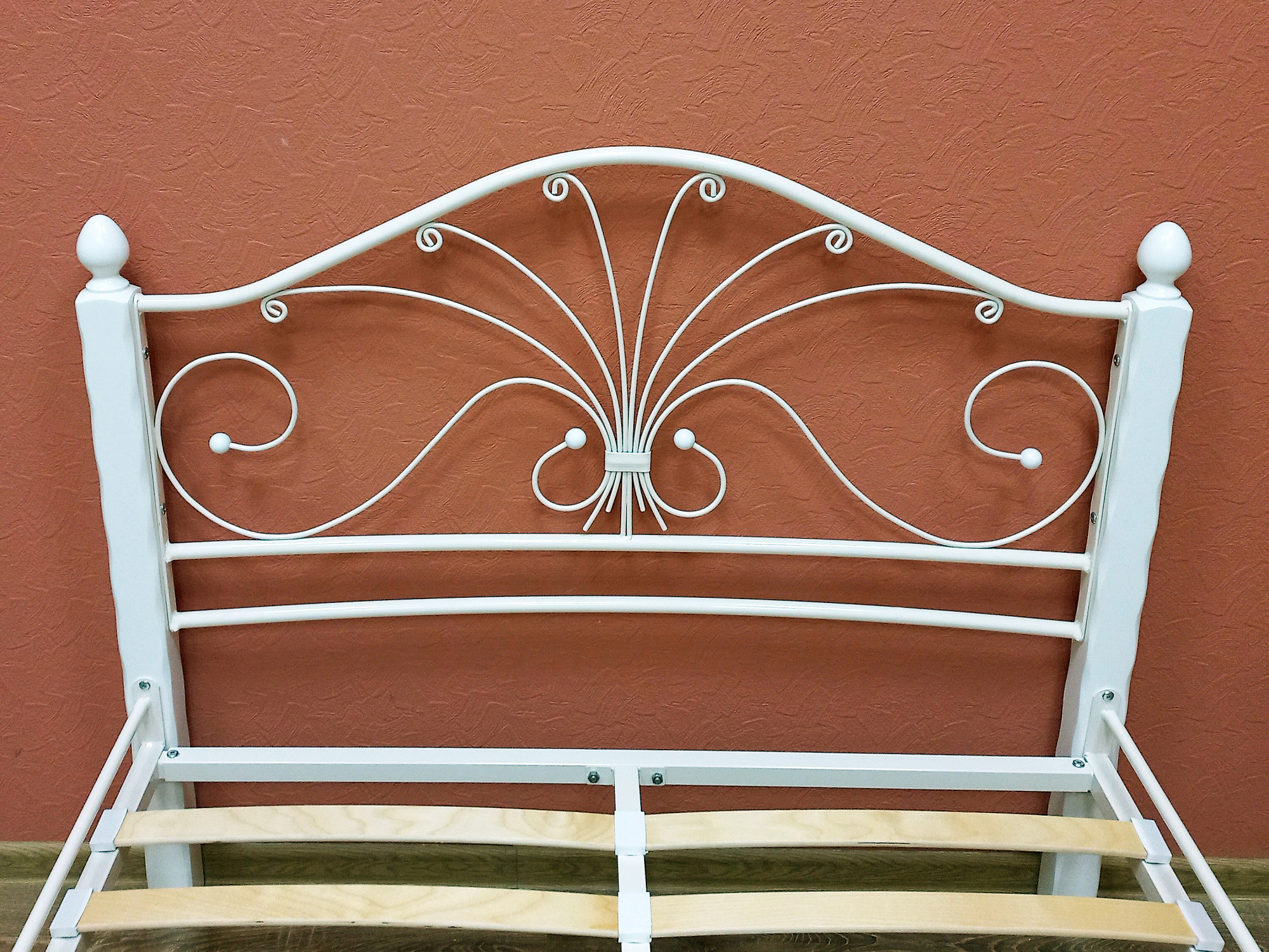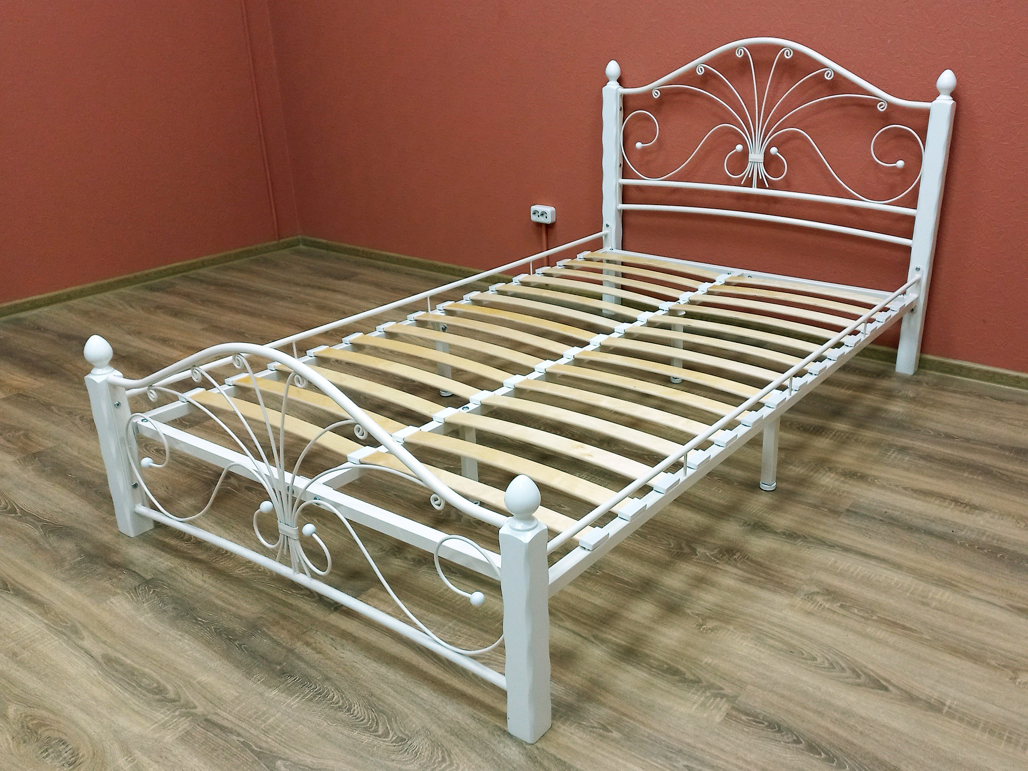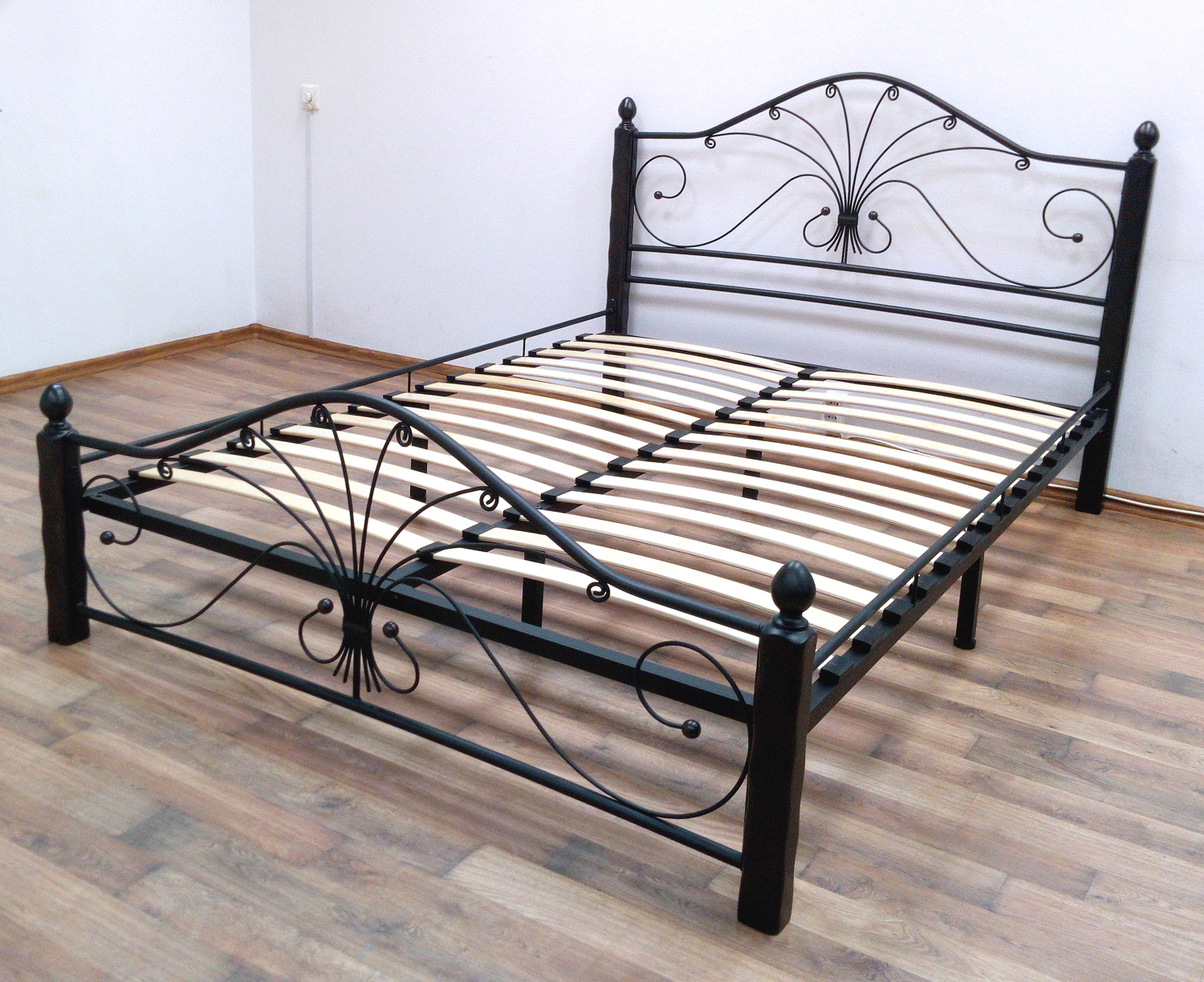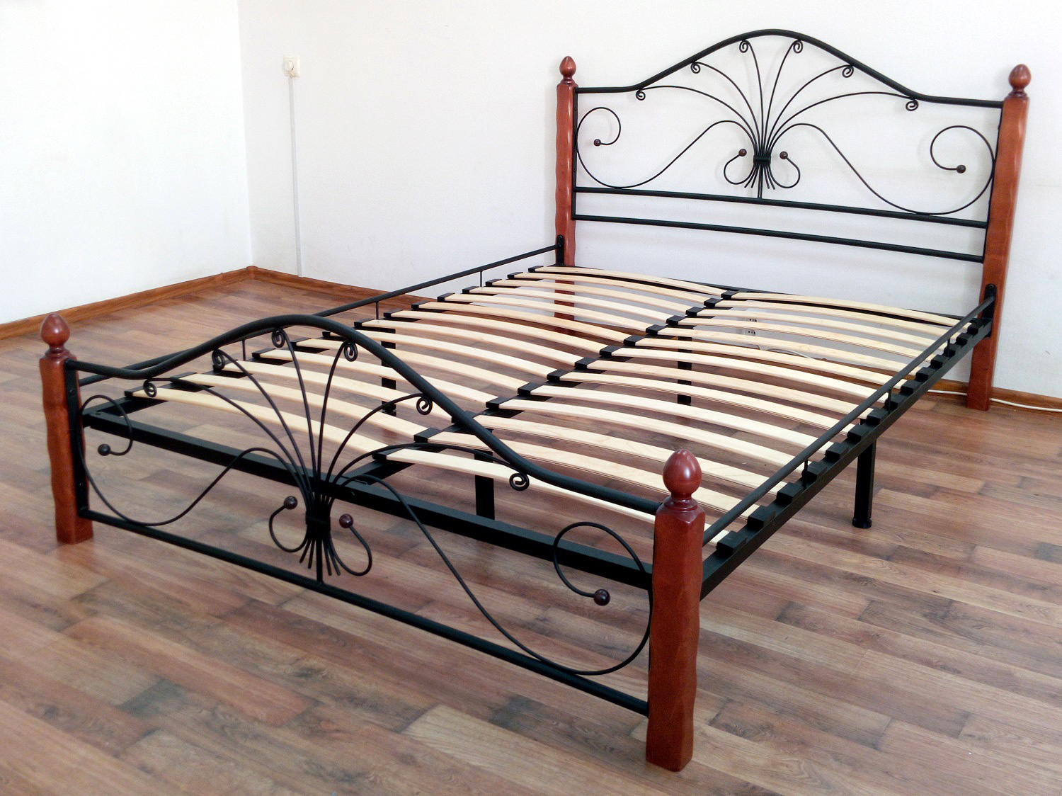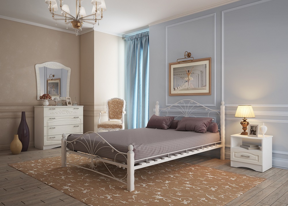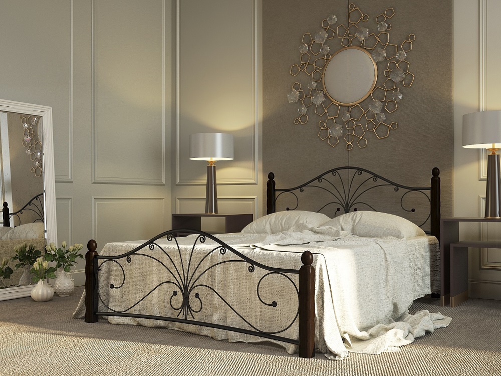 Кровать «Фортуна 1» с элементами ковки. Ножки кровати изготовлены из массива березы, спинка и изножье декорированы фигурными металлическими элементами. Металлические кровати отличаются надежностью. Комплектуется основанием из березовых ламелей. Кровать будет превосходно смотреться не только в интерьере городской квартиры, но также в спальне загородного дома или дачи.