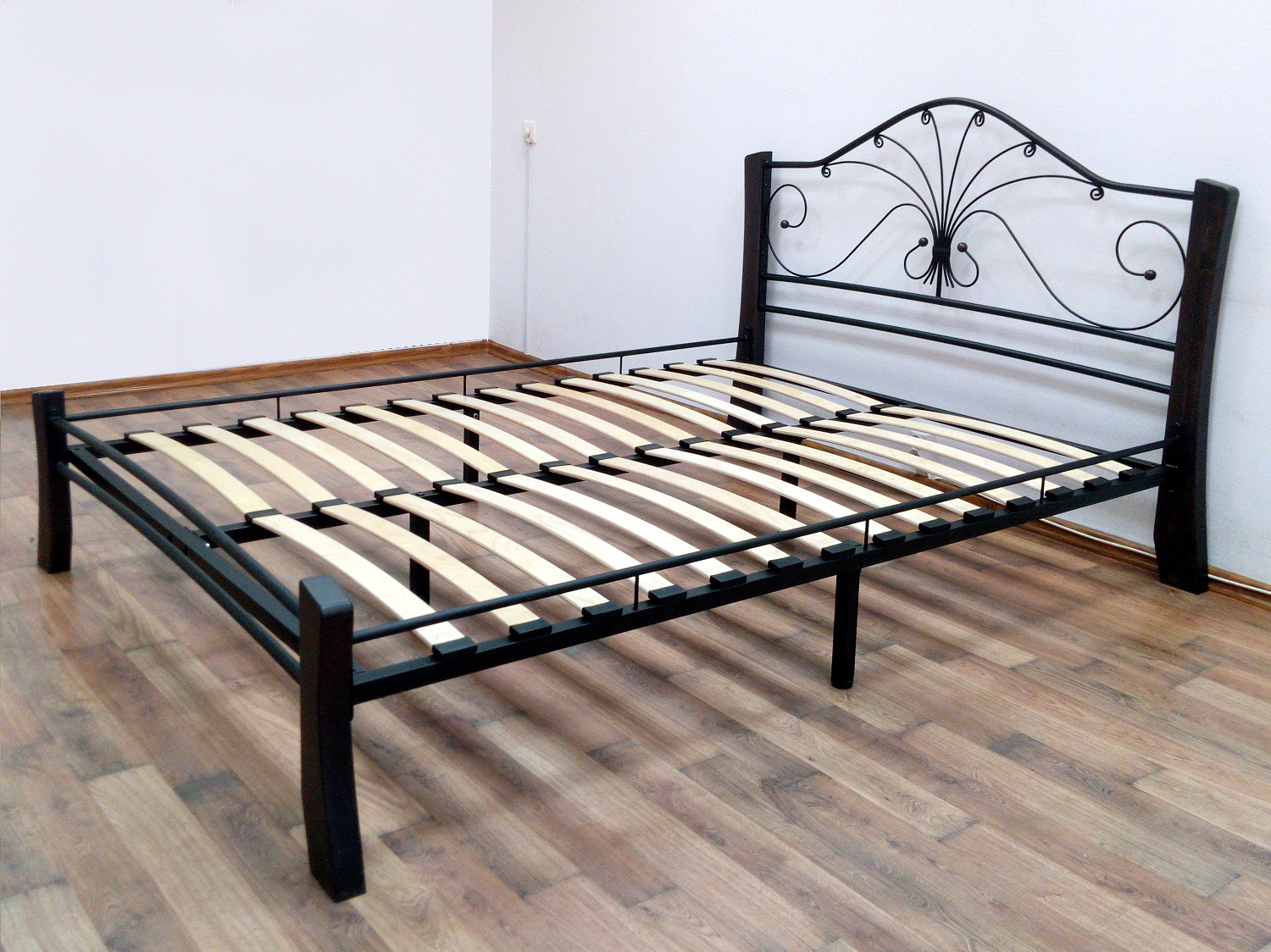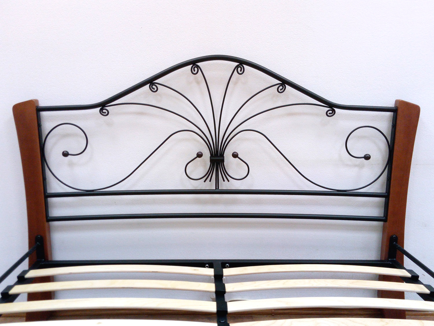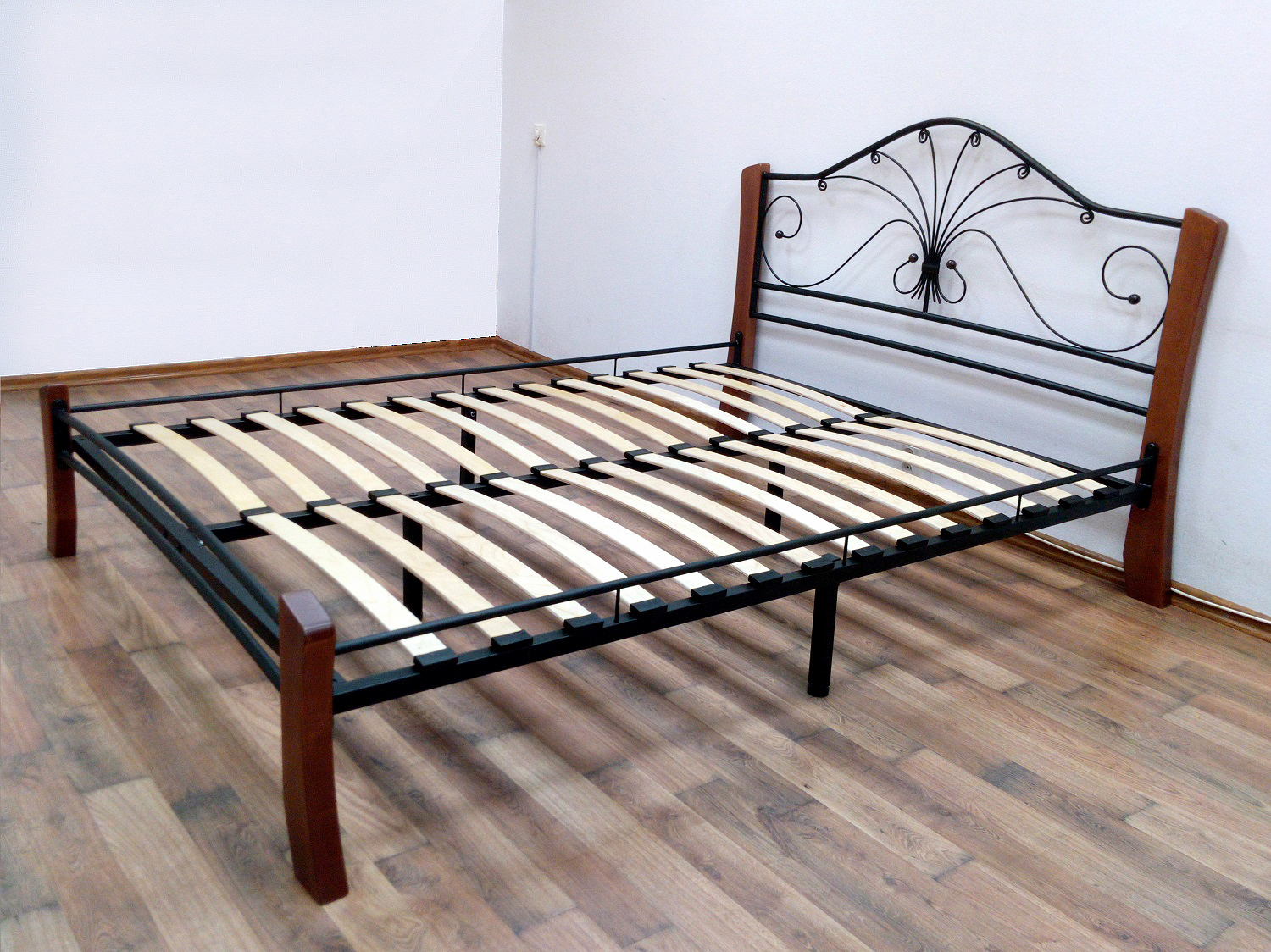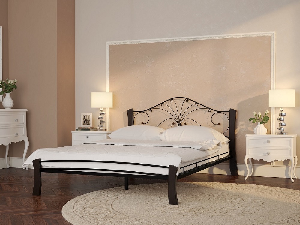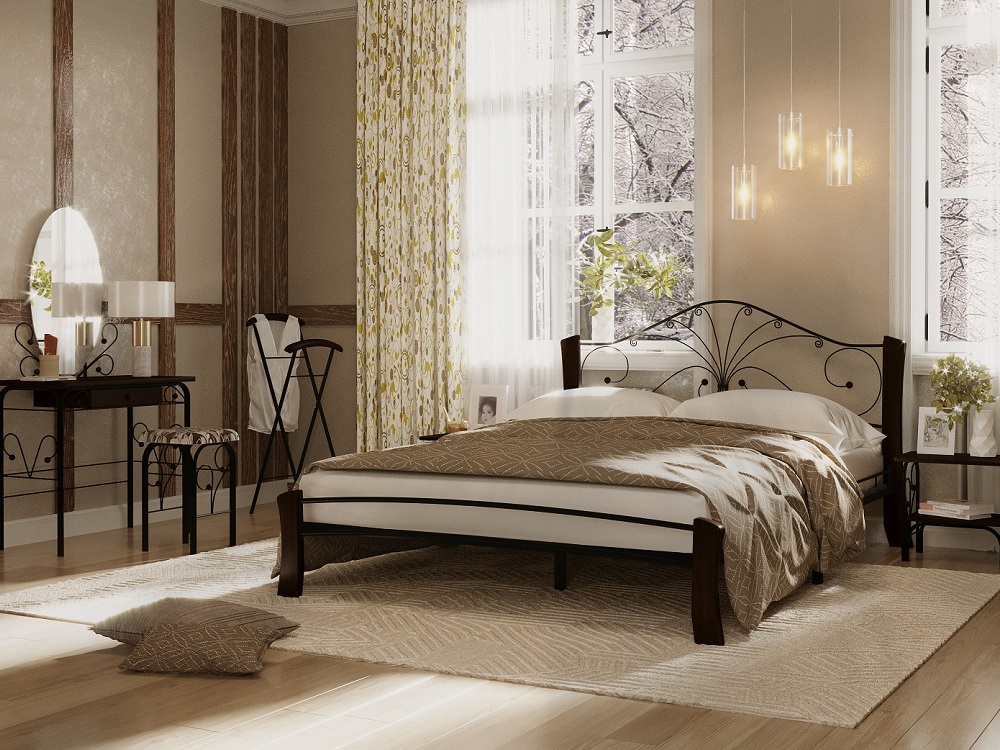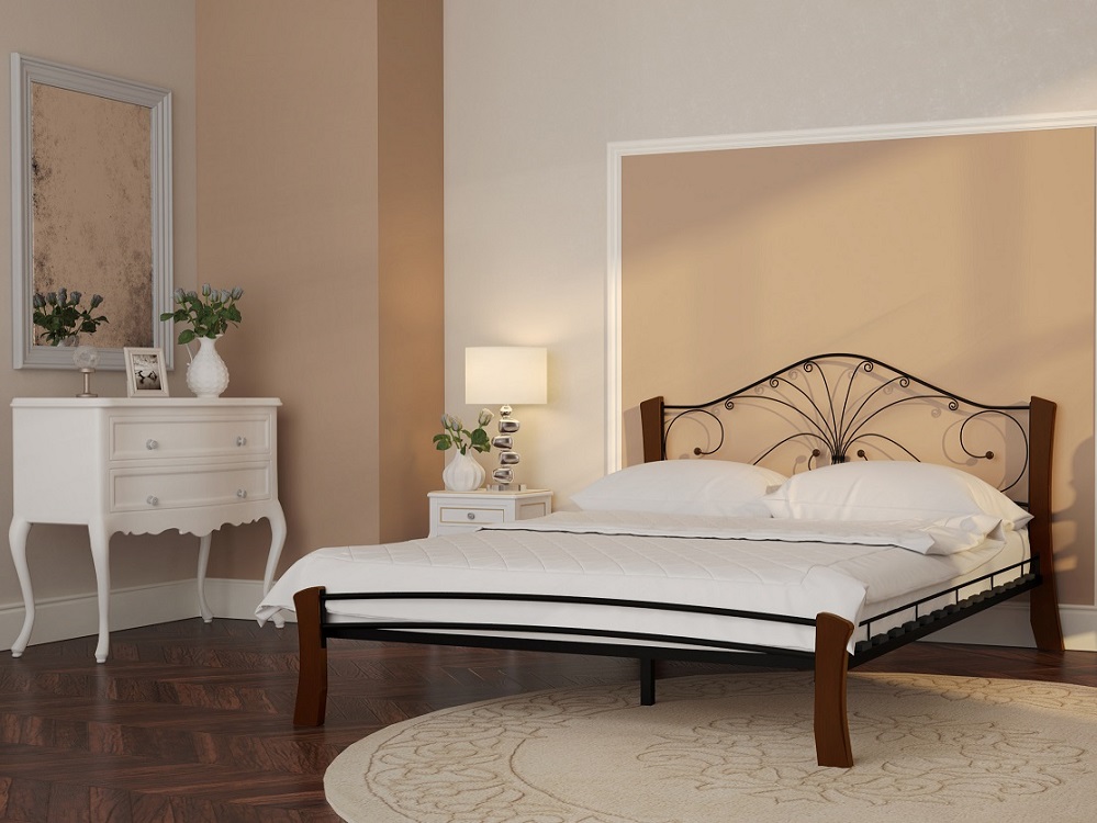 Кровать «Фортуна 4 лайт» с элементами ковки. Ножки кровати изготовлены из массива березы, спинка и изножье декорированы фигурными металлическими элементами. Металлические кровати отличаются надежностью. Комплектуется основанием из березовых ламелей. Кровать будет превосходно смотреться не только в интерьере городской квартиры, но также в спальне загородного дома или дачи.