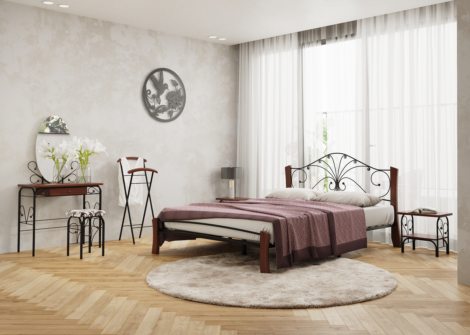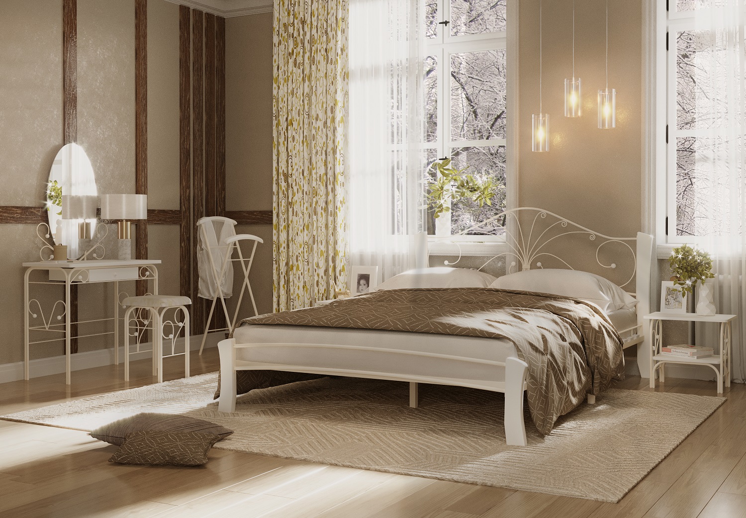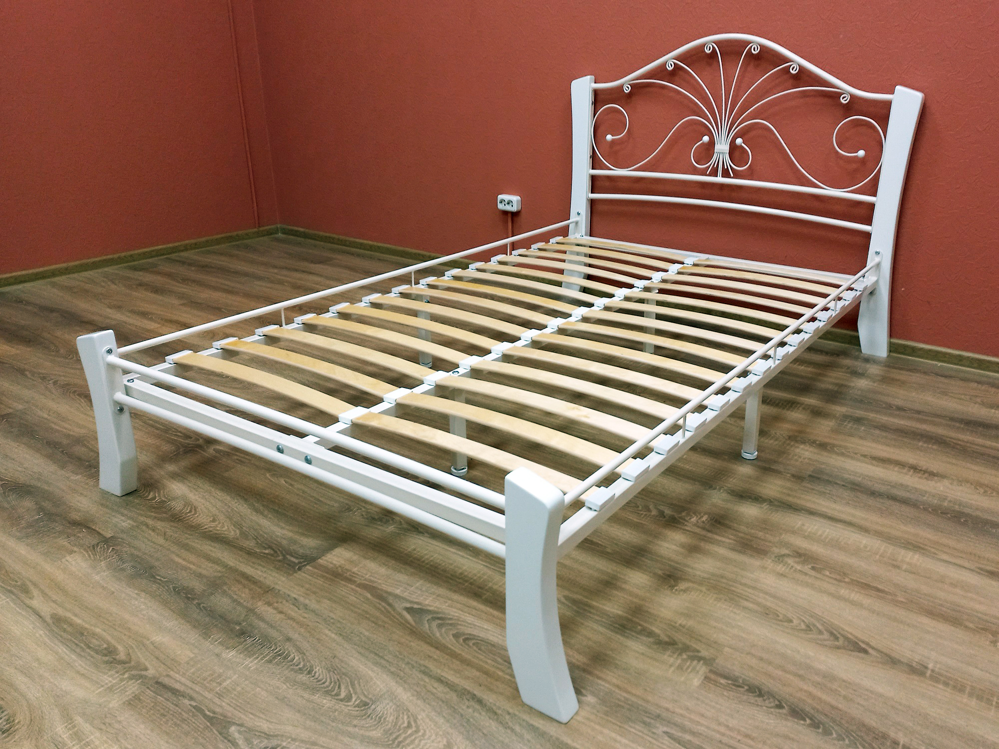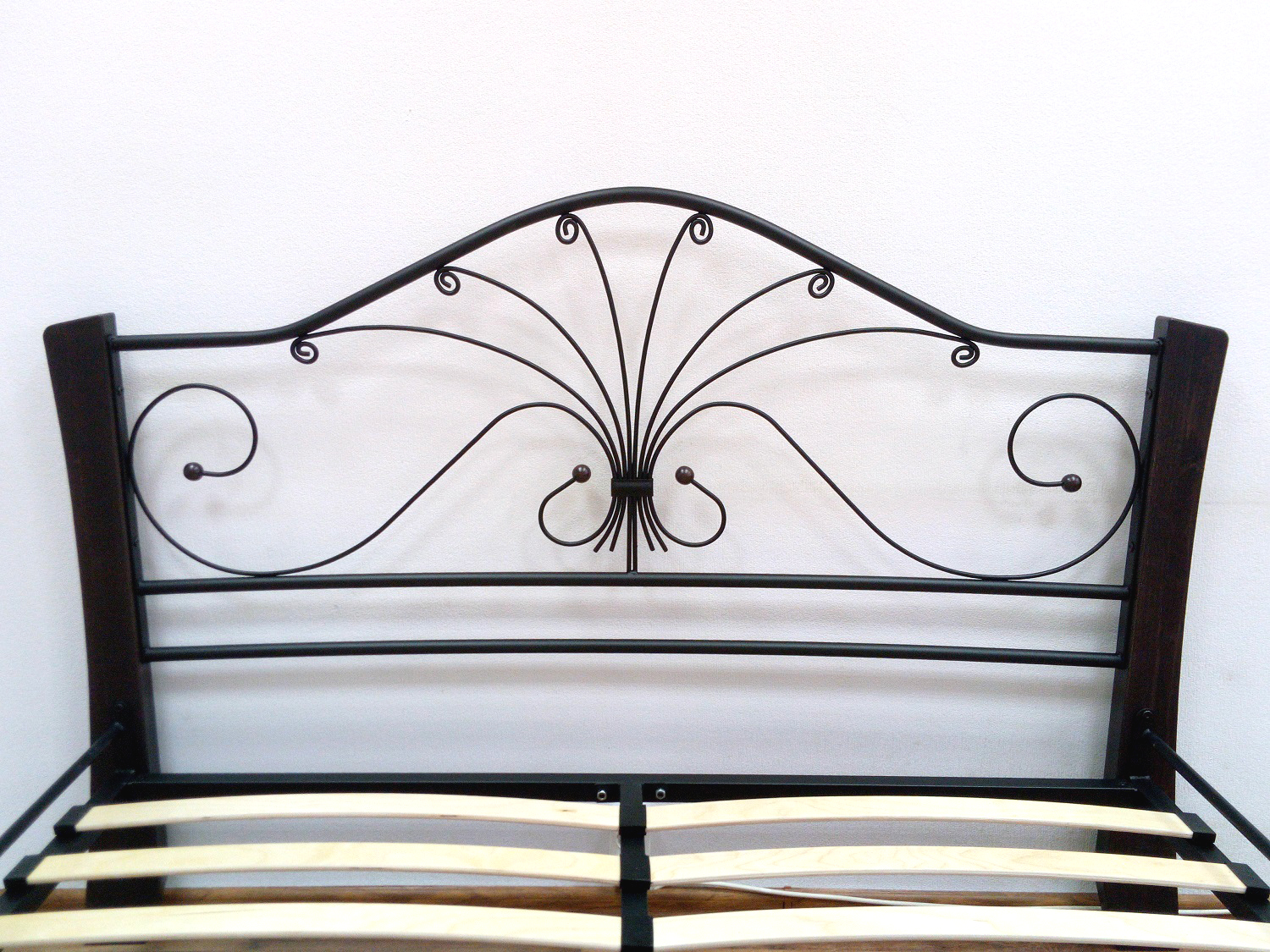 Кровать «Фортуна 4 лайт» с элементами ковки. Ножки кровати изготовлены из массива березы, спинка и изножье декорированы фигурными металлическими элементами. Металлические кровати отличаются надежностью. Комплектуется основанием из березовых ламелей. Кровать будет превосходно смотреться не только в интерьере городской квартиры, но также в спальне загородного дома или дачи.