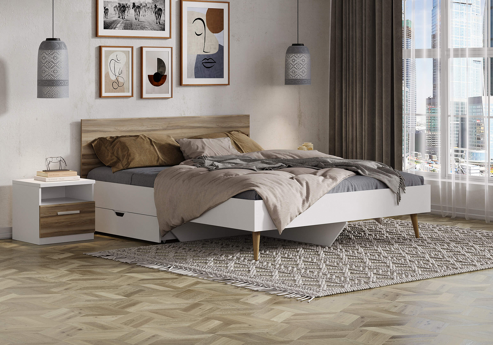 Кровать Ines оригинальное решение для спальни в скандинавском стиле.