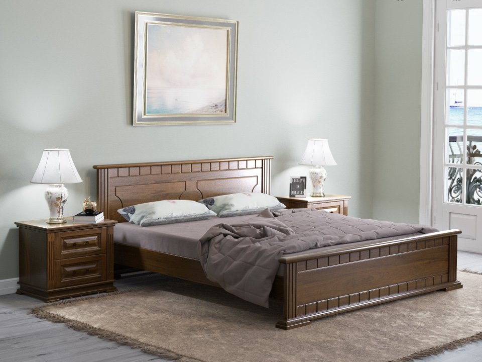 Перед великолепием стиля и комфортом представленной модели не устоит никто! На головной и ножной спинках кровати выполнена утонченная строгая резьба, что смотрится очень элегантно и в то же время не ляписто. Ножки кровати – это продолжения спинок, что очень удобно и практично, с точки зрения устойчивости изделия. Кровать Милена изготовлена из массива дерева, что говорит само за себя – здоровый и крепкий сон Вам гарантирован! При желании, изделие можно укомплектовать ящиками (на колесиках или на направляющих) и подъемным механизмом.