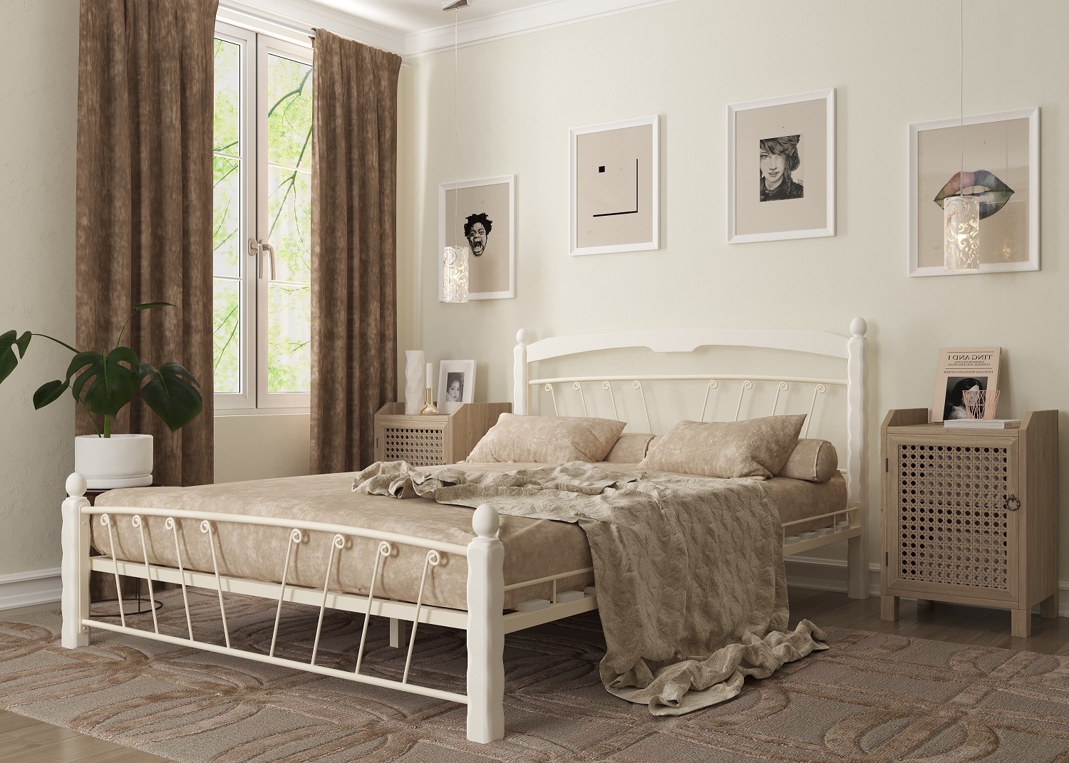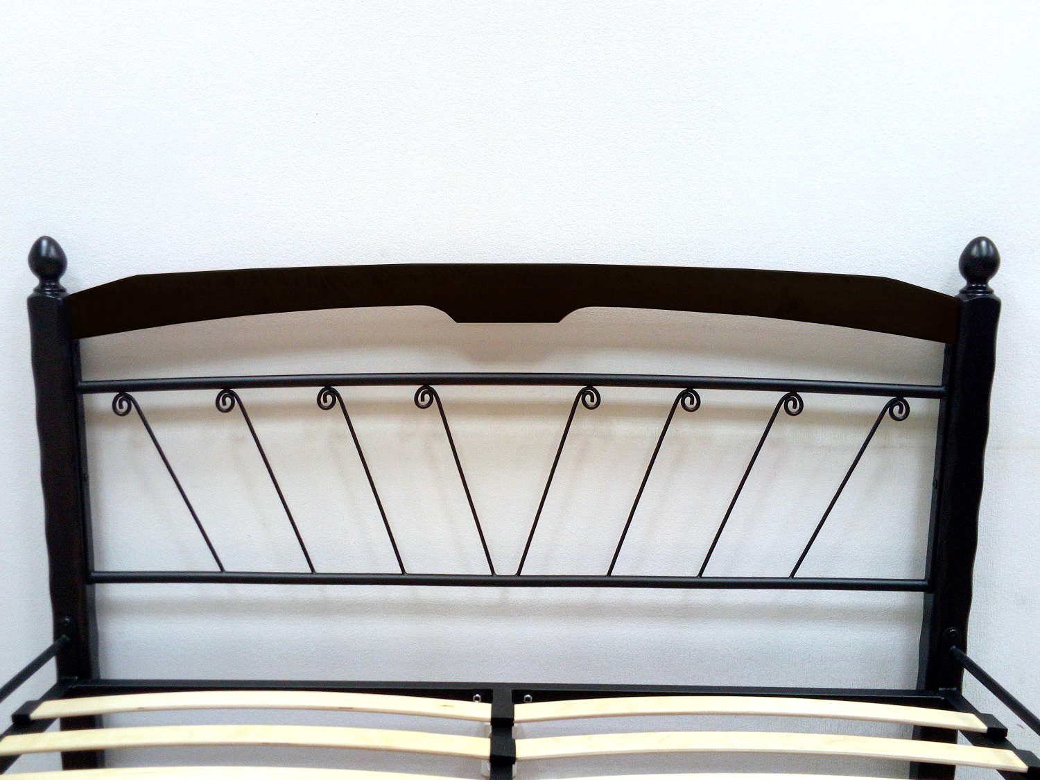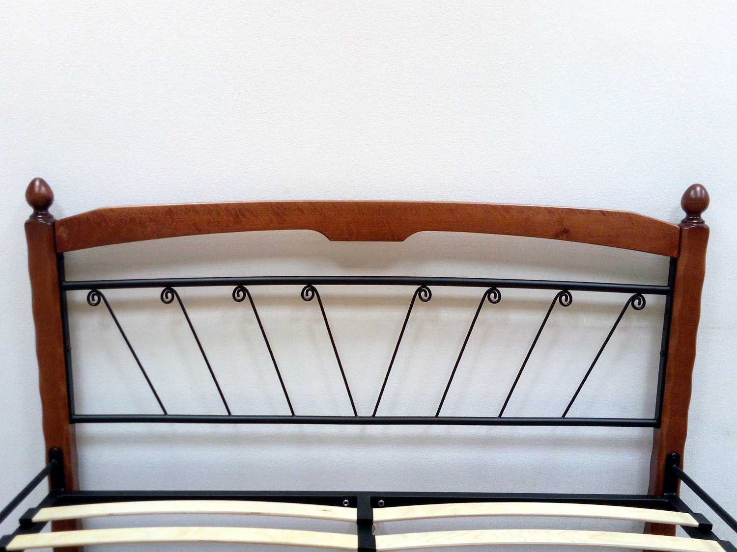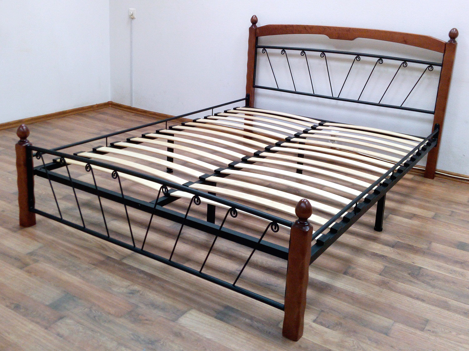 Кровать «Муза 1» с элементами ковки. Ножки кровати изготовлены из массива березы, спинка и изножье декорированы фигурными металлическими элементами. Металлические кровати отличаются надежностью. Комплектуется основанием из березовых ламелей. Кровать будет превосходно смотреться не только в интерьере городской квартиры, но также в спальне загородного дома или дачи.
