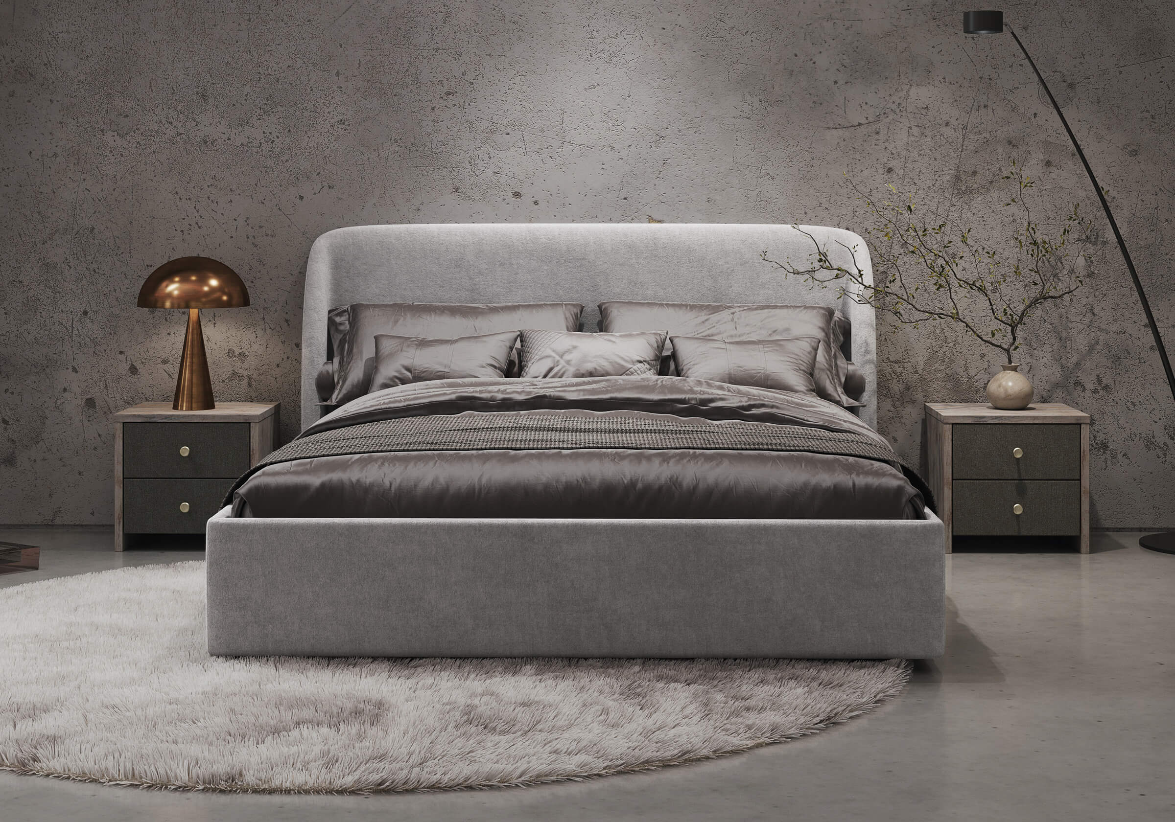- Кровать Nicole удачно подойдет для интерьеров в современном стиле, стиле минимализм и модерн. Дизайнерское закругленное изголовье, широкие царги и минимальный просвет от пола, делают спальное место особенно уютным. Задняя часть изголовья кровати выполнена в основной ткани, благодаря этому ее можно установить в центре комнаты. Кант на изголовье подчеркивает его выразительность. Модель укомплектована ортопедическим основанием, при желании в нее можно установить подъемный механизм с бельевым коробом.