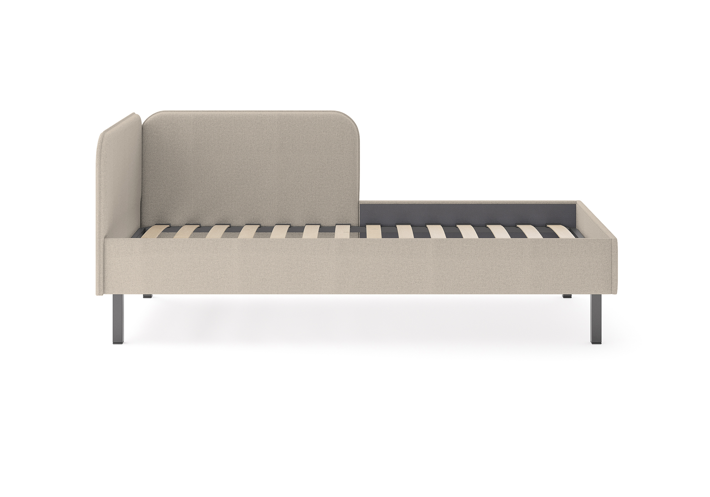 - Лаконичная кровать Julia подойдет для спален в скандинавском стиле и стиле минимализм. Мягкое изголовье в рогожке популярных цветов, закругленные углы, декоративный кант, узкие царги делают кровать универсальной для большинства современных интерьеров. Угловое изголовье создает уютную атмосферу. Боковая спинка составляет половину царги, устанавливается на выбор с правой, или с левой стороны кровати. Благодаря двойному изголовью кровать можно разместить в любом месте комнаты. Увеличенное расстояние до царг способствует легкой уборке под кроватью роботом – пылесосом. Модель может комплектоваться только неразборным ортопедическим основанием с ламелями. Основание выполняет роль металлического каркаса кровати, изголовье и царги надежно крепятся между собой, обеспечивая прочность и устойчивость.