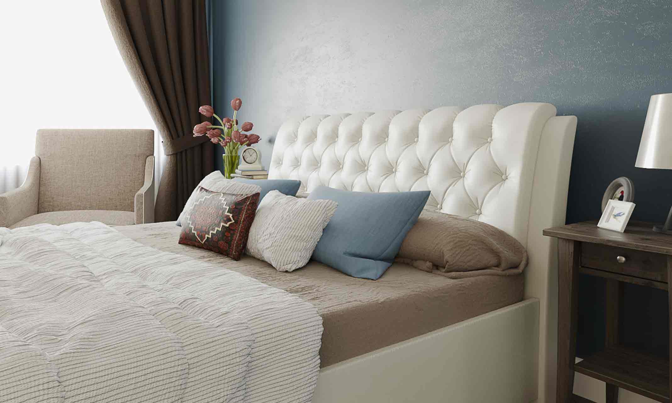 - Модель изготовлена из ДСП и бруса березы в изголовье. Обивка кровати имеет более 60 вариантов цветового исполнения: из эко-кожи, глазго, велюра и вельвета, микровелюра, шинила, энигмы. Обратная сторона изголовья обита спандбондом, но при желании, её можно выполнить из основного обивочного материала.