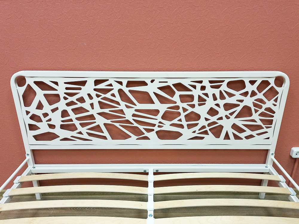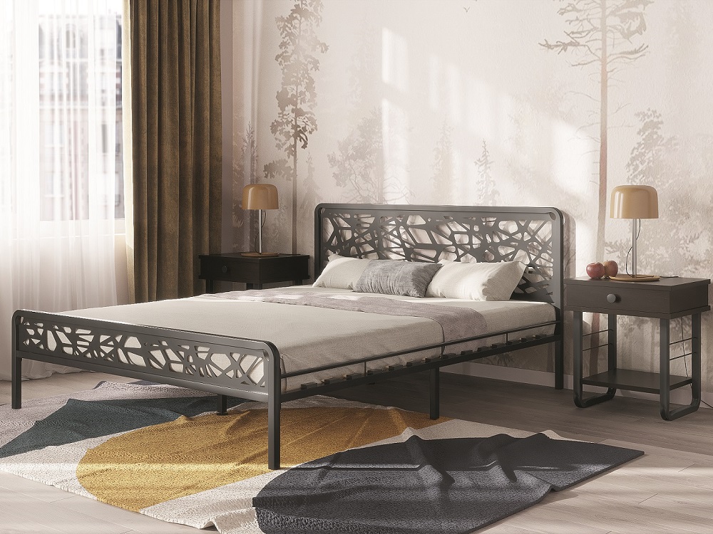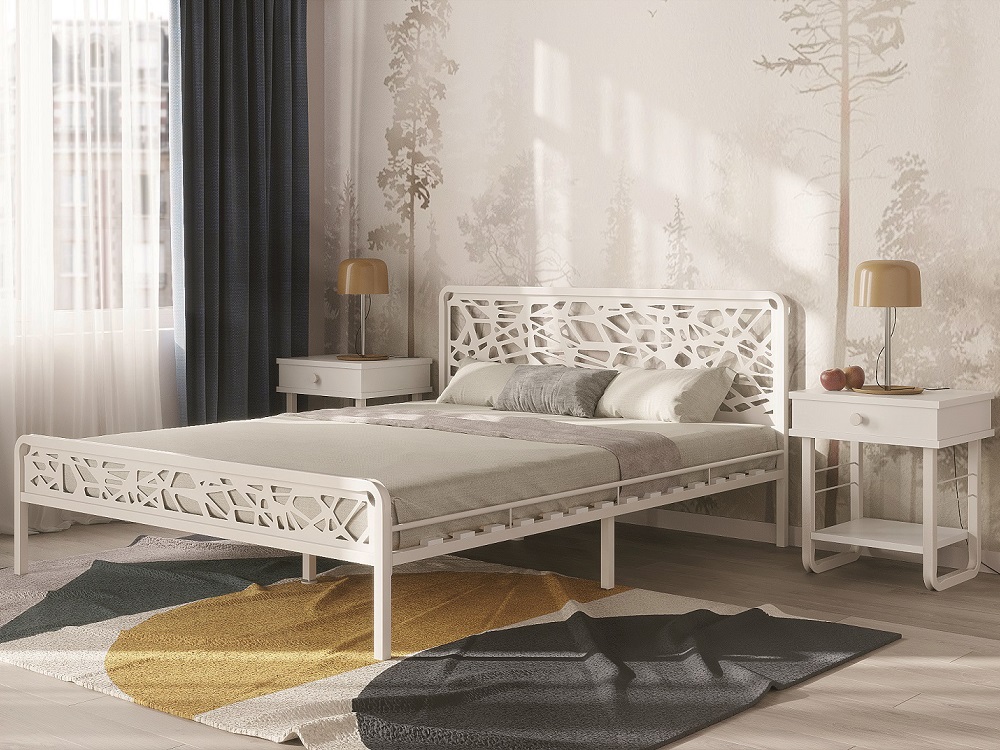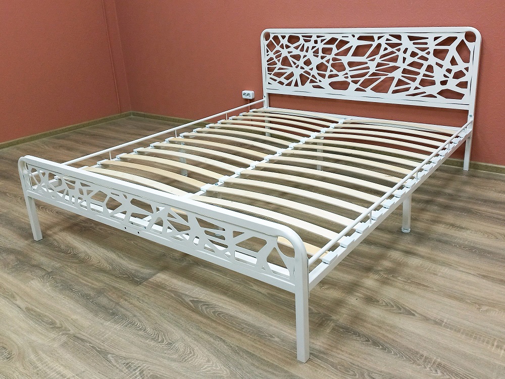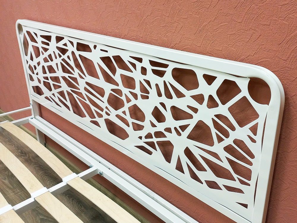 Изящная кровать с металлической фигурной решеткой и фигурным изголовьем. Благодаря своему прочному материалу прослужит вам долгие годы.