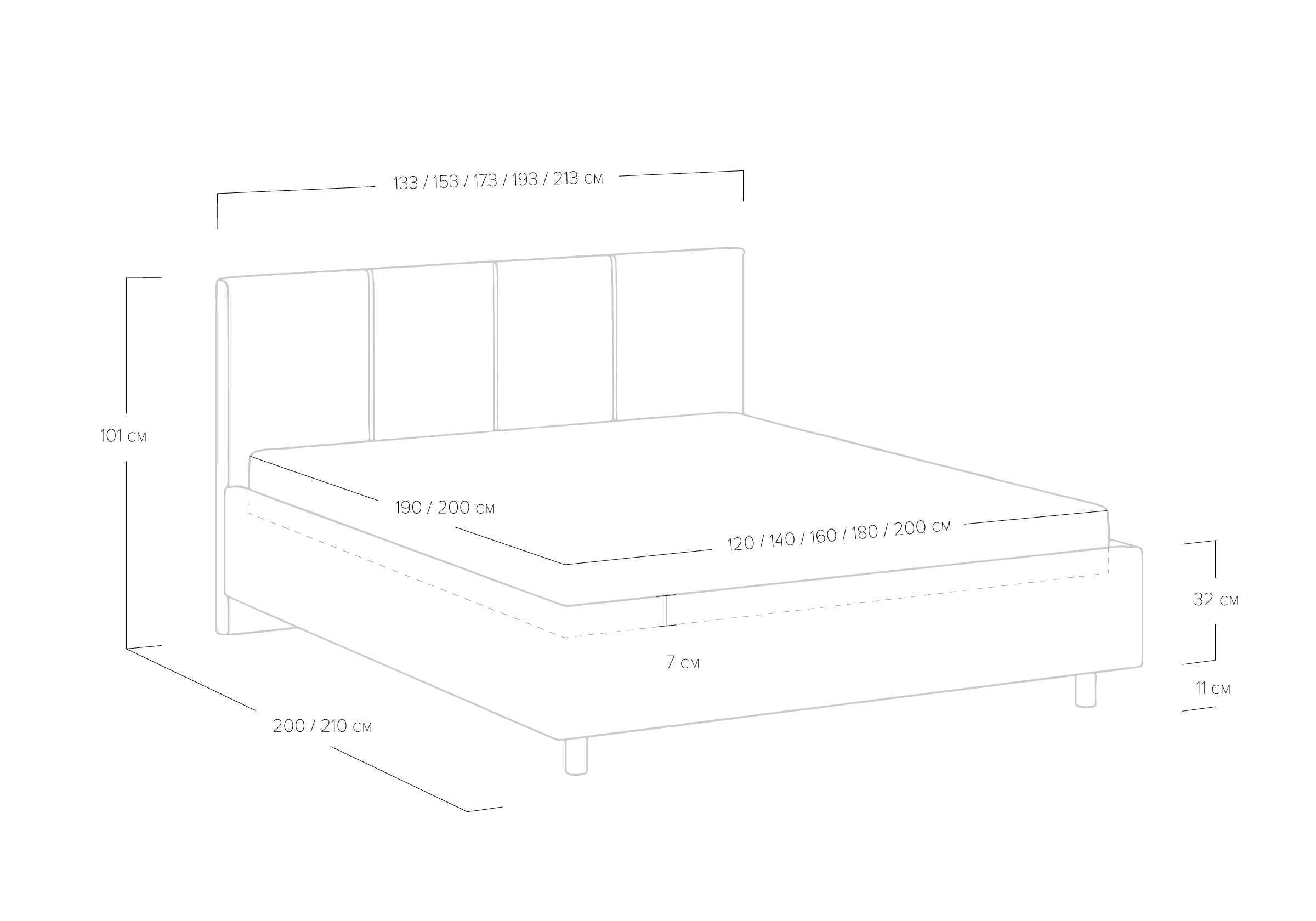 Данная модель может быть изготовлена с длиной спального места 210 см и 220 см. Доплата составляет 20%. Для оформления заказа свяжитесь с менеджером!