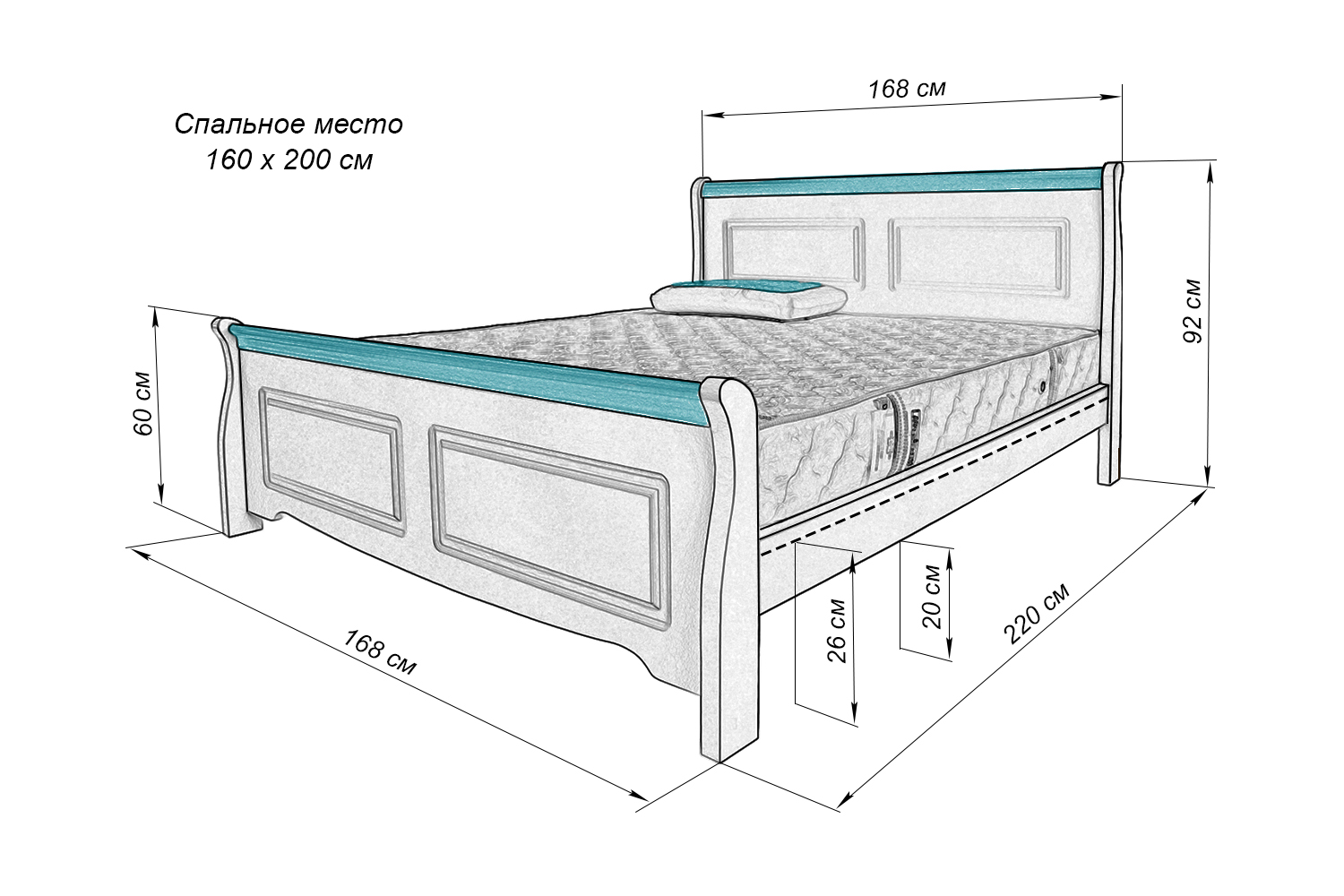 | Высота изножья, см | 60 |