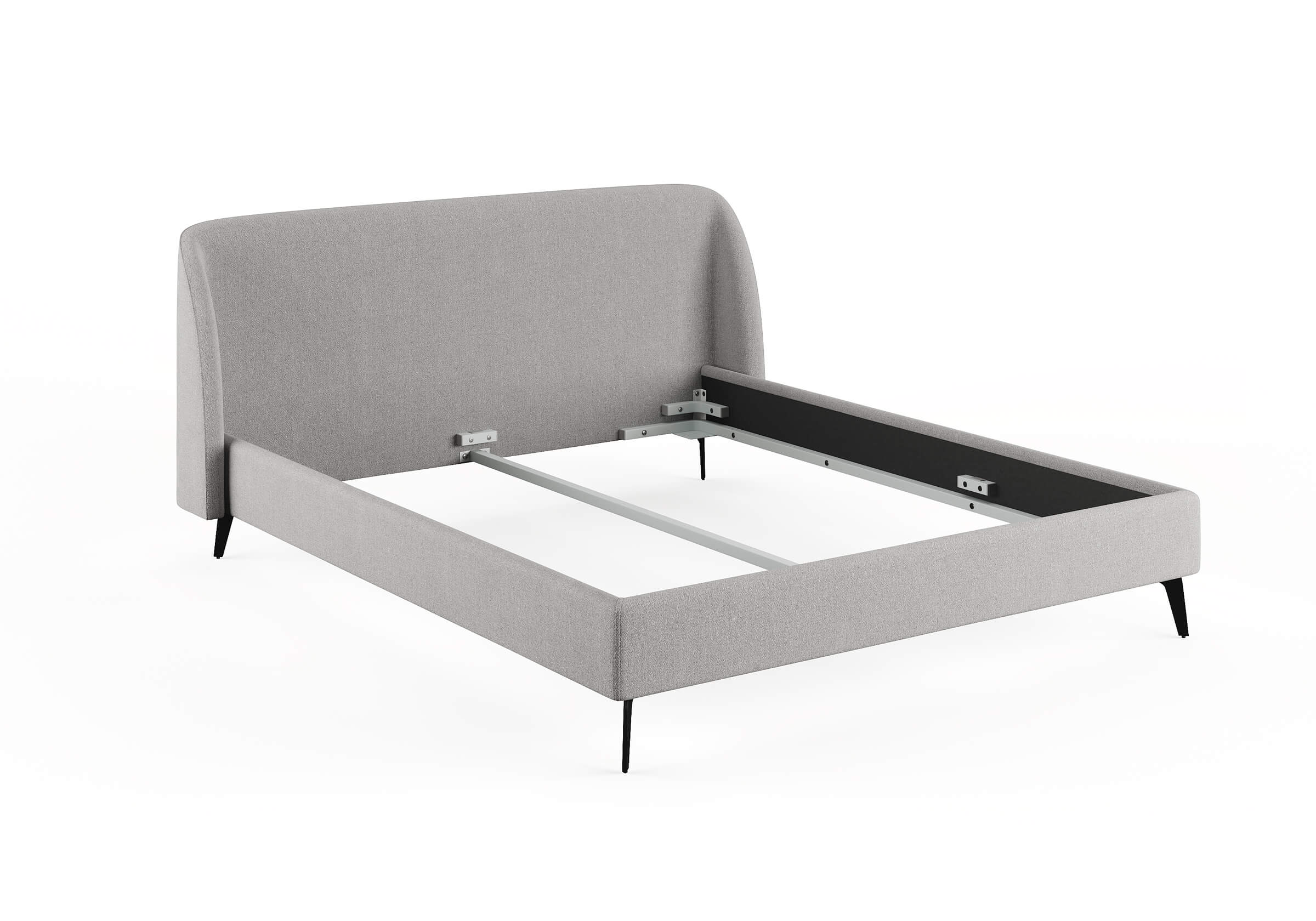 - Кровать с закругленным изголовьем делает спальное место особенно уютным. Ее дизайн удачно подойдет для интерьеров в современном стиле, стиле минимализм и стиле mid-century модерн. Спинка кровати выполнена в основной ткани, благодаря этому ее можно установить в центре комнаты. Узкие царги и стильные металлические ножки делают кровать легкой и лаконичной. Кант на изголовье выступает в качестве декора, подчеркивает ее выразительность. Увеличенная прочность кровати достигается за счет металлического каркаса по периметру. Расстояние от пола до царг способствует легкой уборке под кроватью, в том числе роботом – пылесосом.