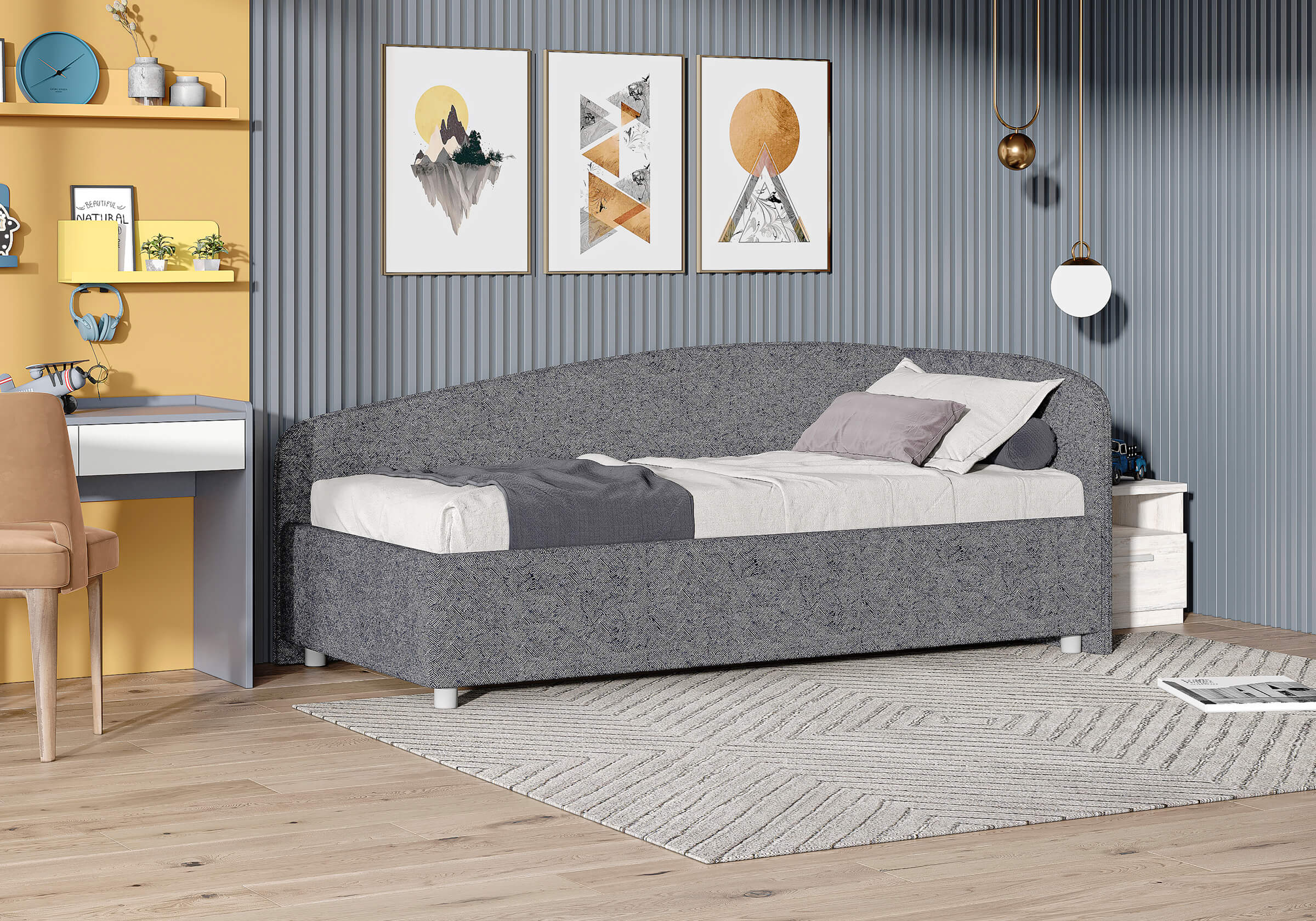 • Стильная интерьерная кровать без спинки. Модель изготовлена из ДСП. Преимуществом кровати являются съемные чехлы царг, что позволяет легко ухаживать за обивкой или менять цвет кровати в зависимости от смены интерьера. При необходимости кровать может быть укомплектована разборным или неразборным металлическим основанием с ламелями, подъемным механизмом с бельевым ящиком, трансформируемым основанием Aquarius.