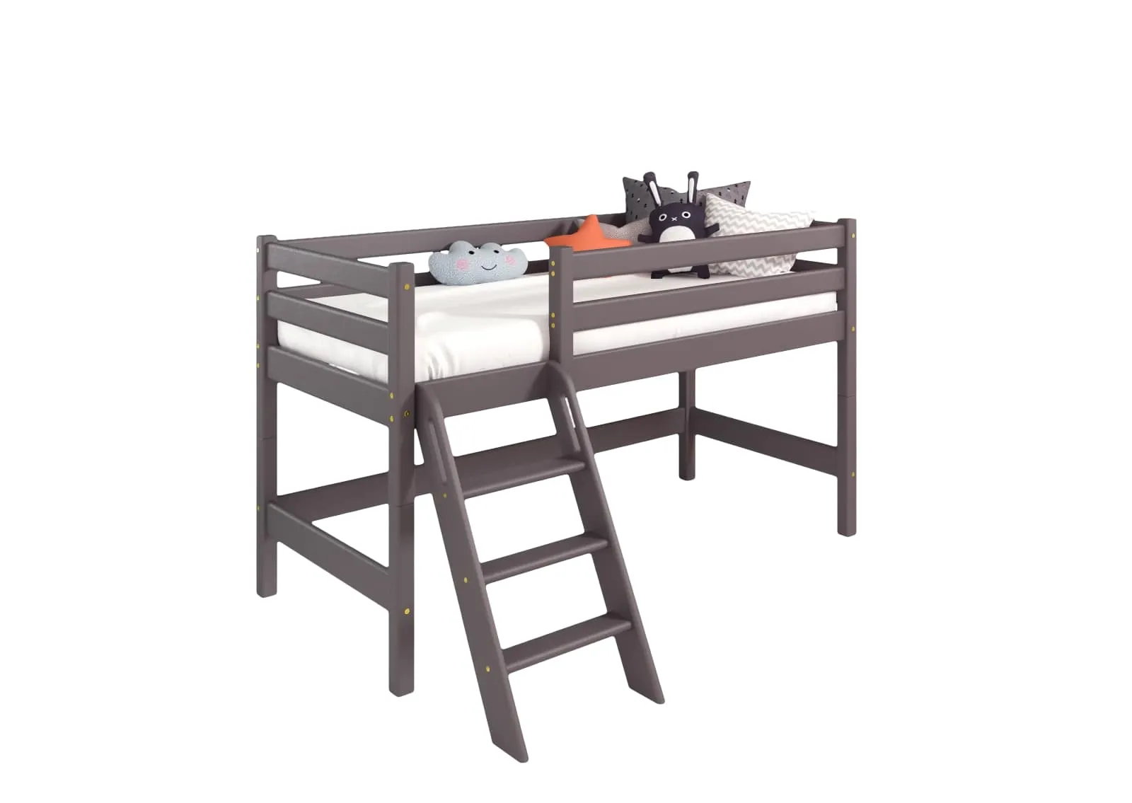 Вариант 12. Низкая кровать "Соня" с наклонной лестницей — один из примеров идеального сочетания практичности, оригинальности и долговечности. Цветовое исполнение подходит сразу для нескольких стилей, а габариты — для комнат разной площади. Мебель для детской создается из безопасных материалов с отличной износостойкостью.