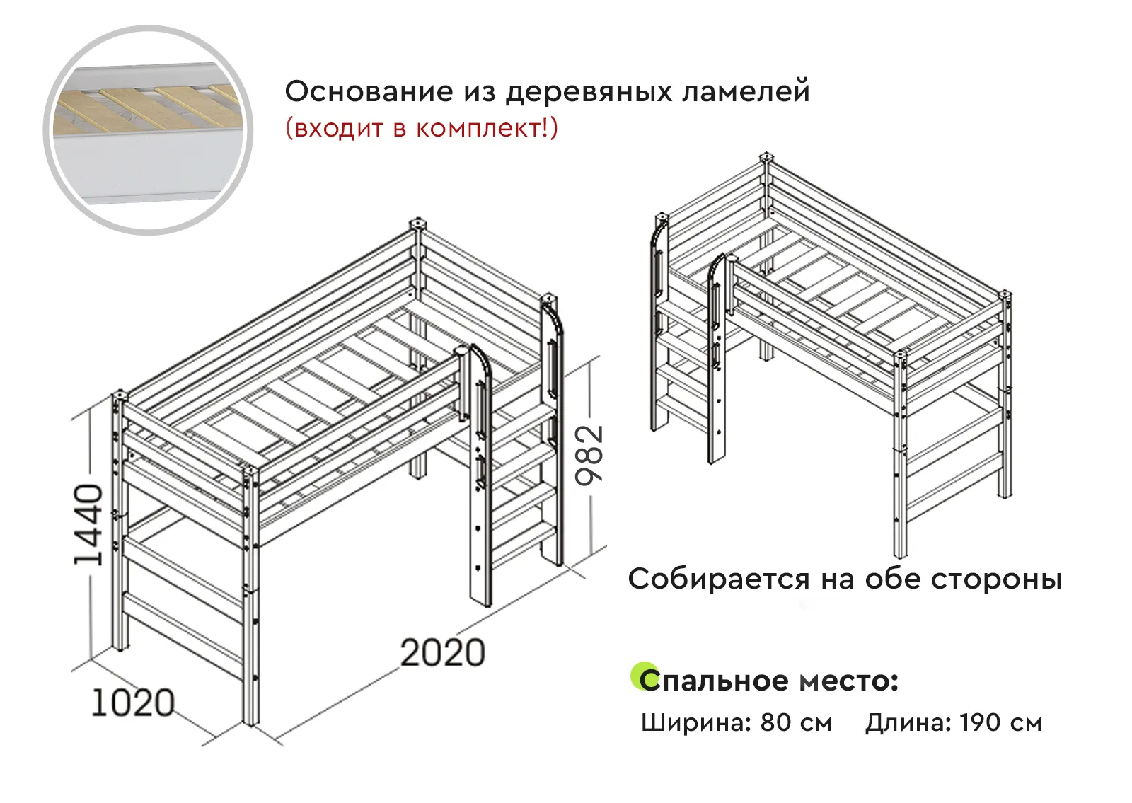 Вариант 5. полувысокая кровать "Соня" с прямой лестницей — один из примеров идеального сочетания практичности, оригинальности и долговечности. Цветовое исполнение подходит сразу для нескольких стилей, а габариты — для комнат разной площади. Мебель для детской создается из безопасных материалов с отличной износостойкостью.