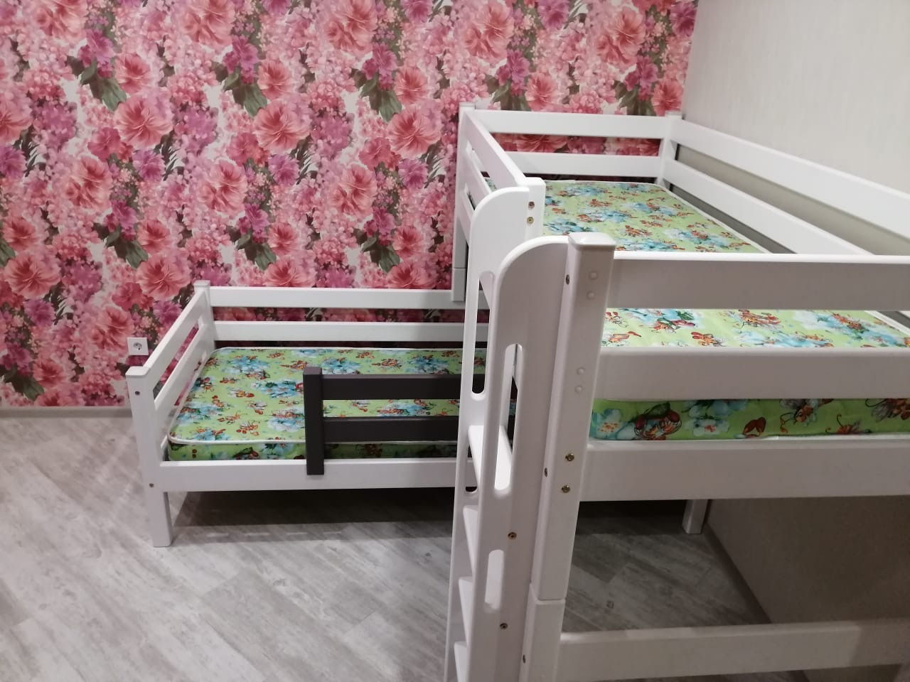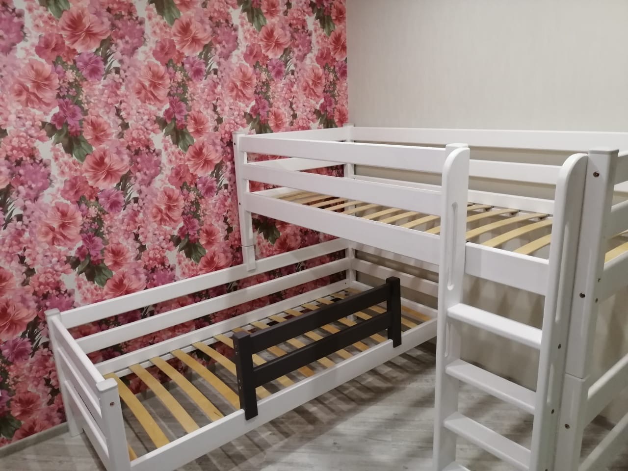 Комплектация детской угловой кроватки Соня NEW-7. В комплект входит каркас 2 кроватей, набор ламелей для основания, защита от падения по периметру, опоры и прямая лестница. Каркас выполнен из сосны, а ламели из березы. Главным преимуществом кроватей Соня NEW является массив сосны. Эта древесина является долговечной, надежной и безопасной для здоровья ребенка. Состав: кровати, ламели, защитные стенки, опоры, прямая лестница.
