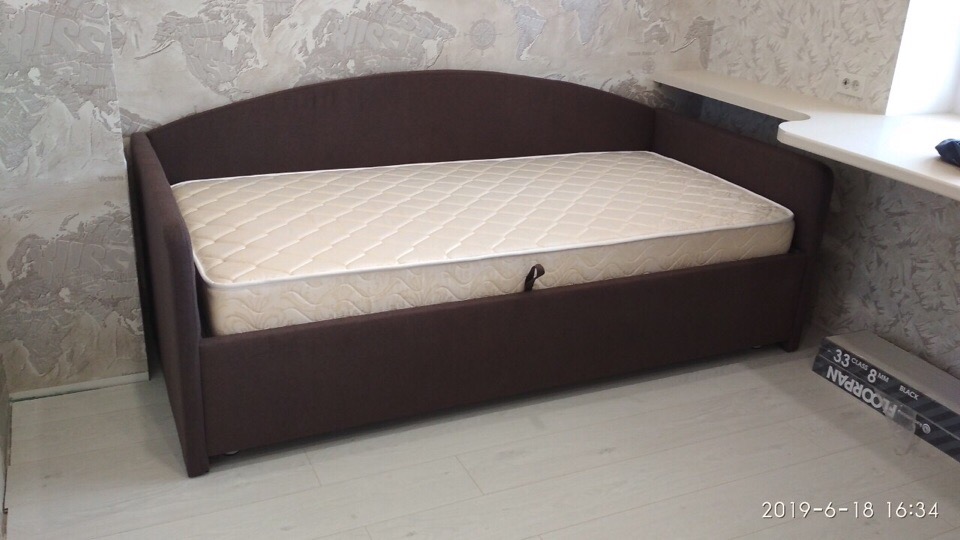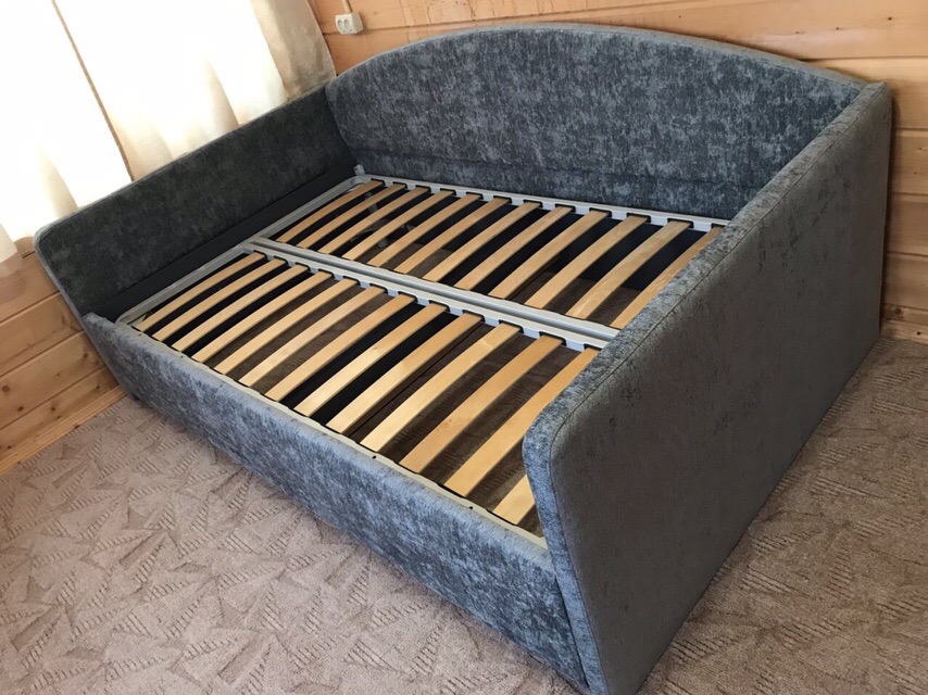 - В комплект кровати входит кроватное основание. Каркас основания выполнен из металла, ламели – из берёзы. При необходимости мы изготовим вам кровать с подъемным механизмом и бельевым ящиком.