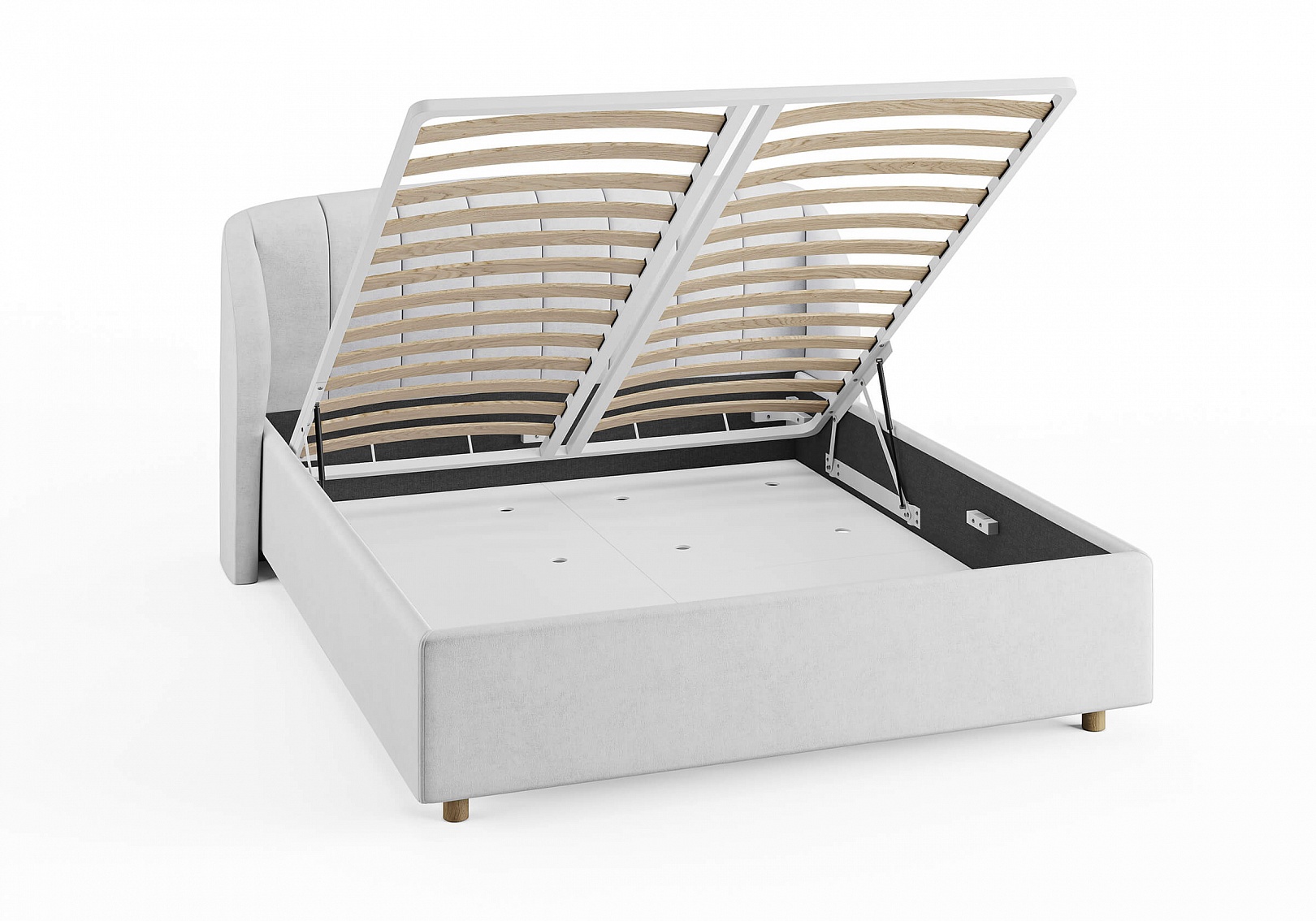 - В комплект кровати входит кроватное основание. Каркас основания выполнен из металла, ламели – из берёзы. При необходимости мы изготовим вам кровать с подъемным механизмом и бельевым ящиком.