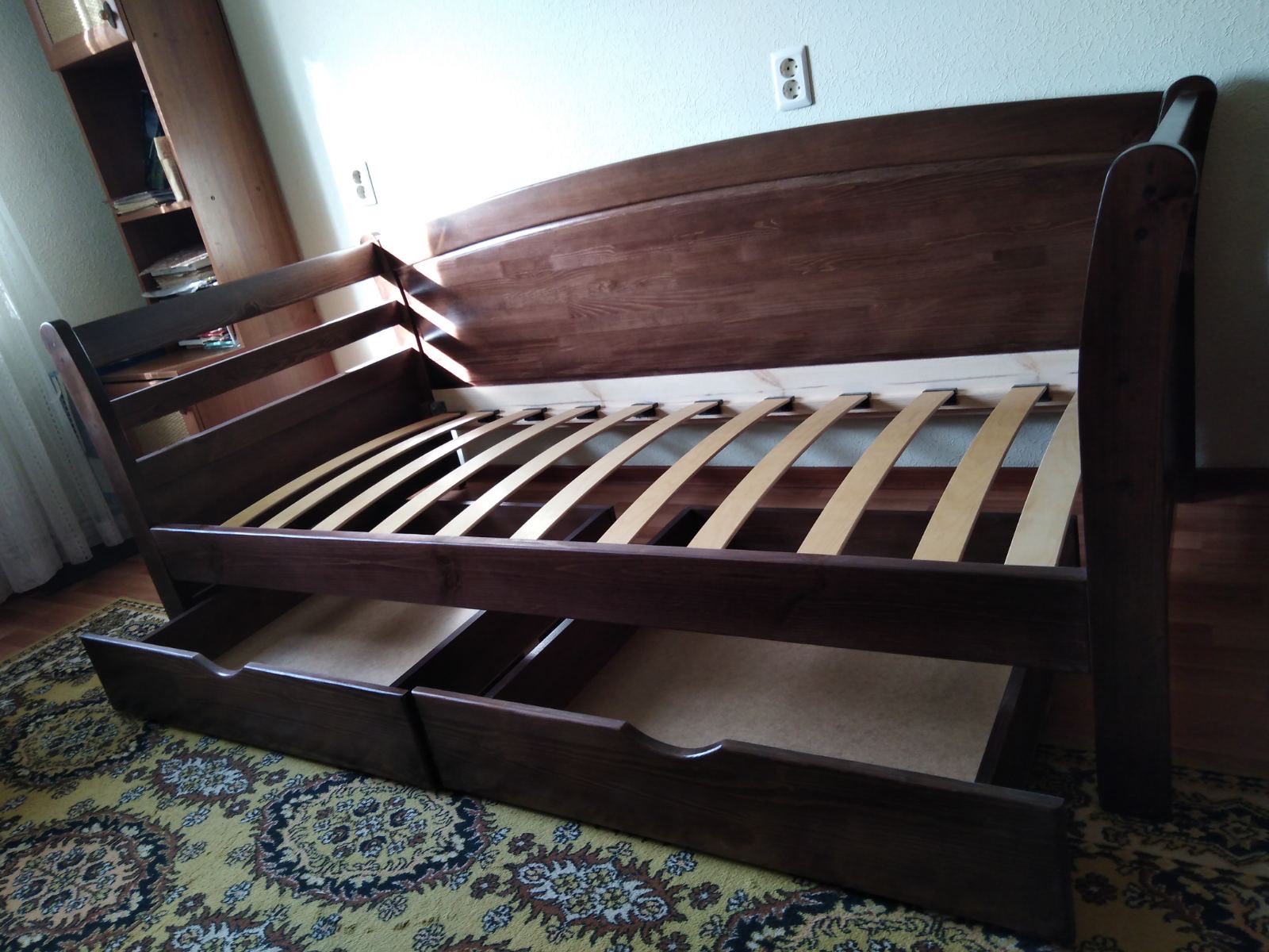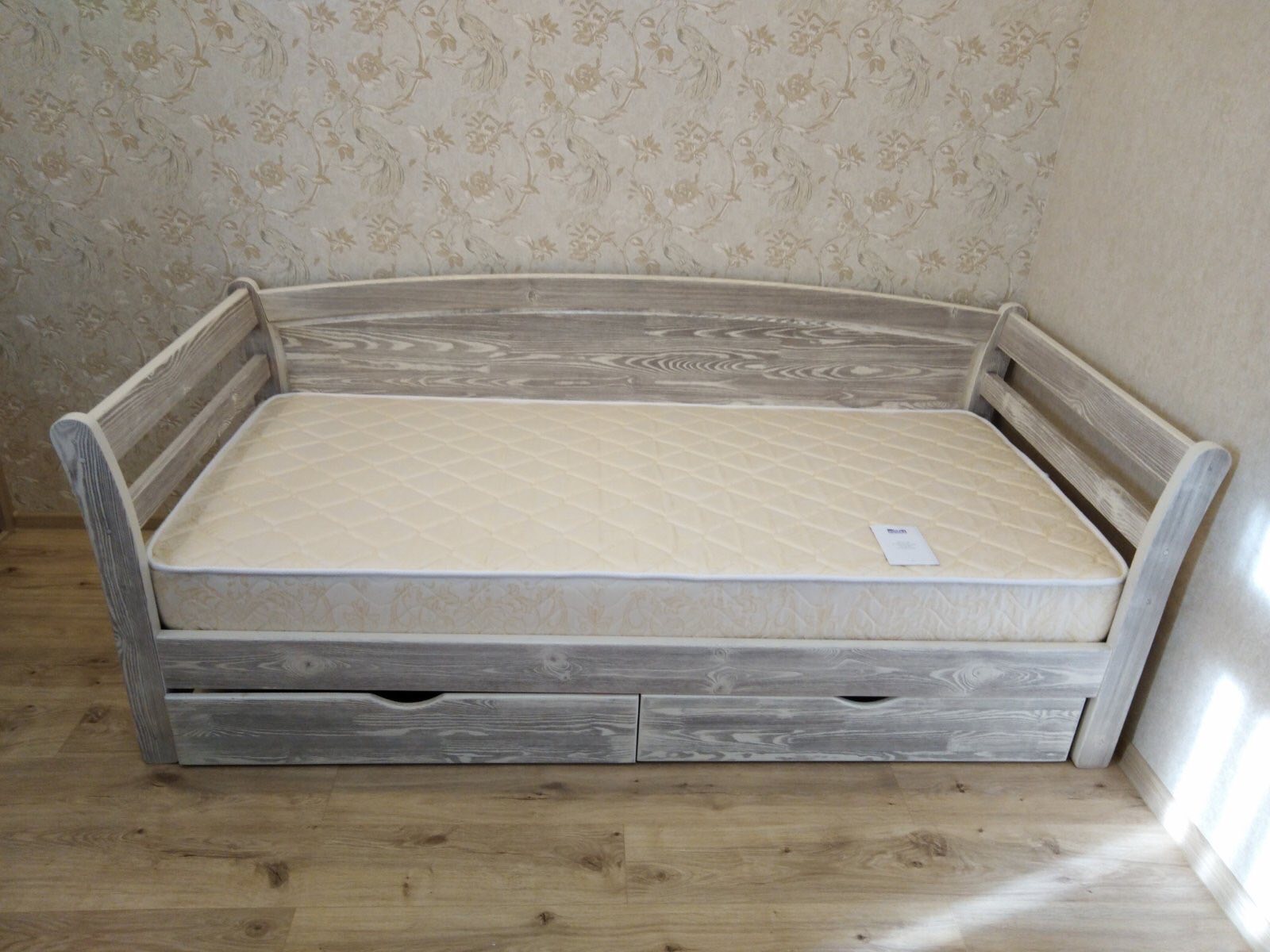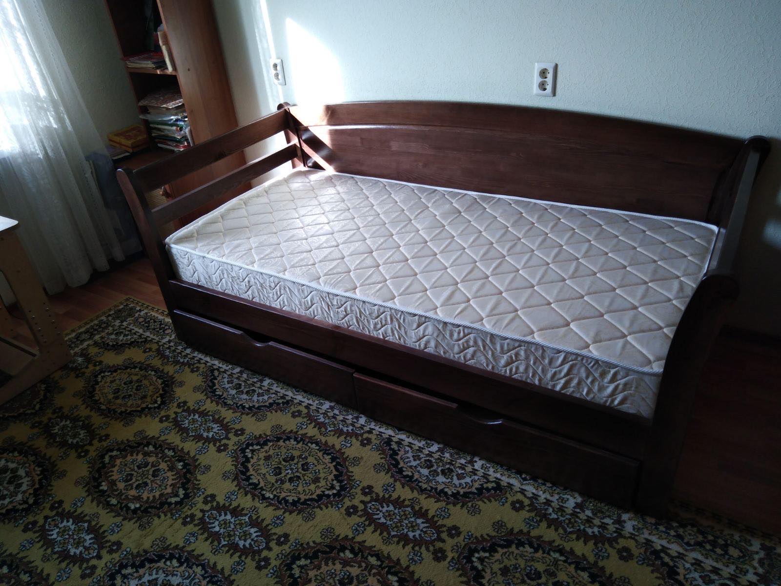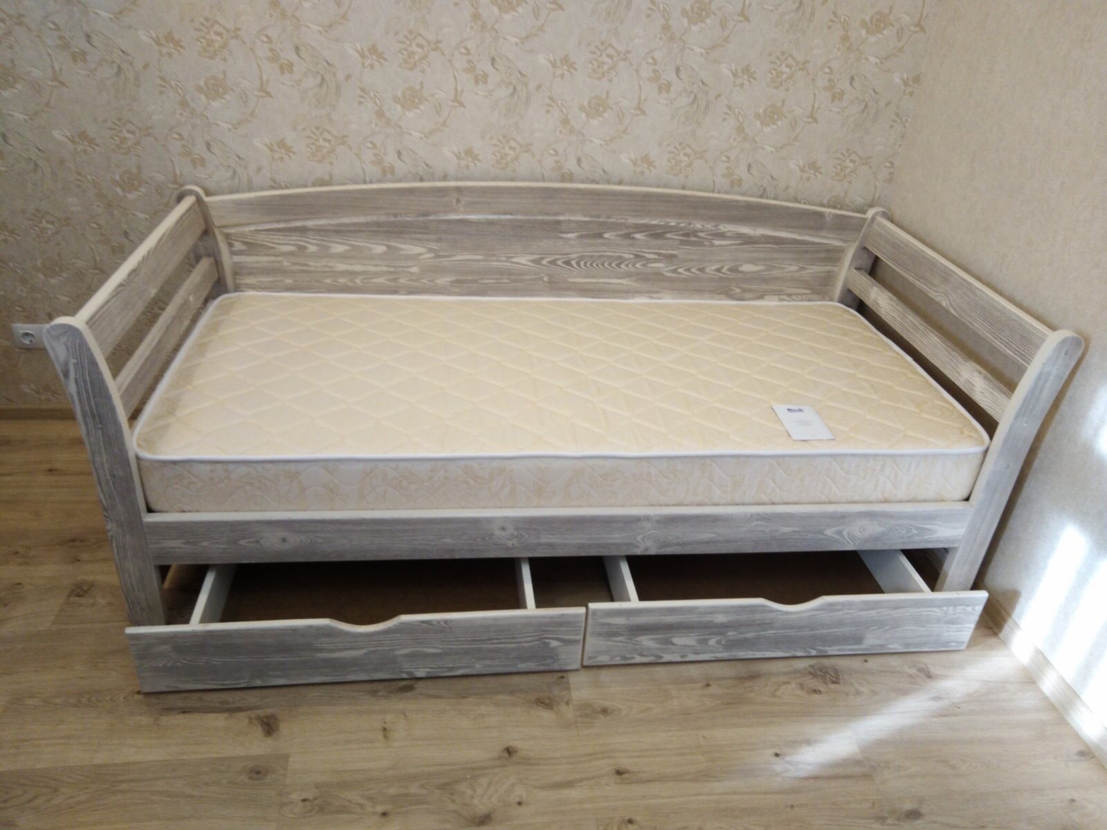 Кровать изготовлена из экологически чистого и надёжного массива карельской сосны — массив обладает успокаивающими и лечебными свойствами для здоровья человека.