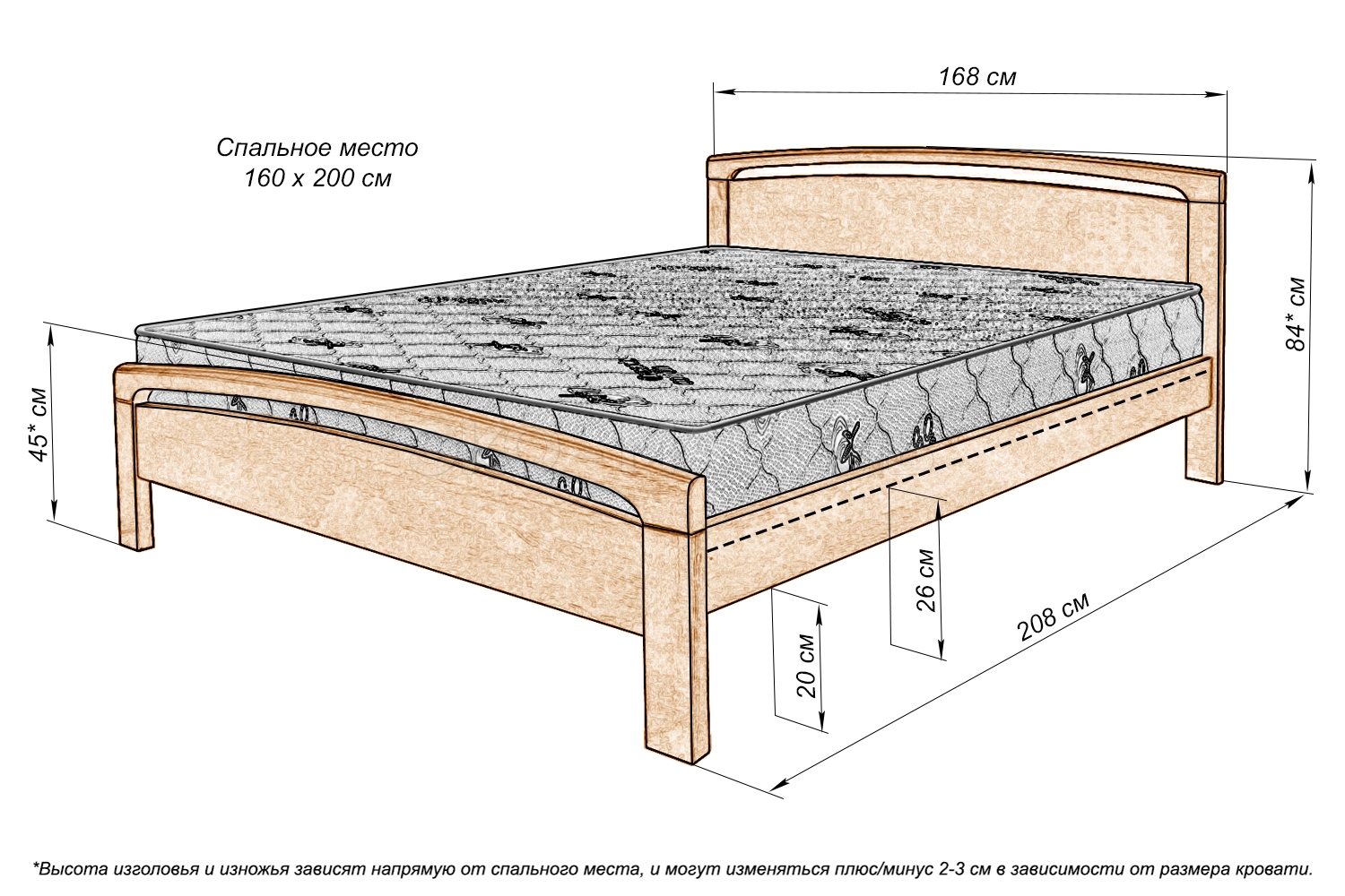 Кровать изготовлена из массива дерева различных пород на ваш выбор. Представлены несколько оттенков на любой вкус.